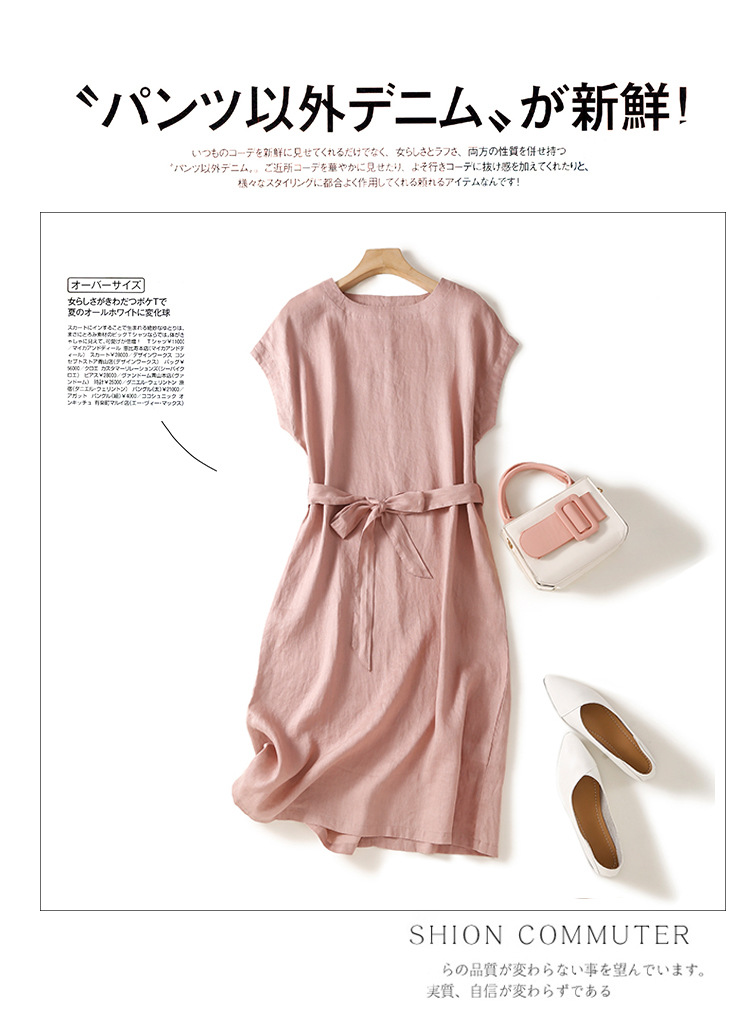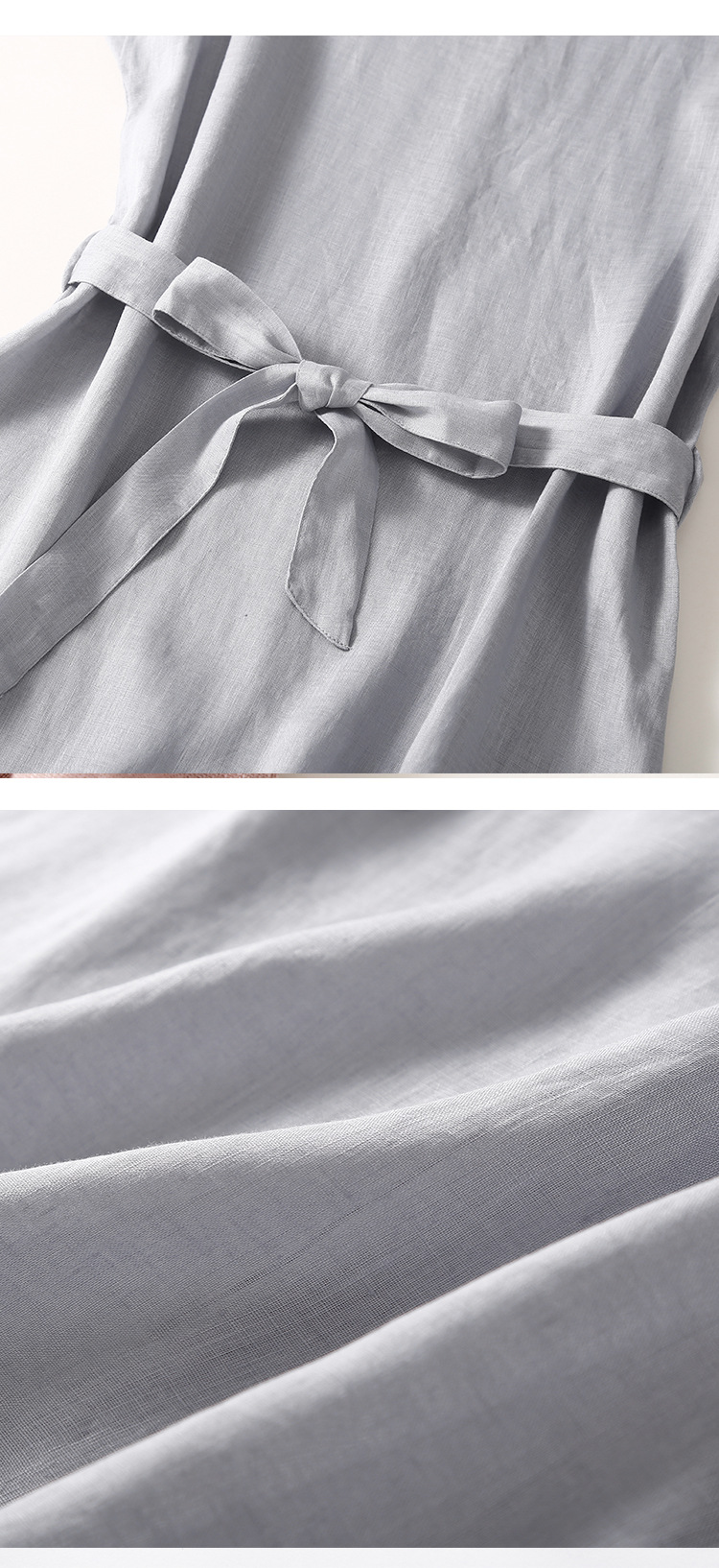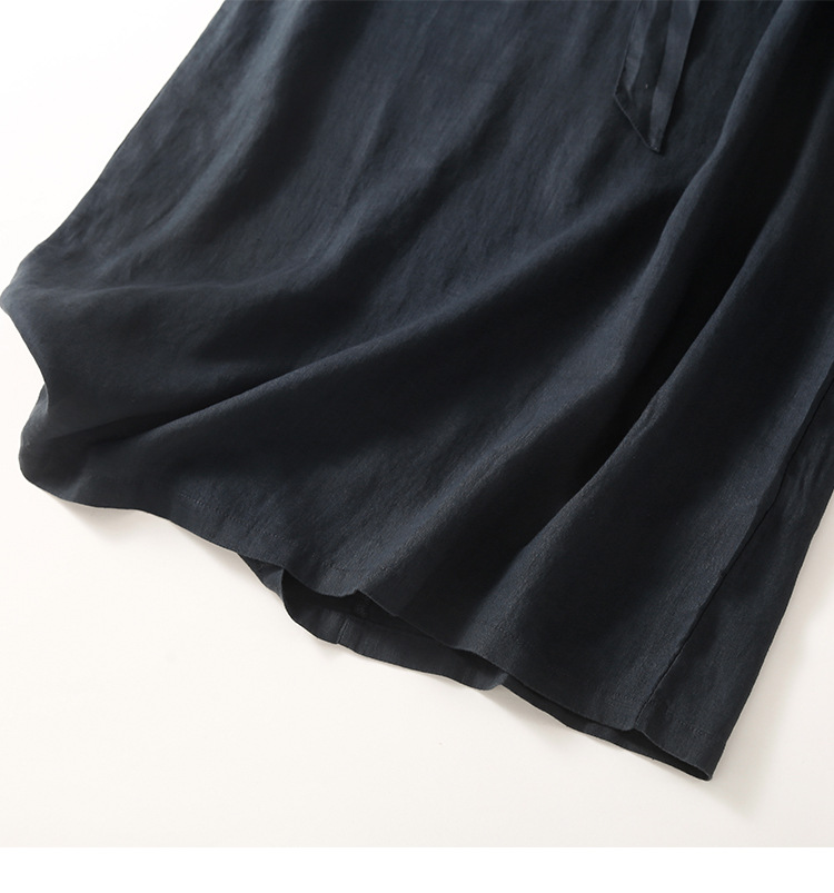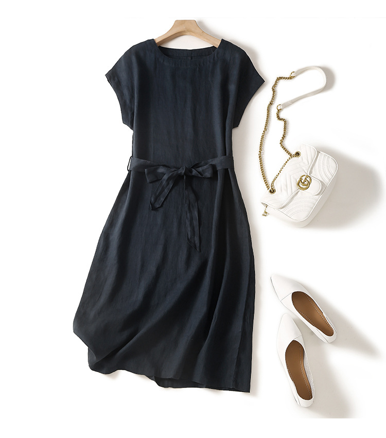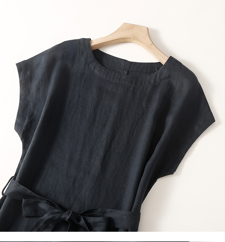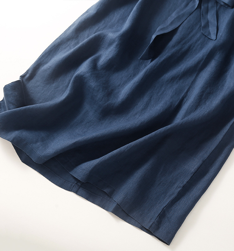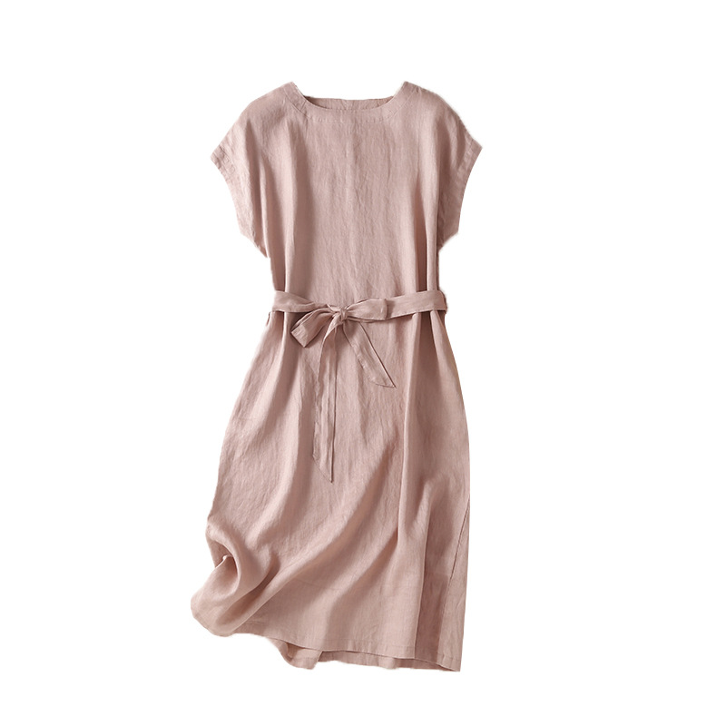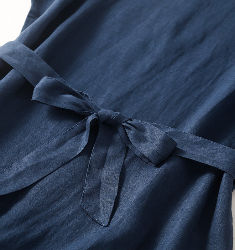 Настоящее фото нового летнего стиля 2022 года, литературное ретро-платье из хлопка и льна, простая юбка средней длины с короткими рукавами на шнуровке