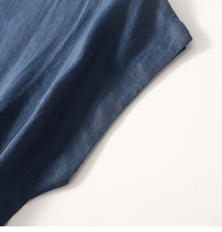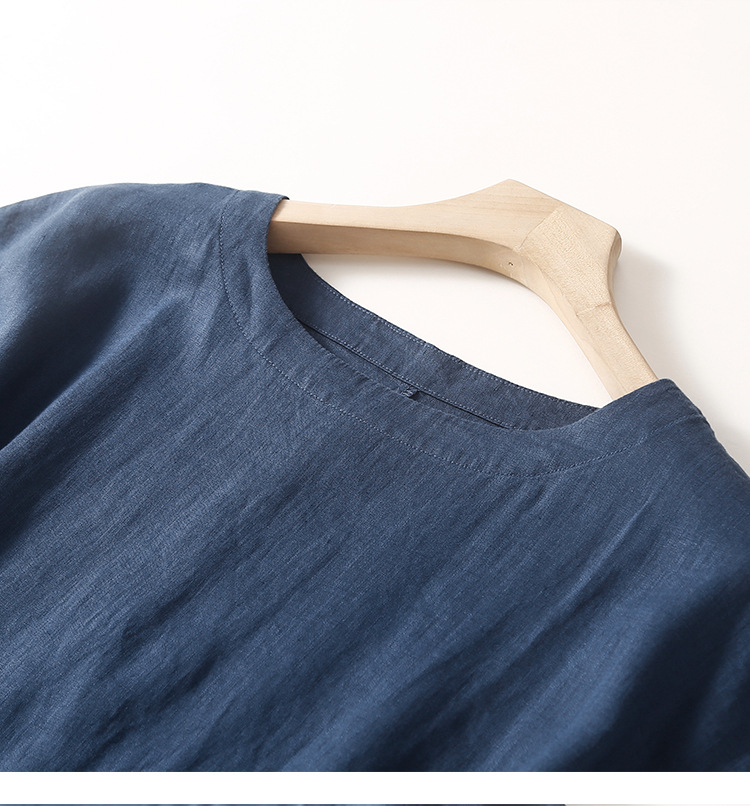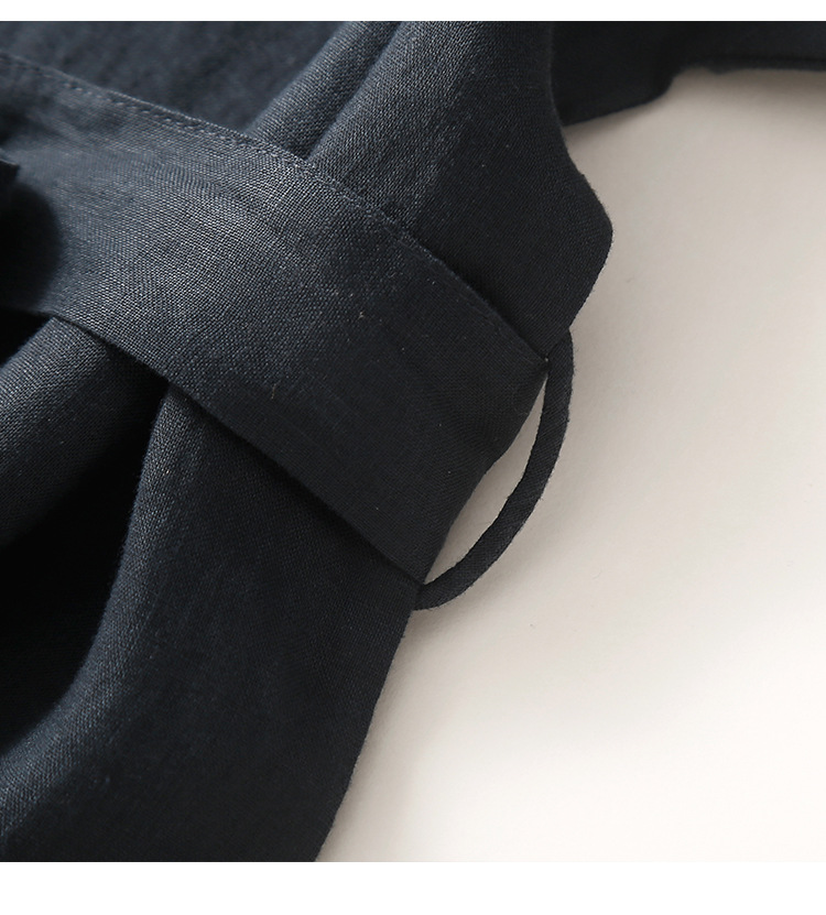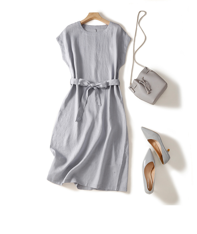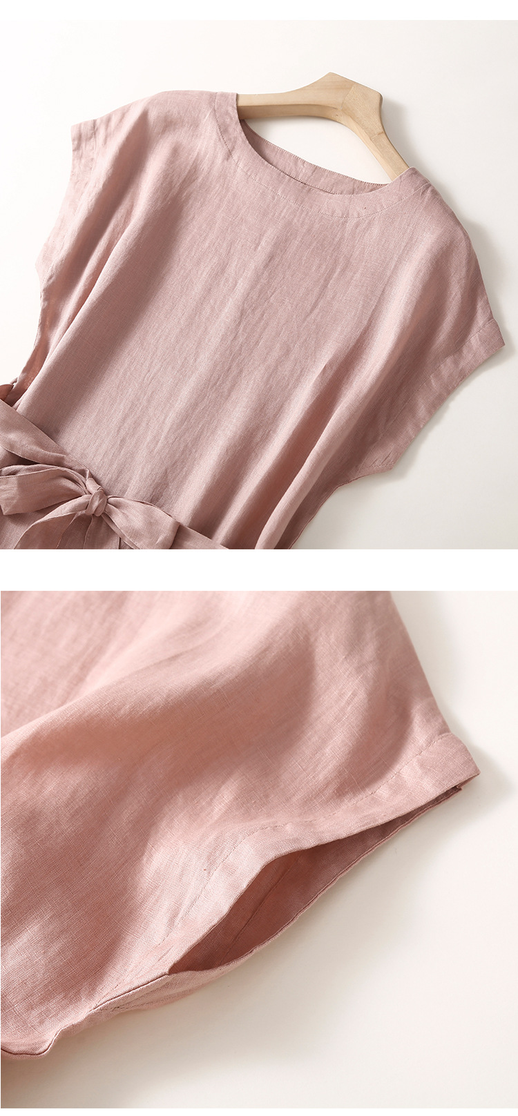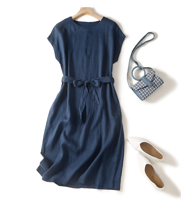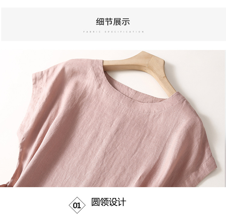 Настоящее фото нового летнего стиля 2022 года, литературное ретро-платье из хлопка и льна, простая юбка средней длины с короткими рукавами на шнуровке