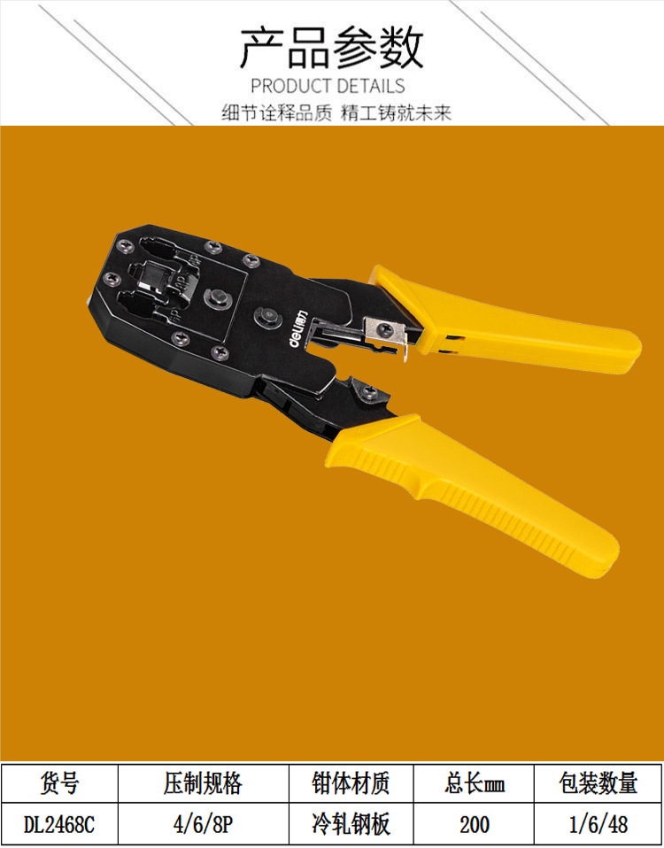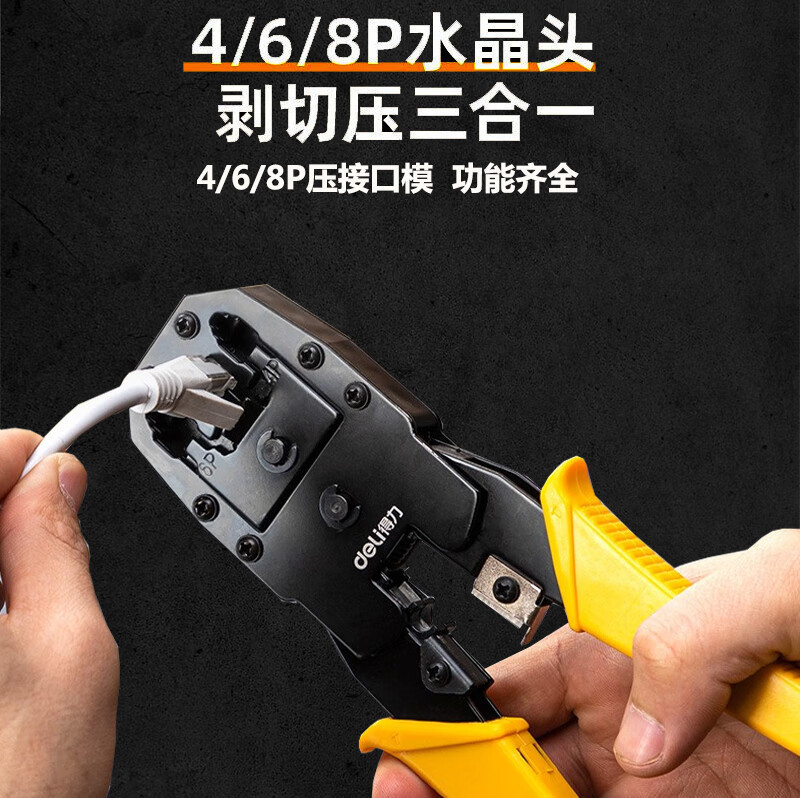 Сетевые клещи Deli DL2468C 4/6/8P, обжимные клещи с кристаллической головкой для сетевого телефона, чтобы сэкономить усилия