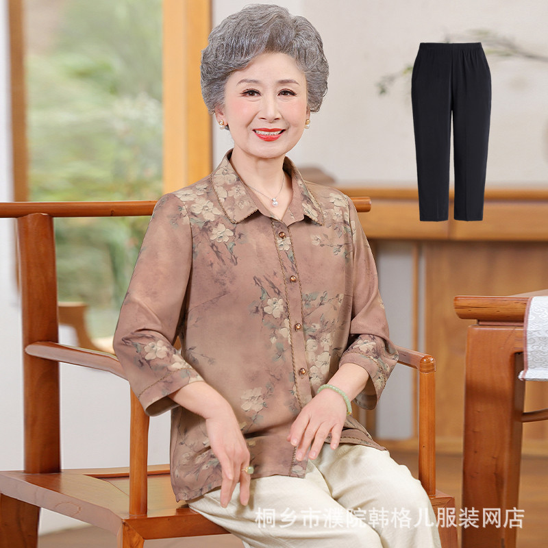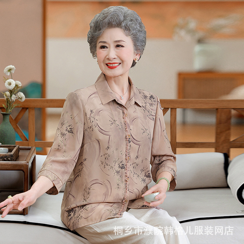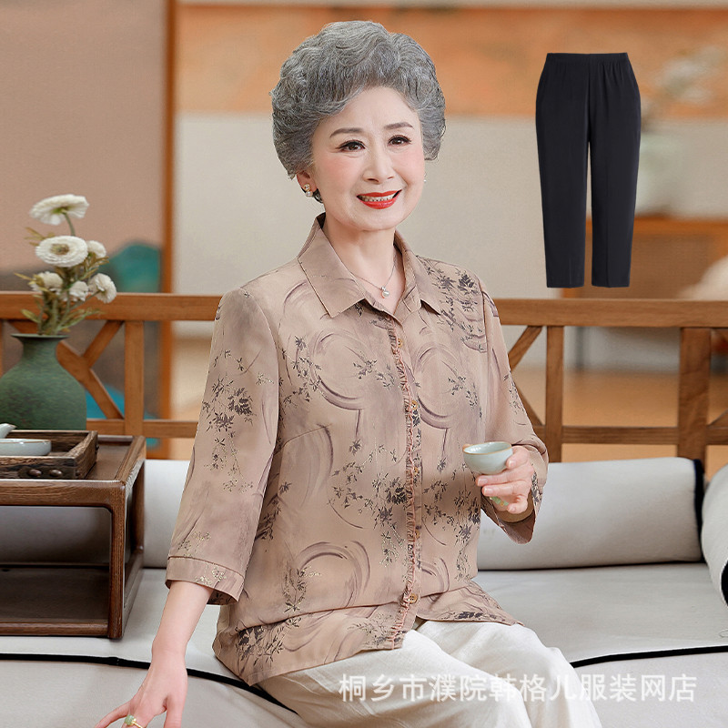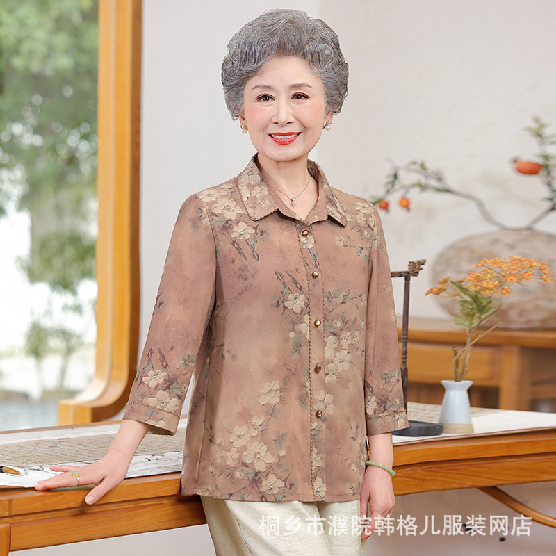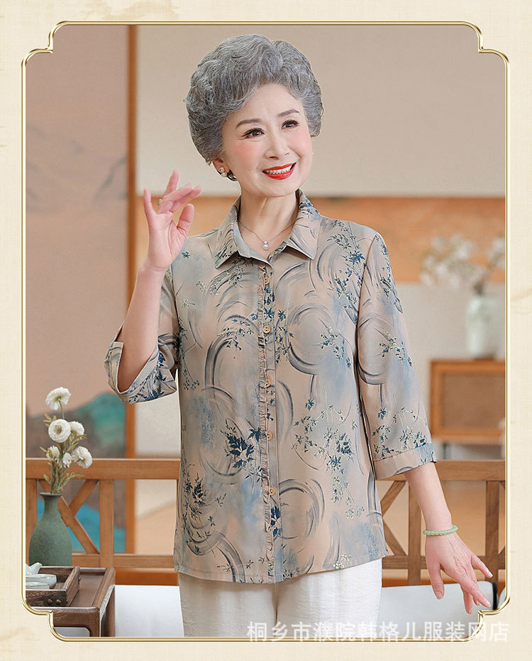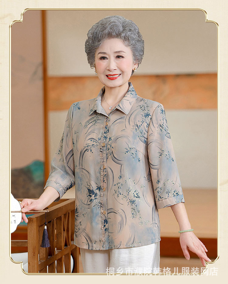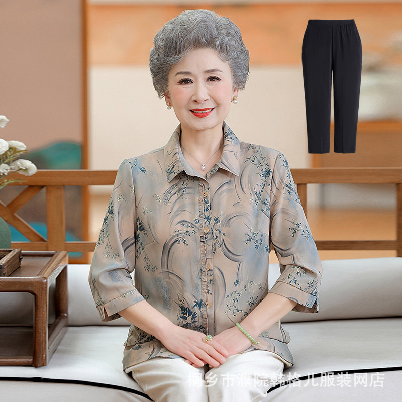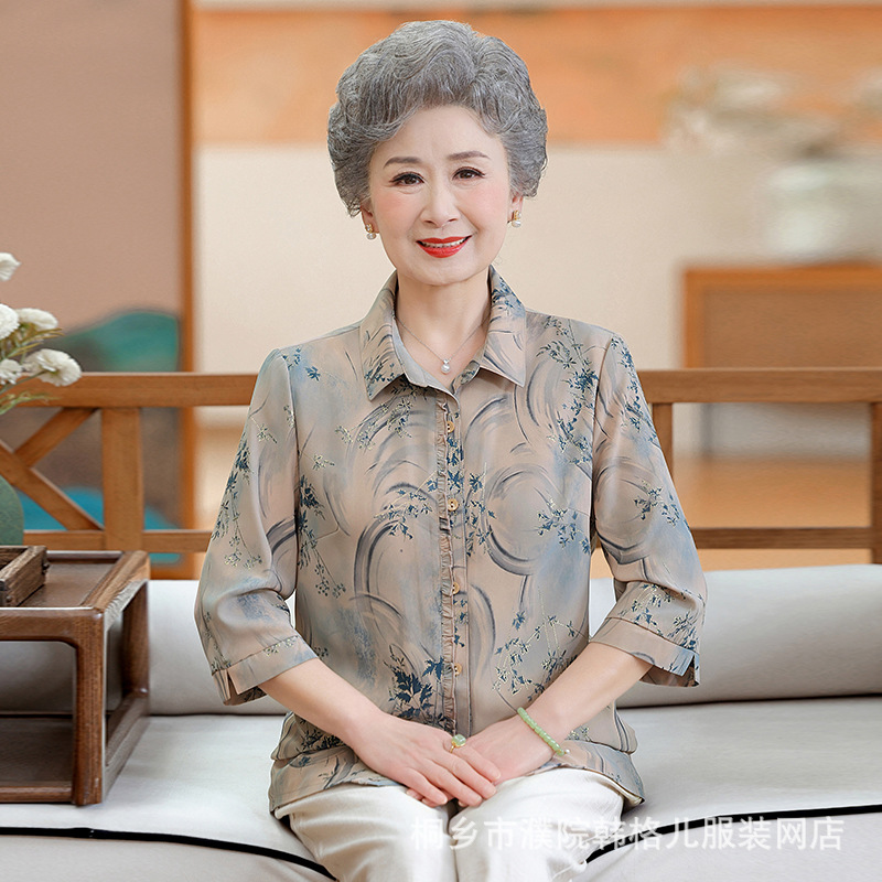 Бабушка летняя рубашка Иностранный модный набор пожилая женщина весенний топ мама рубашка пожилая леди одежда