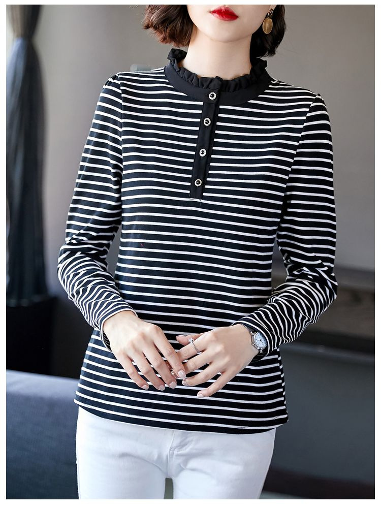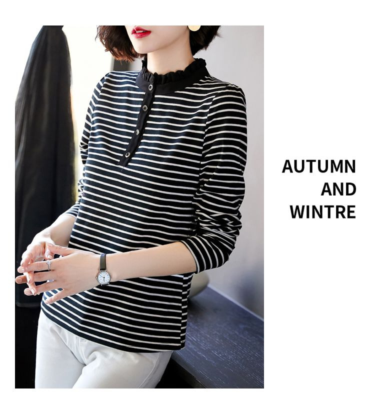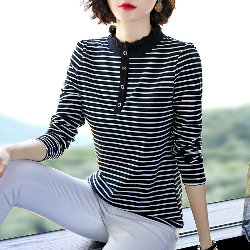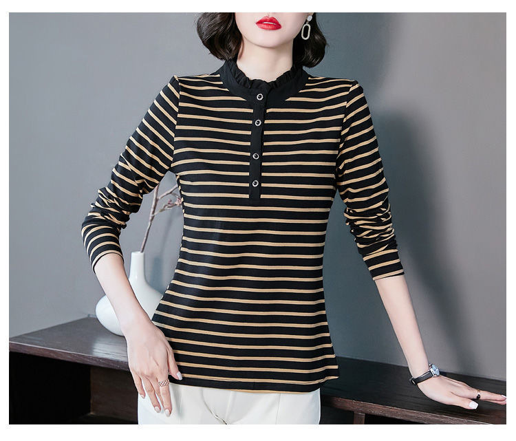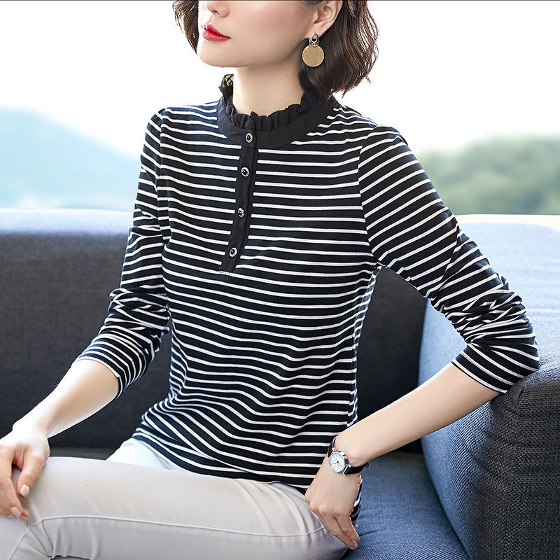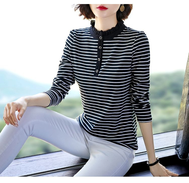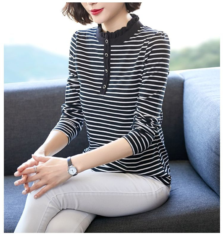 Весенне-осенняя новая классическая женская футболка в полоску с длинными рукавами, верхняя одежда, женская рубашка большого размера для похудения