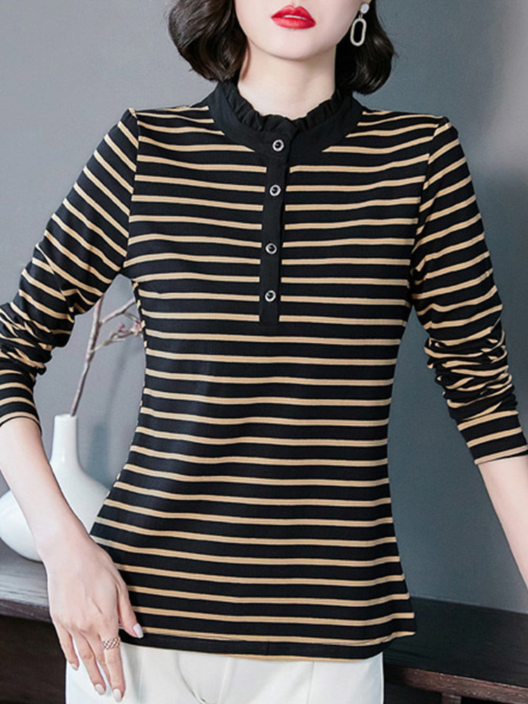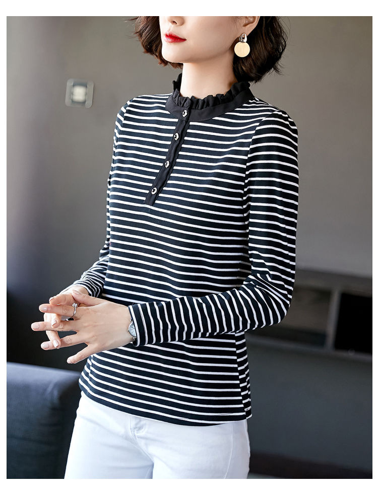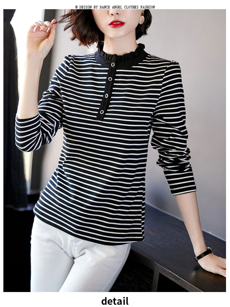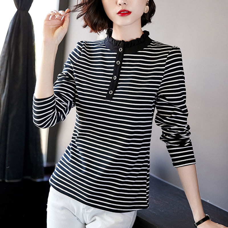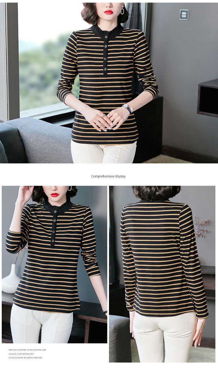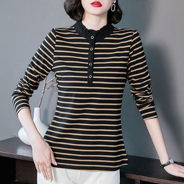 Весенне-осенняя новая классическая женская футболка в полоску с длинными рукавами, верхняя одежда, женская рубашка большого размера для похудения