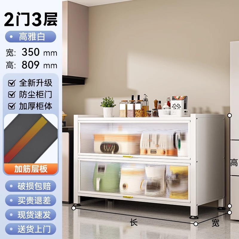 Бытовой стальной кухонный шкаф для хранения, напольный многослойный стеллаж для хранения, шкаф для микроволновой печи с дверцей, пыленепроницаемый шкаф для хранения