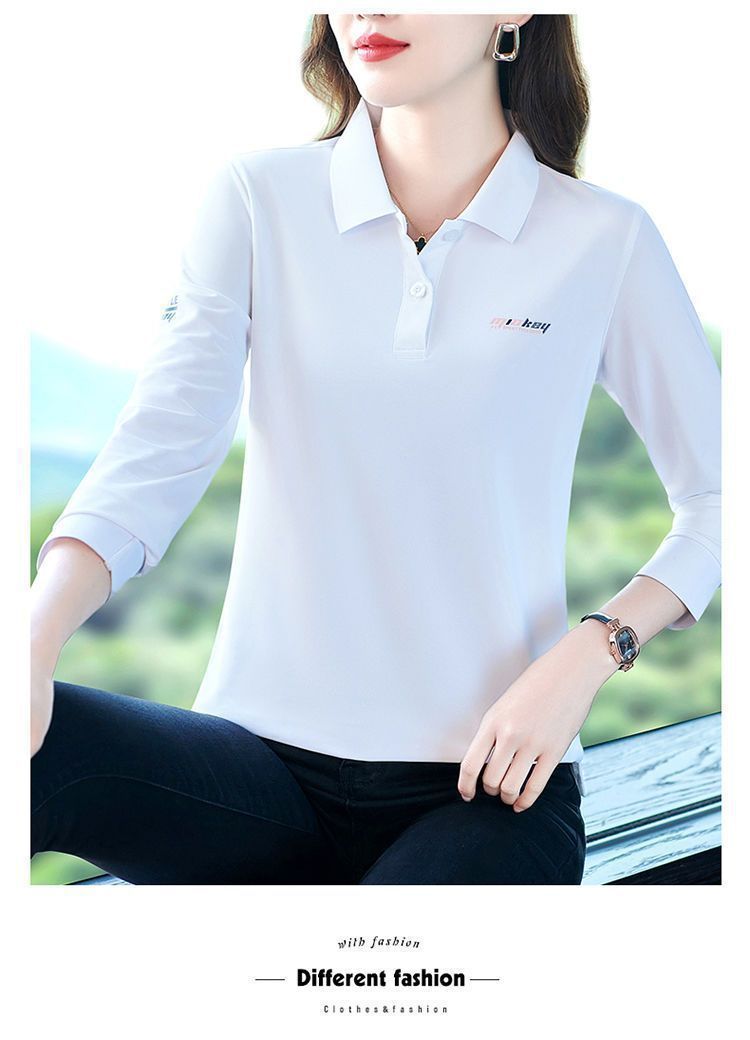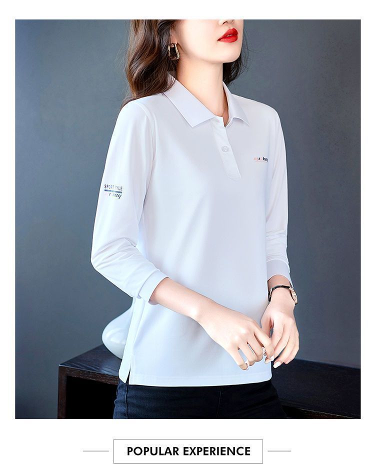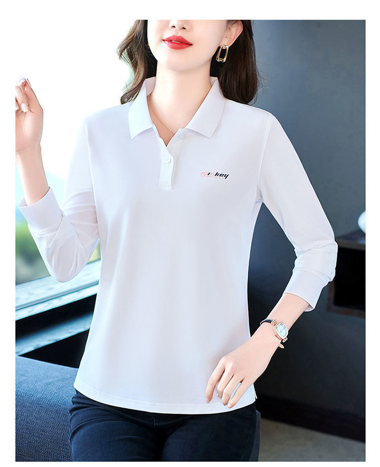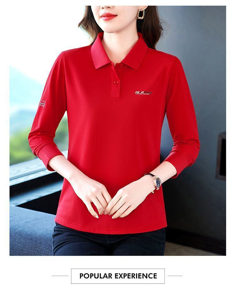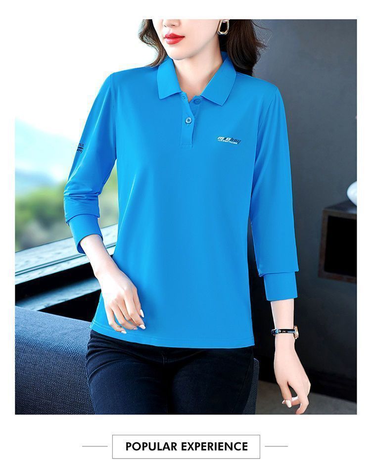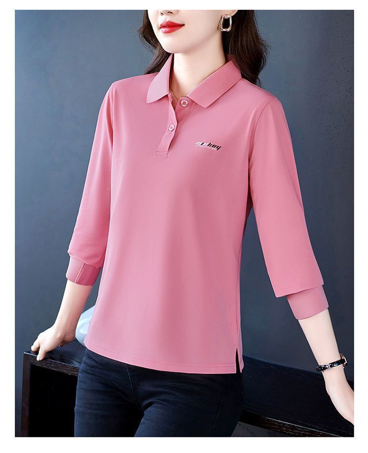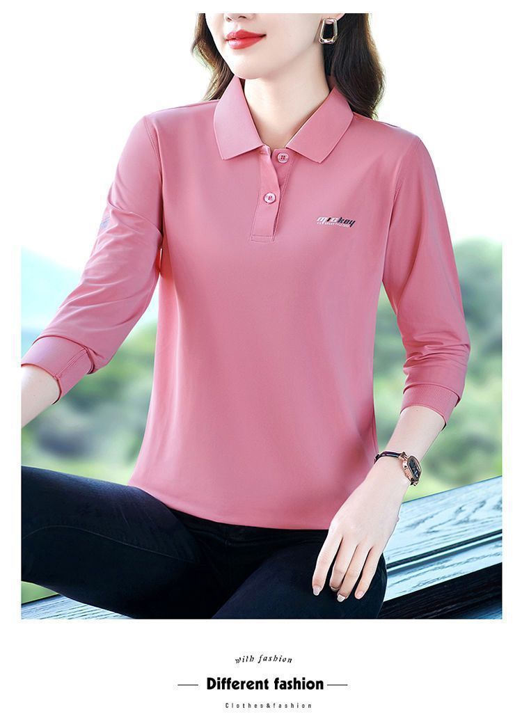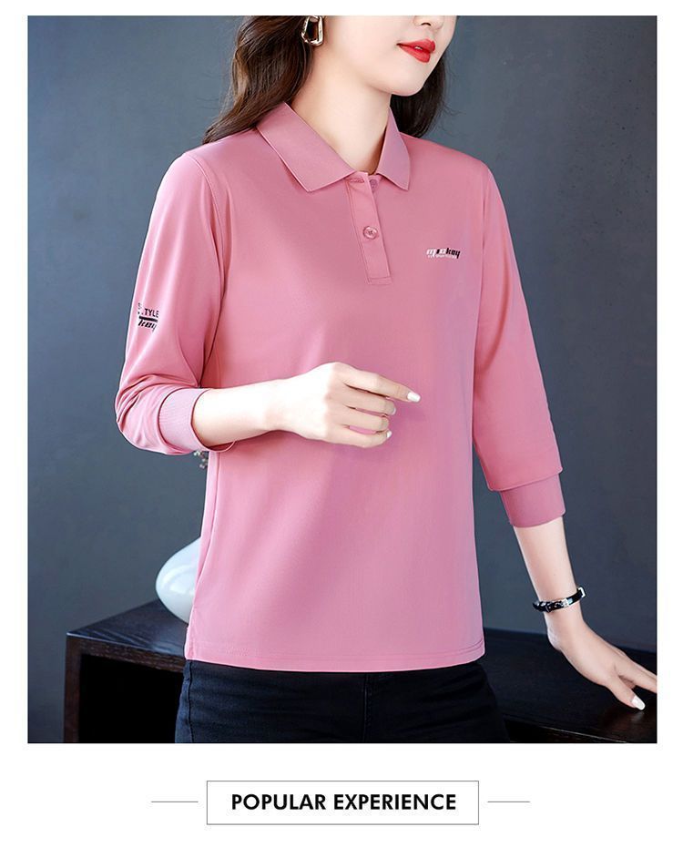 Новая трансграничная футболка с длинными рукавами, женская модная осенняя футболка для мам, женская футболка с лацканами среднего возраста, рубашка-поло