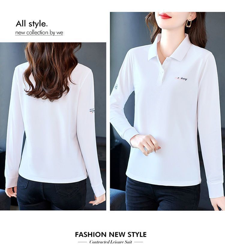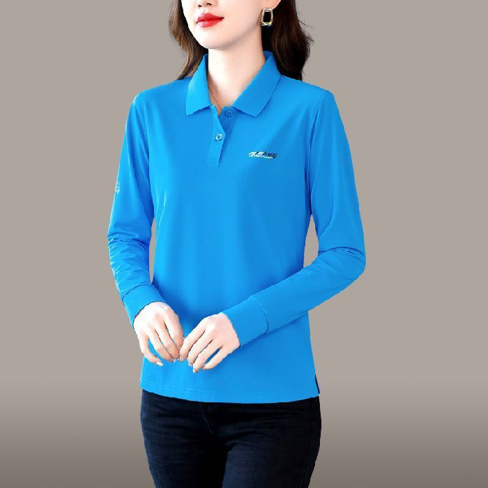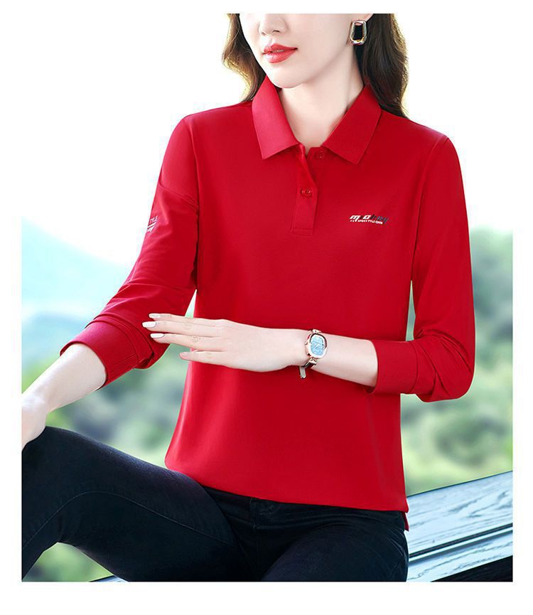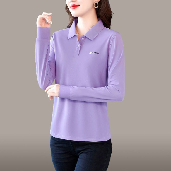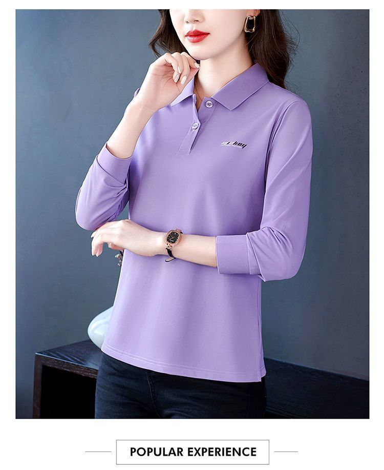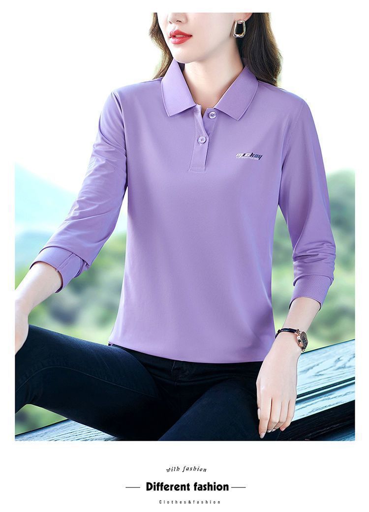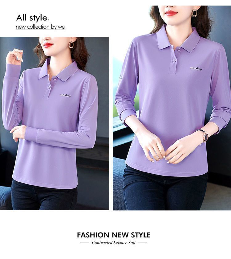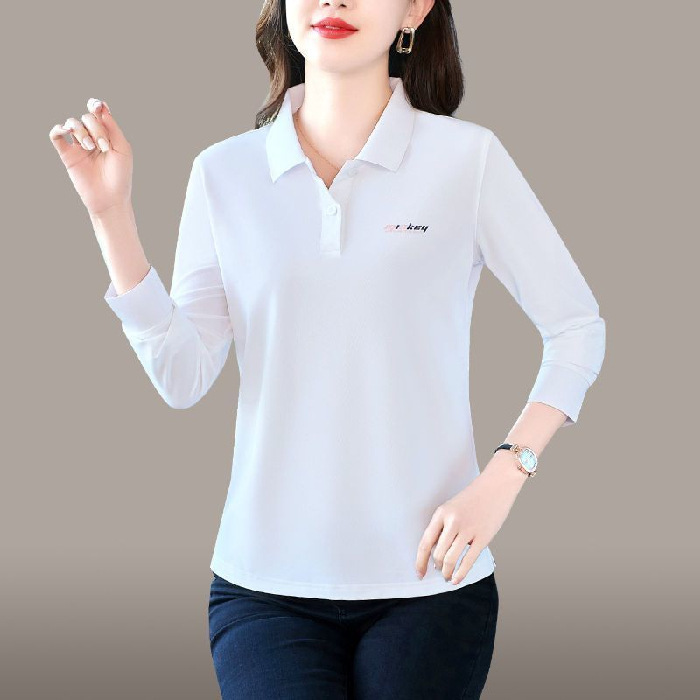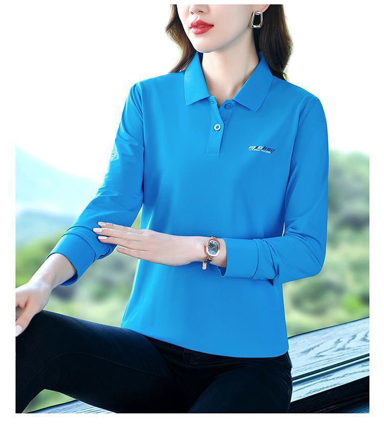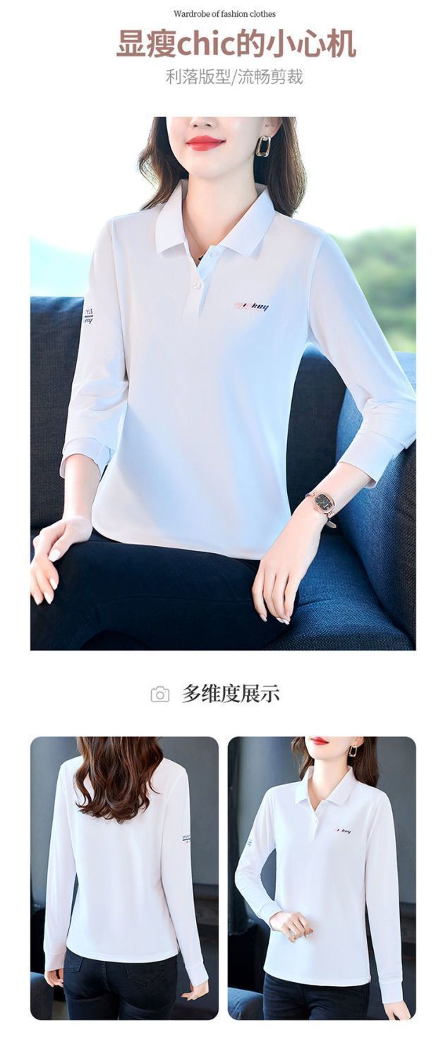 Новая трансграничная футболка с длинными рукавами, женская модная осенняя футболка для мам, женская футболка с лацканами среднего возраста, рубашка-поло