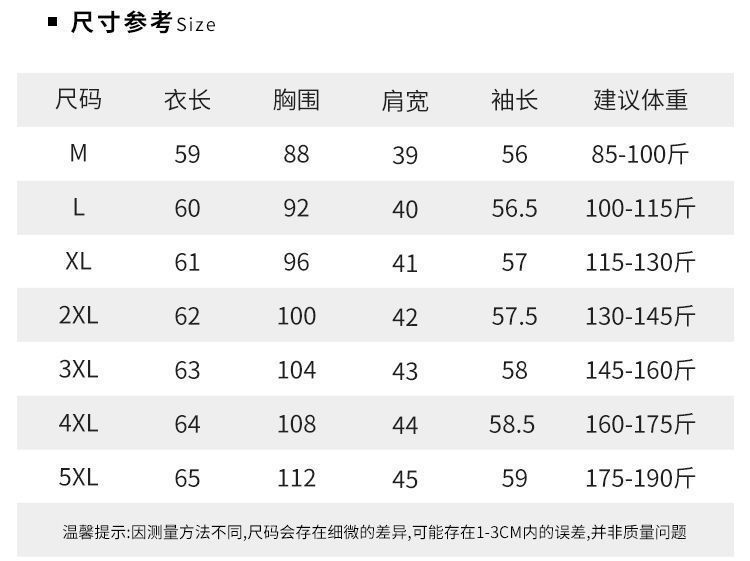 М【Рекомендация 40-47.5kg】; L【Рекомендация 47.5-55kg】; XL [рекомендуется 55-62.5kg ]; 2XL [рекомендуется 62.5-70kg ]; 3XL [рекомендуется 70-75kg ]; 4XL [рекомендуется 75-82.5kg ]; 5XL [рекомендуется 82.5-90kg ]