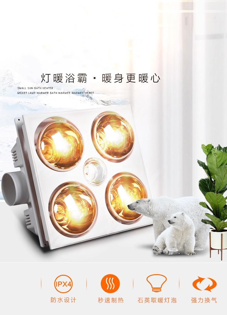 Обогреватель для туалета и ванной комнаты, освещение, изоляция, вытяжной вентилятор, 36X 1.8kg лампы, средний кронштейн, водонепроницаемая лампа плюс встроенный электрический обогрев воздуха