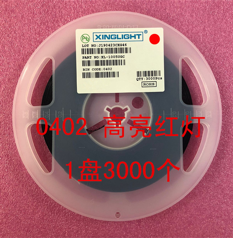 0402 红色 波长:620-630nm 亮度:15-75mcd 电压:1.6-2.2V 包装:3000PCS/盘/卷(编带包装)
