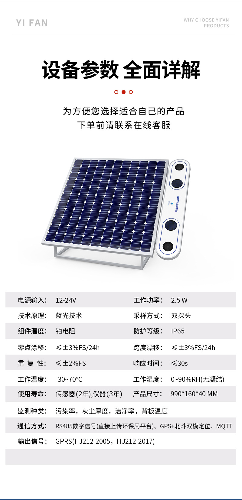 Система мониторинга пыли на солнечной электростанции Yifan, мониторинг уровня загрязнения синим светом, мониторинг солнечной электростанции