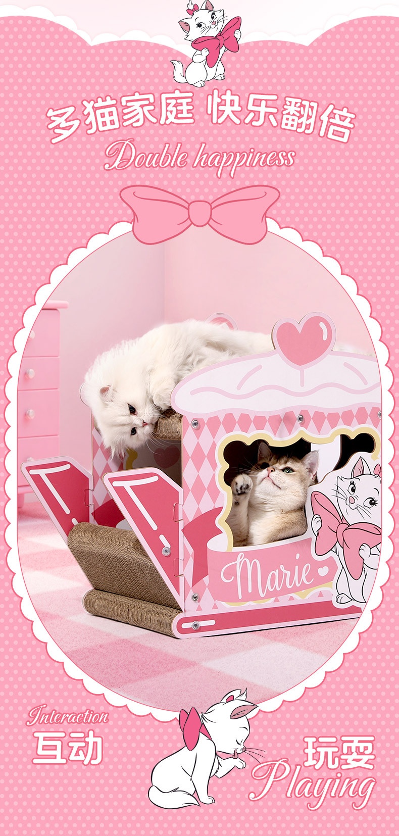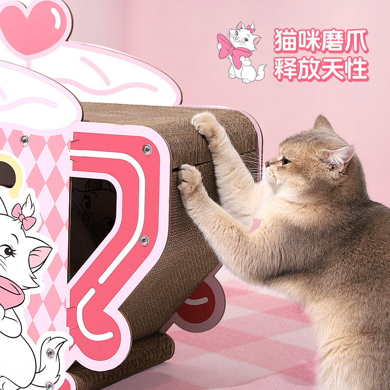 Двухслойная лежанка-когтеточка для кошек из гофрированного картона, нелиняющая, в виде виллы, с функцией когтетакта и гнезда для отдыха