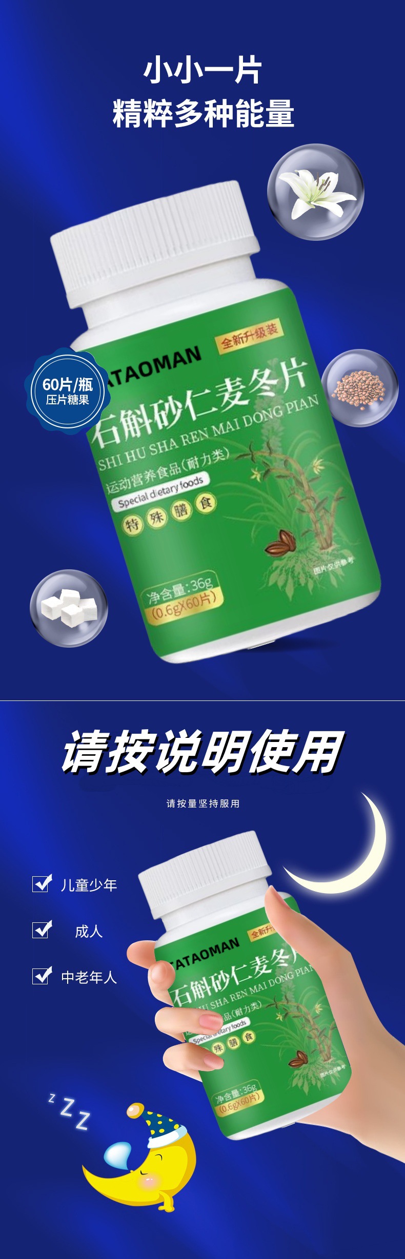 Прямые поставки с завода: популярный продукт Dendrobium, Amomum, Ophiopogon таблетки 0,6 г * 60 таблеток доступны для оптовой продажи и переработки.