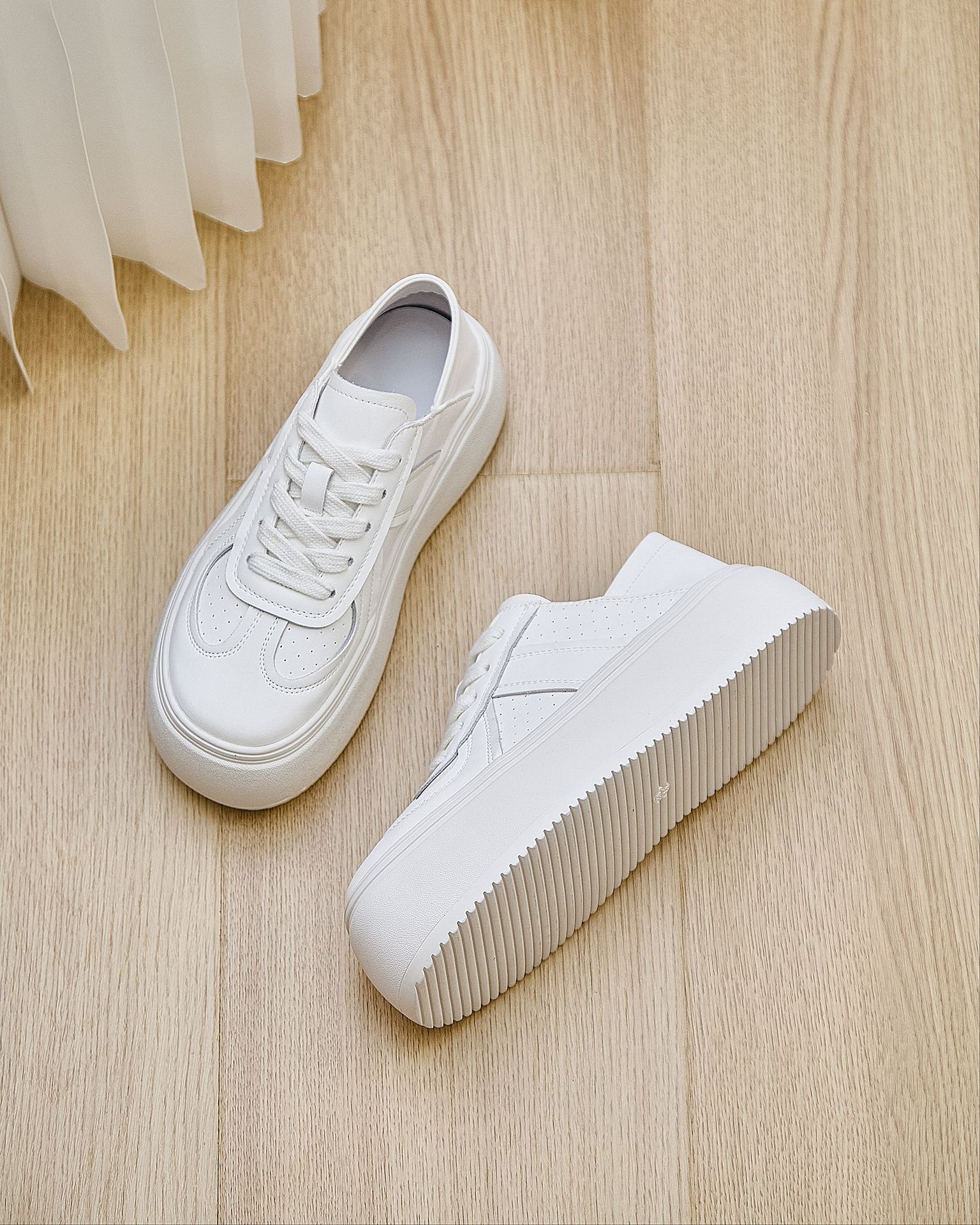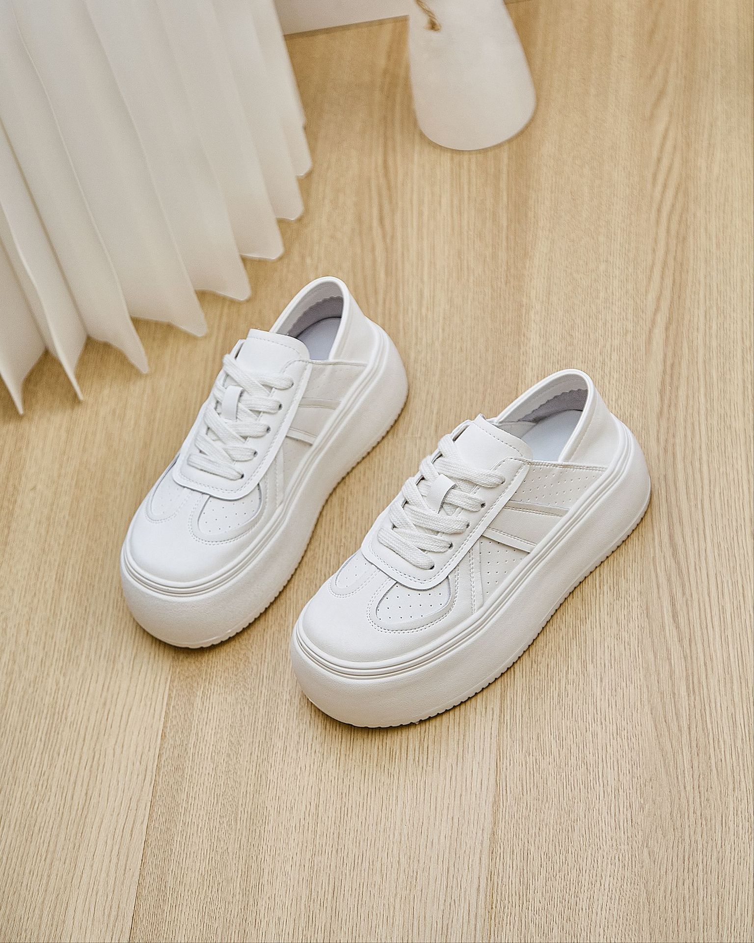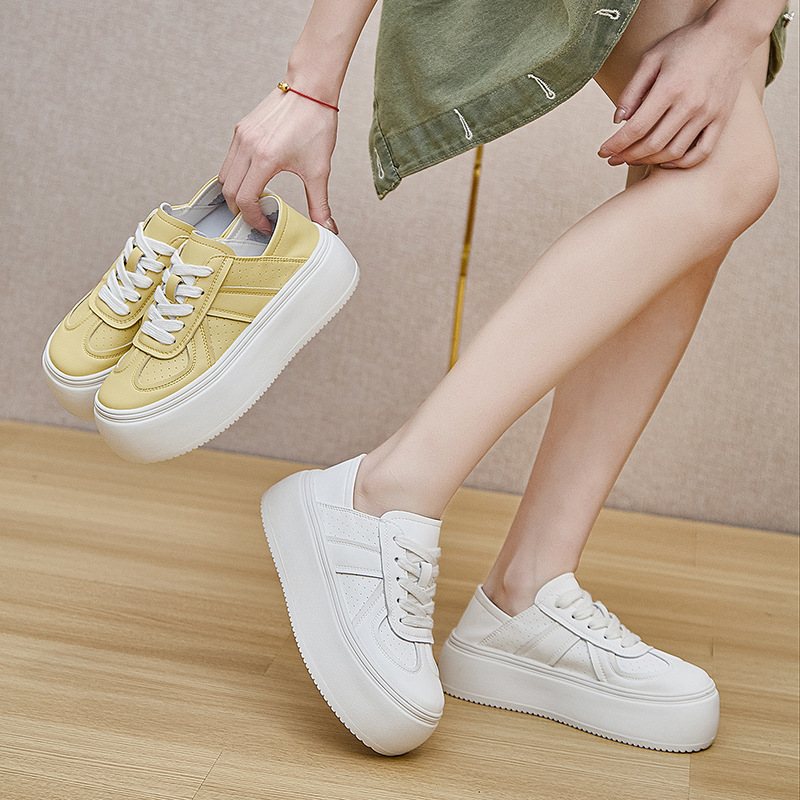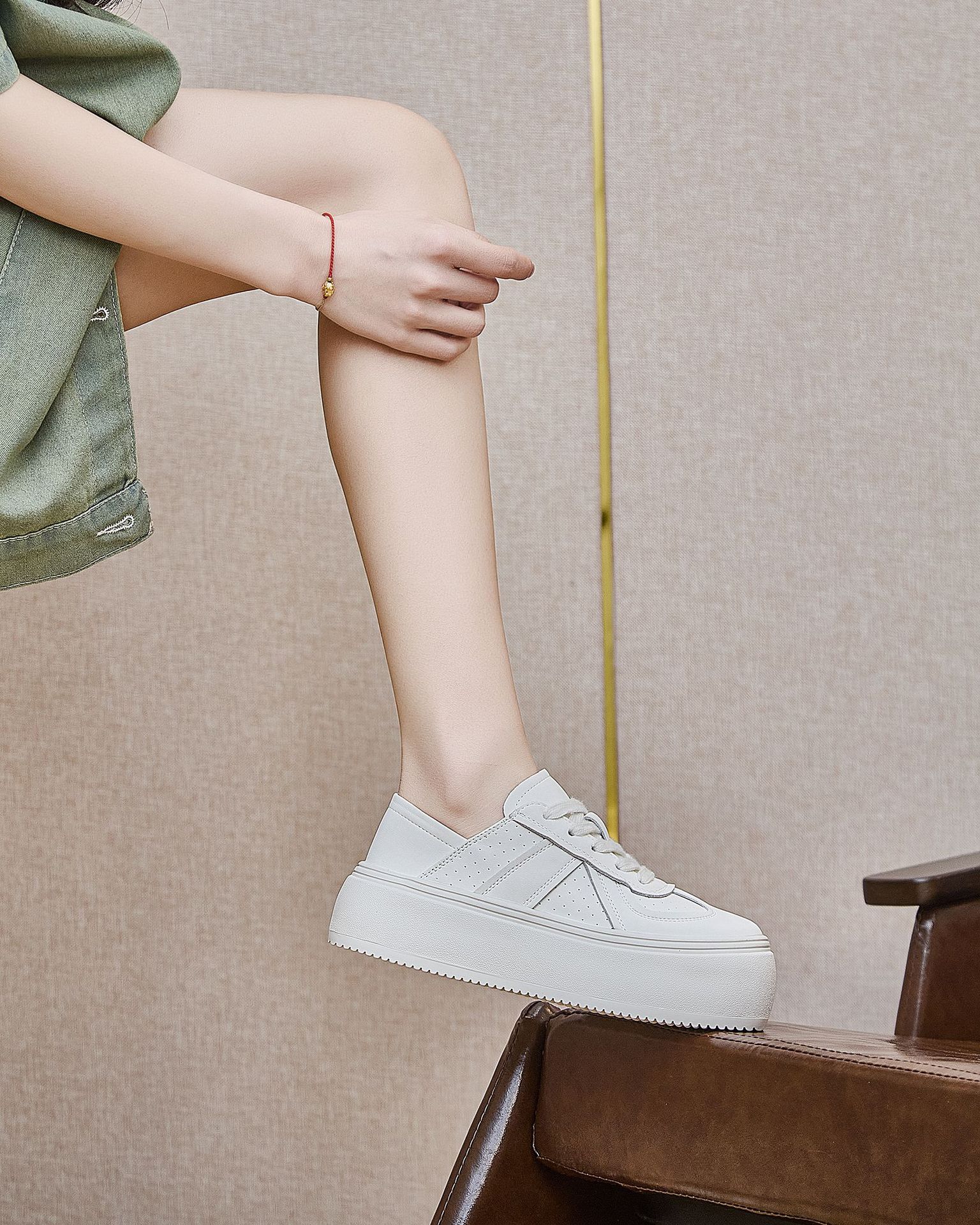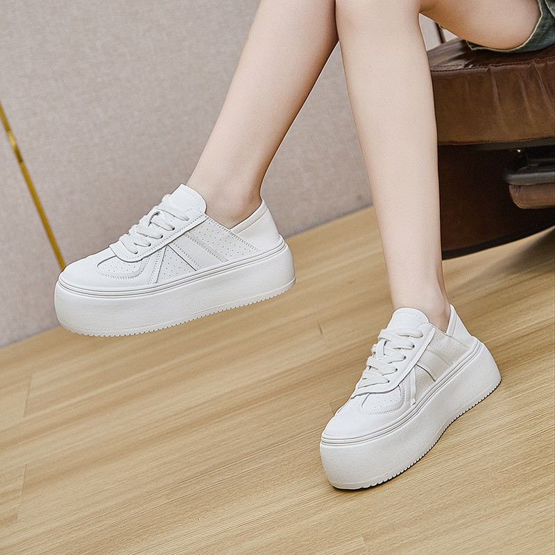 2025 весенне-осенние модели с толстым шнуровкой, повышая кожаную лапшу, повседневные маленькие белые туфли