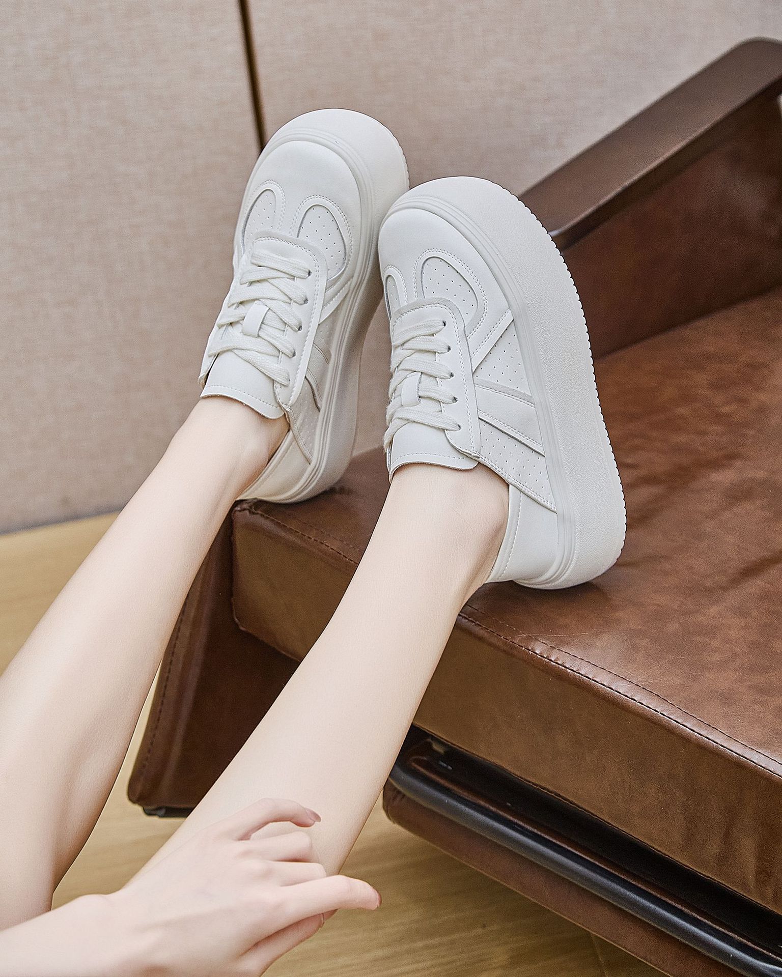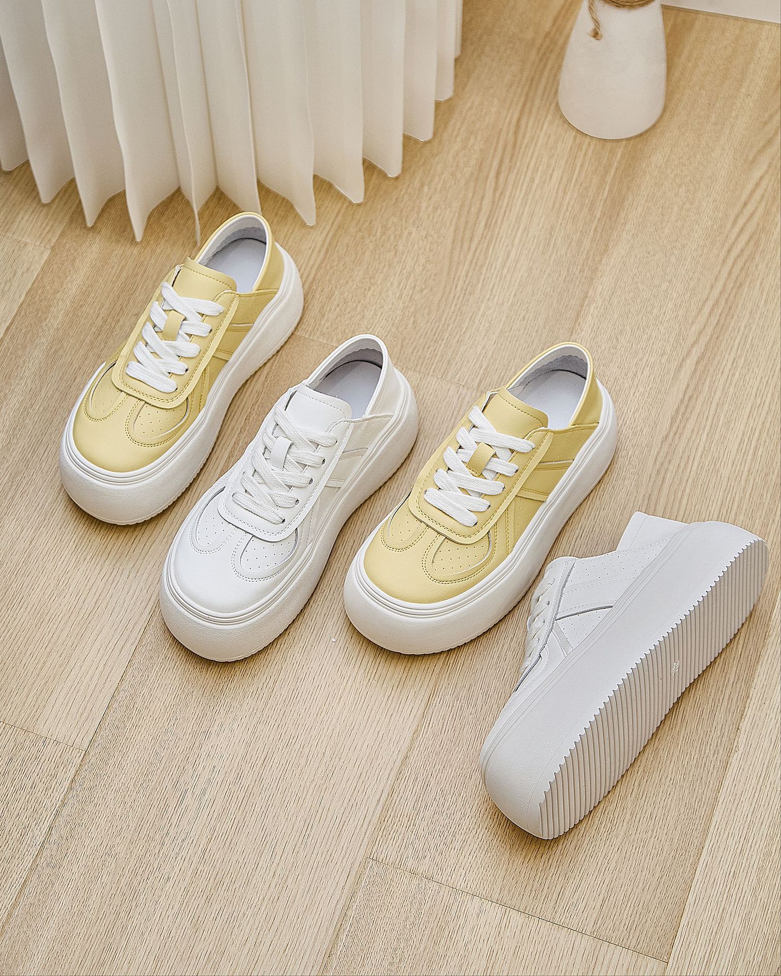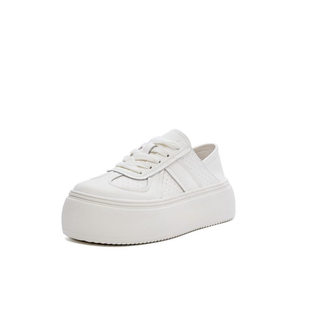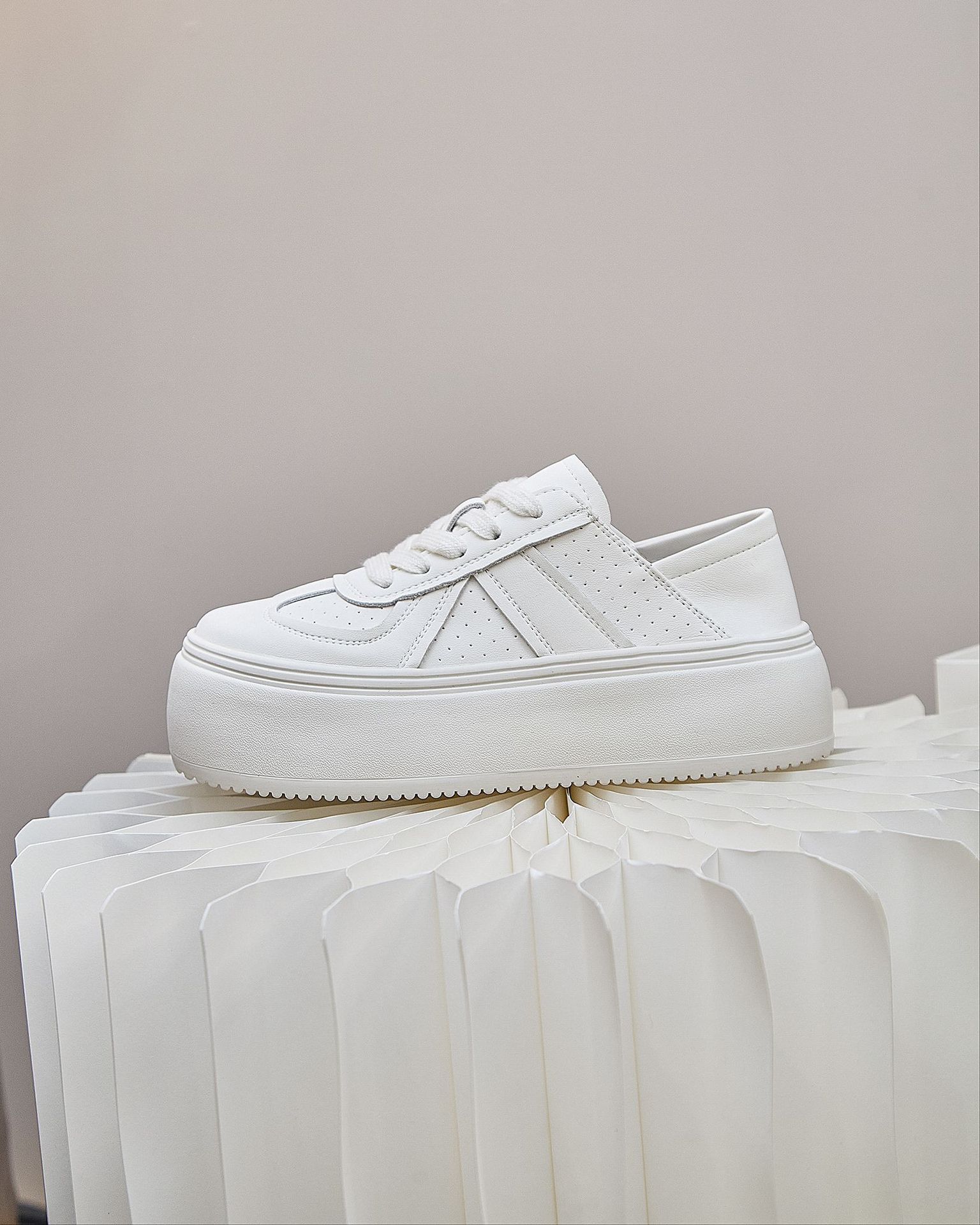 2025 весенне-осенние модели с толстым шнуровкой, повышая кожаную лапшу, повседневные маленькие белые туфли