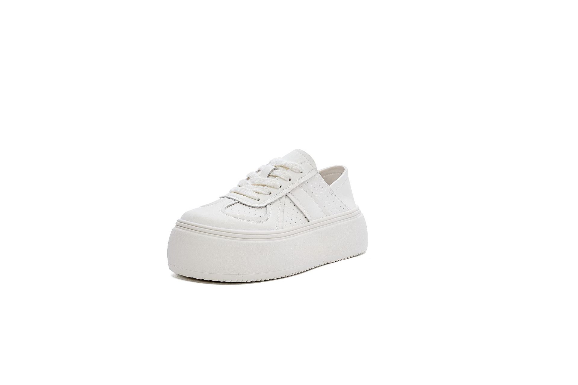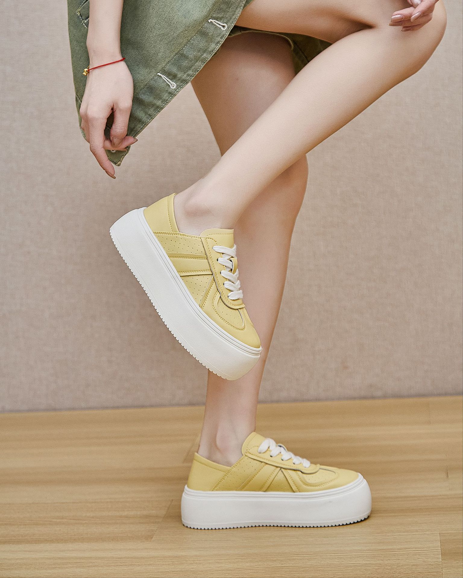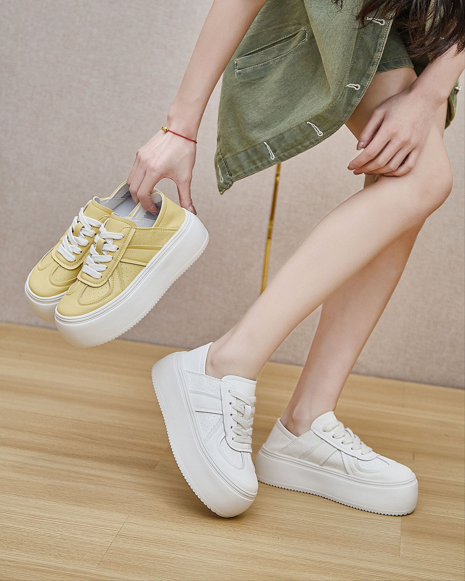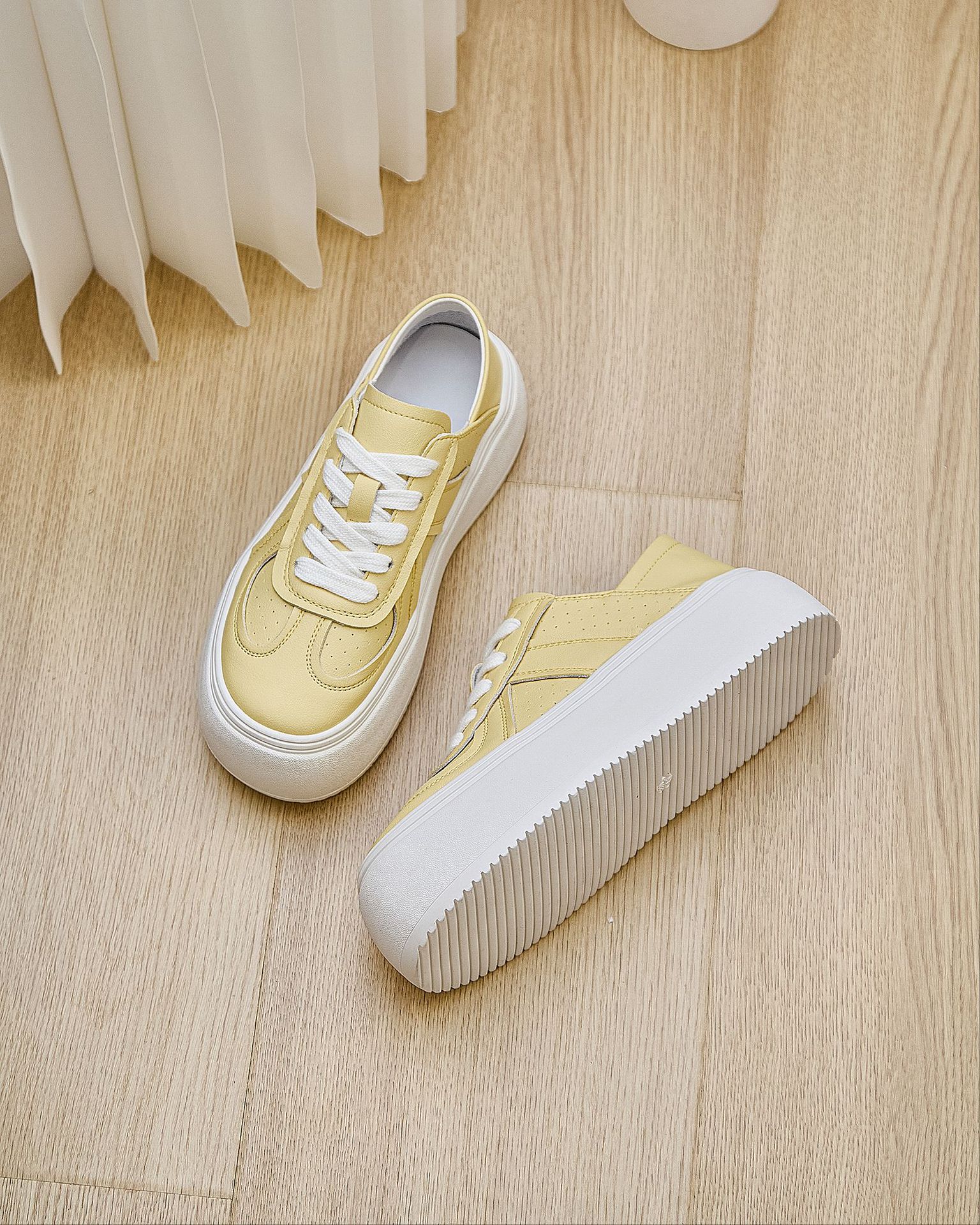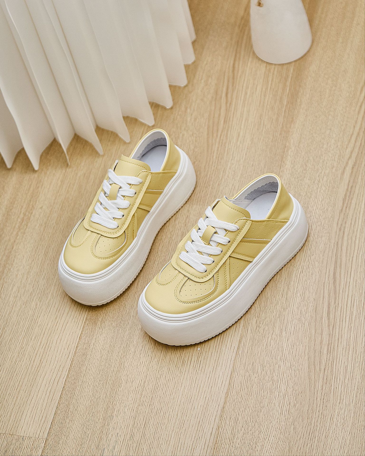 2025 весенне-осенние модели с толстым шнуровкой, повышая кожаную лапшу, повседневные маленькие белые туфли