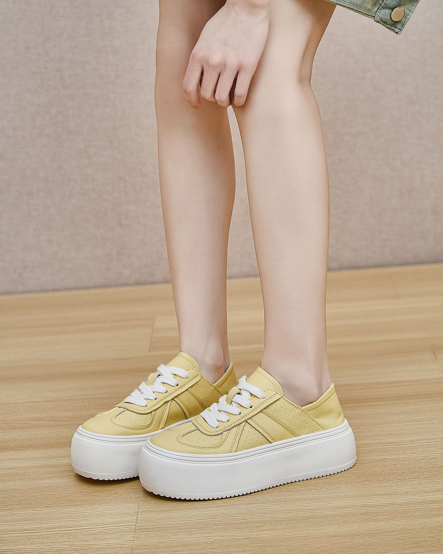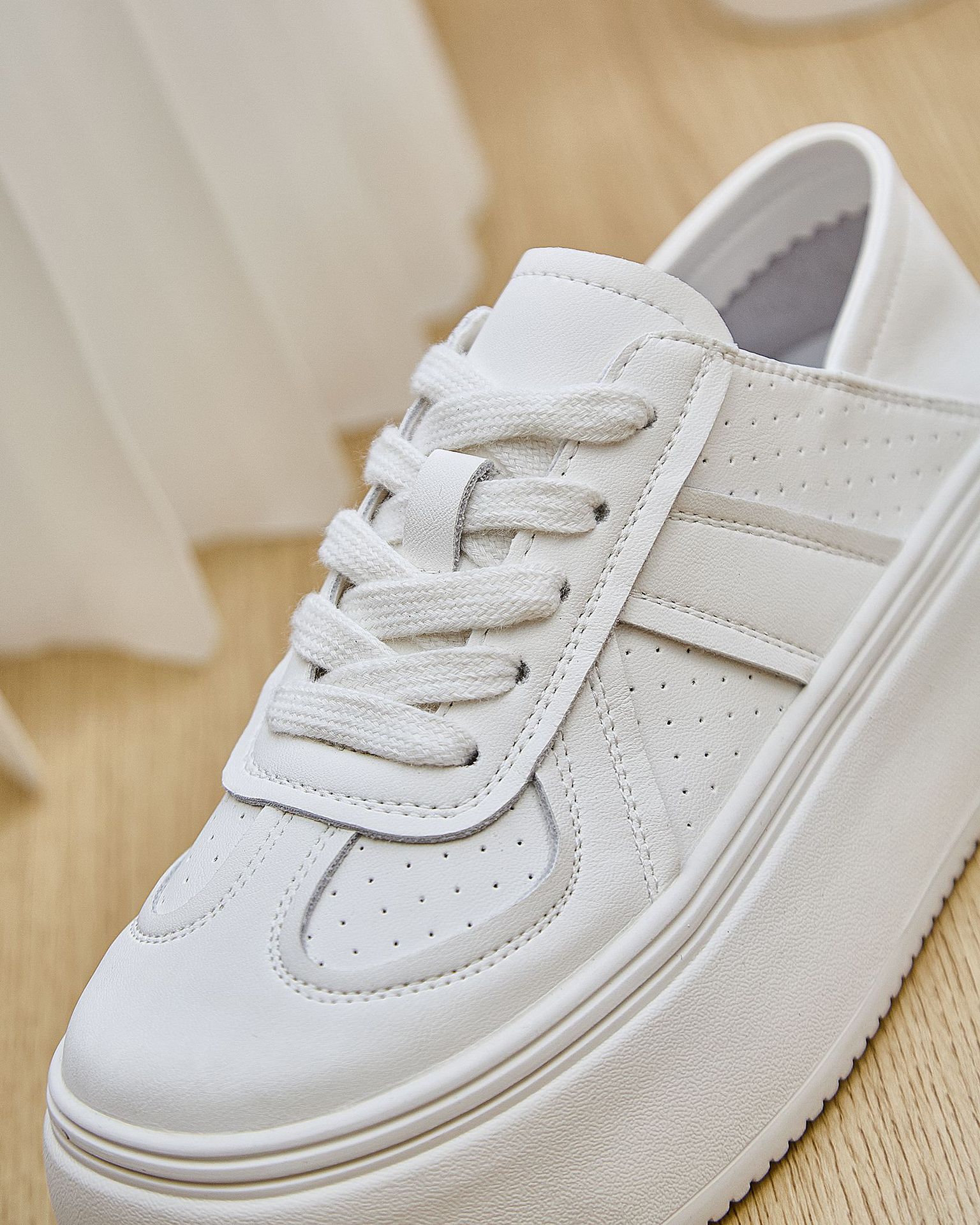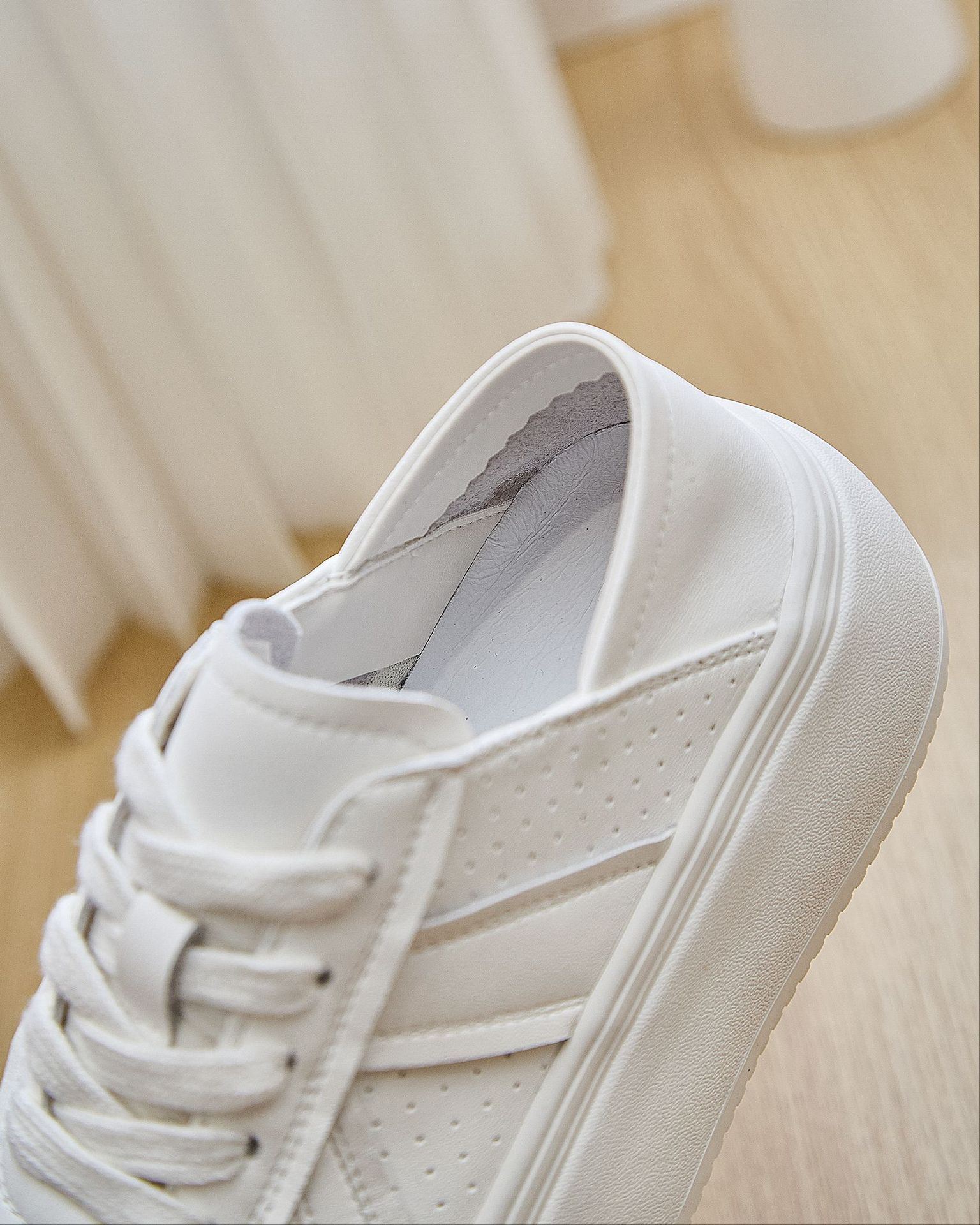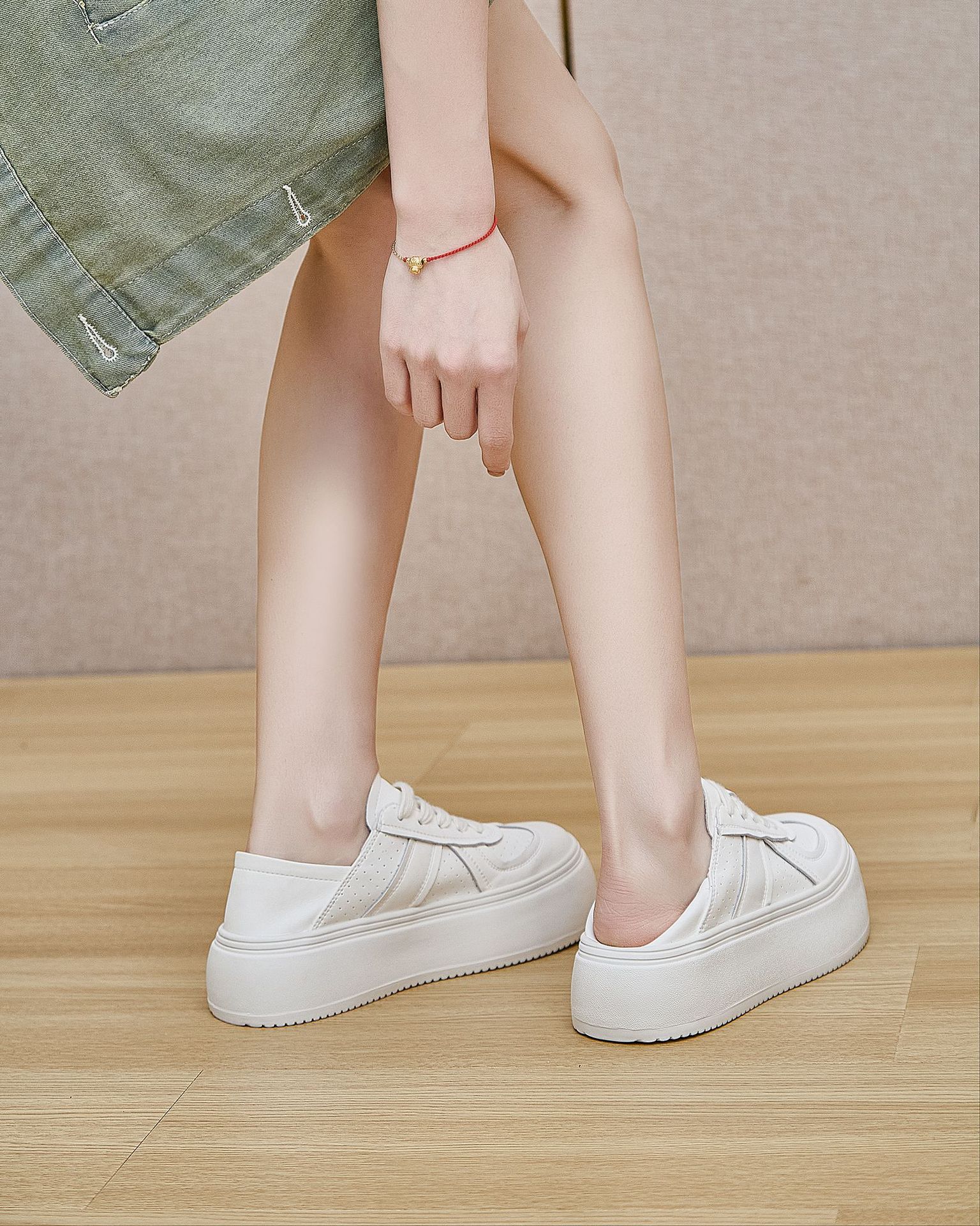 2025 весенне-осенние модели с толстым шнуровкой, повышая кожаную лапшу, повседневные маленькие белые туфли