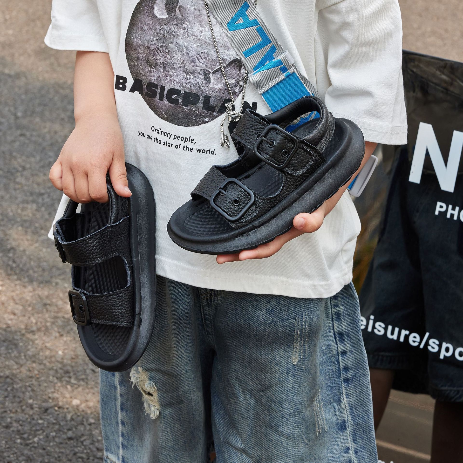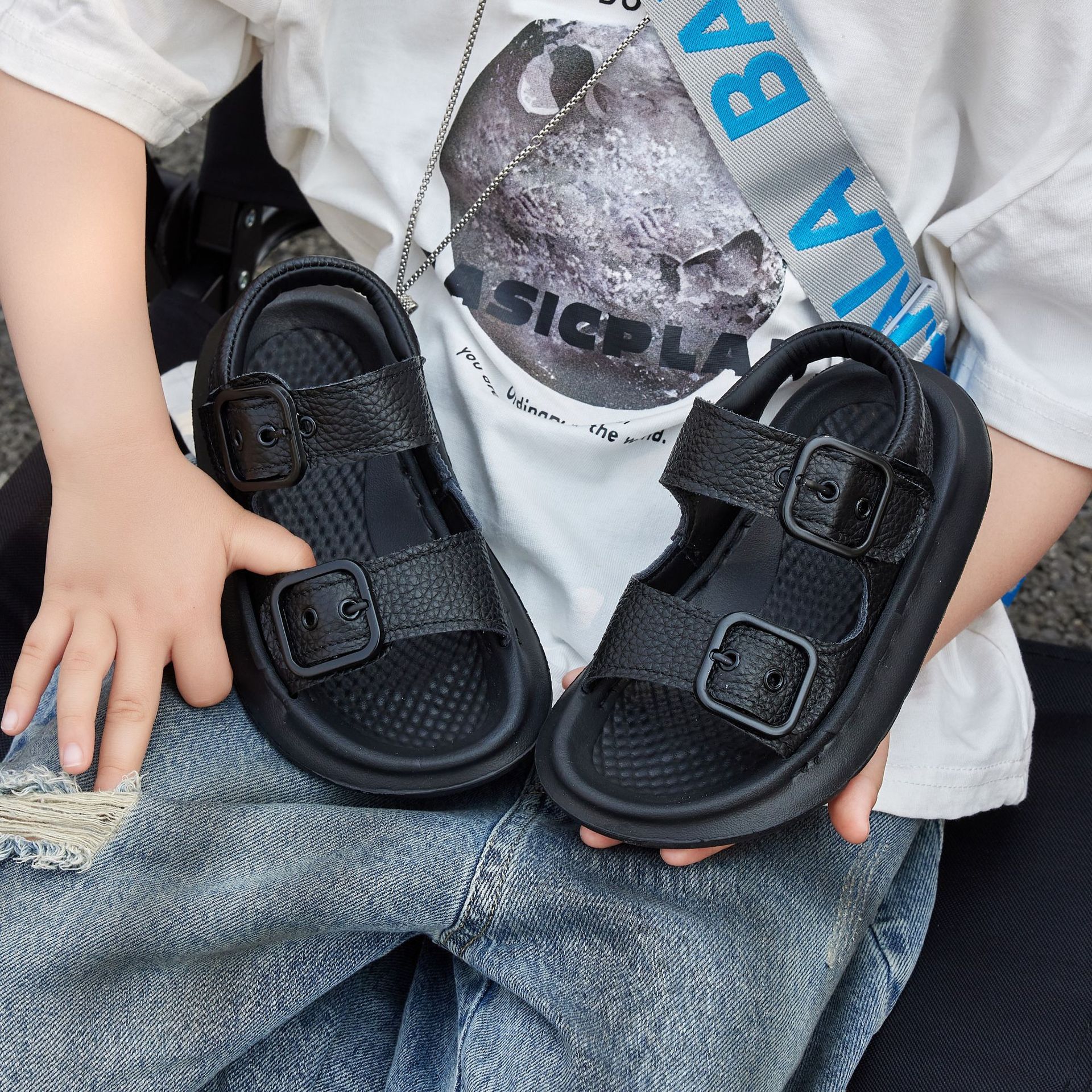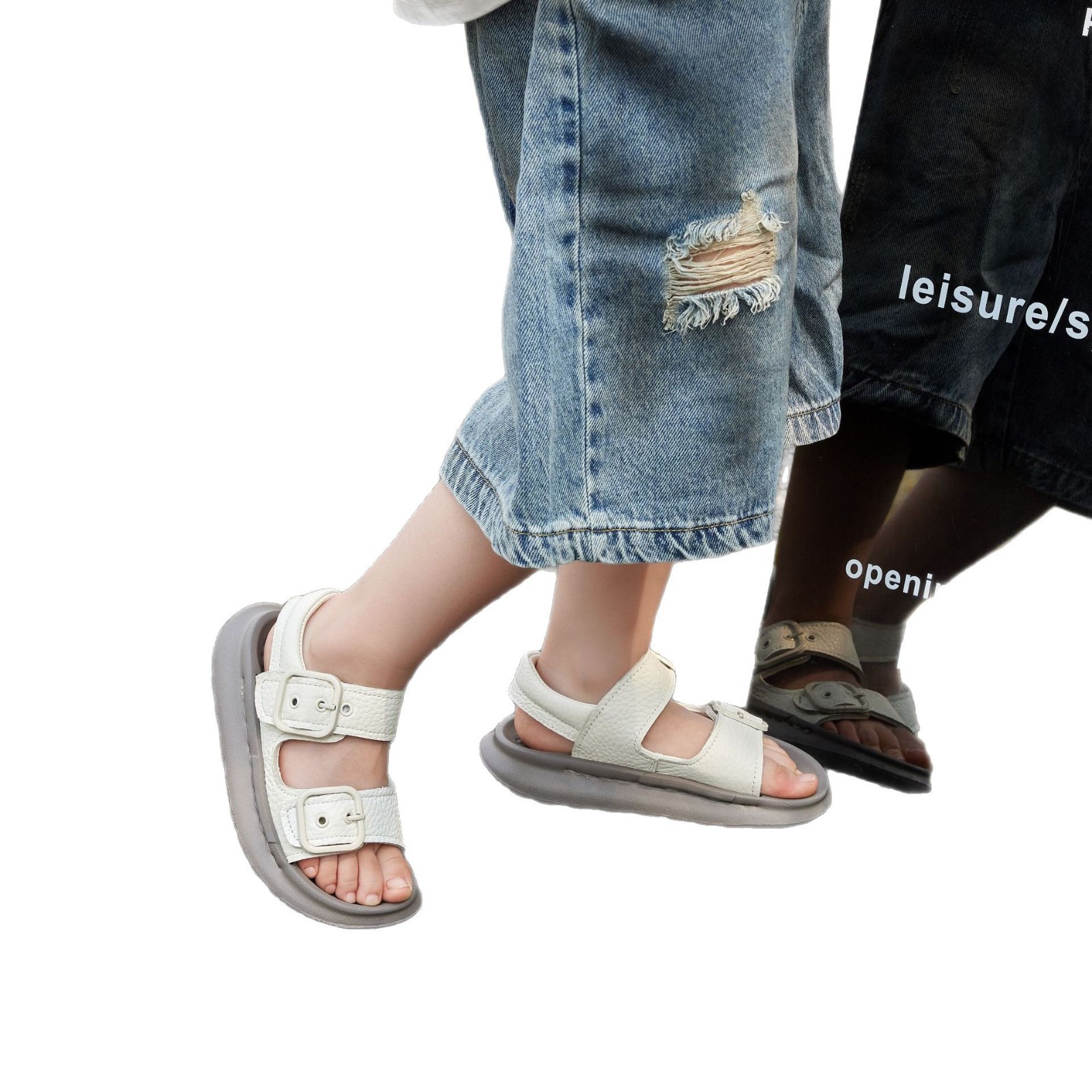 Головной слой воловьих детских сандалий 2025 новый летний мальчик нескользящая пляжная обувь для девочек минималистские сандалии