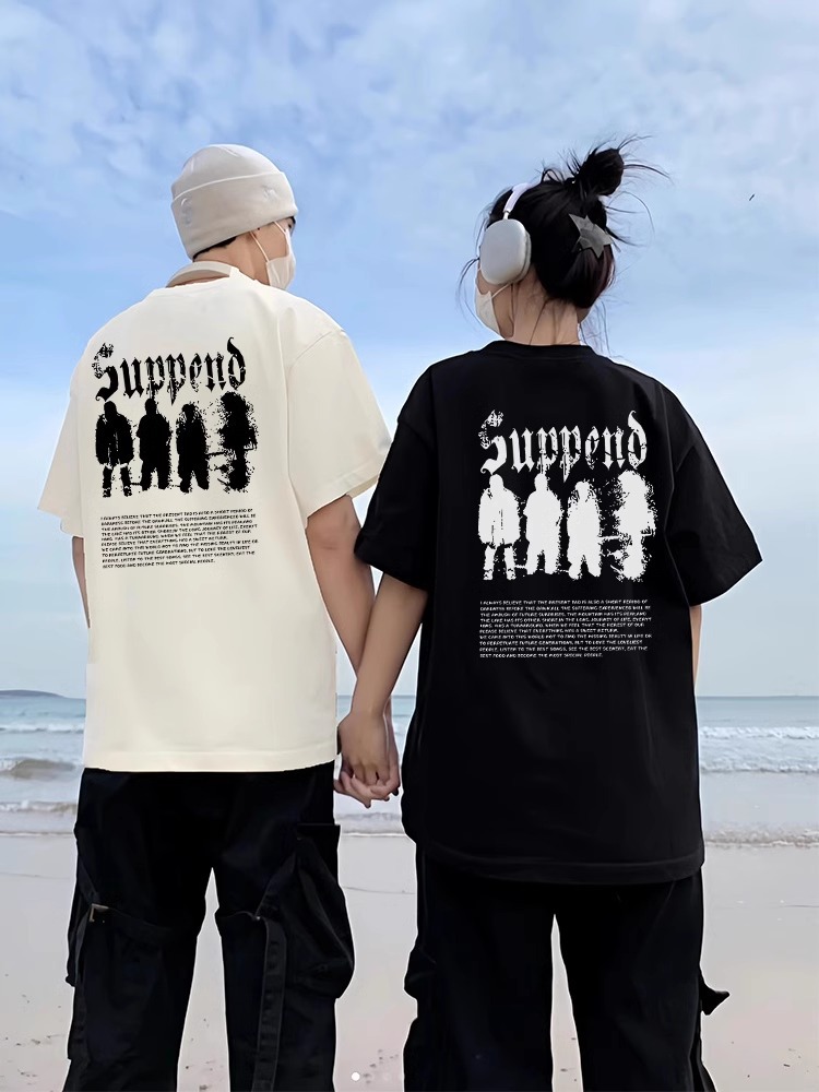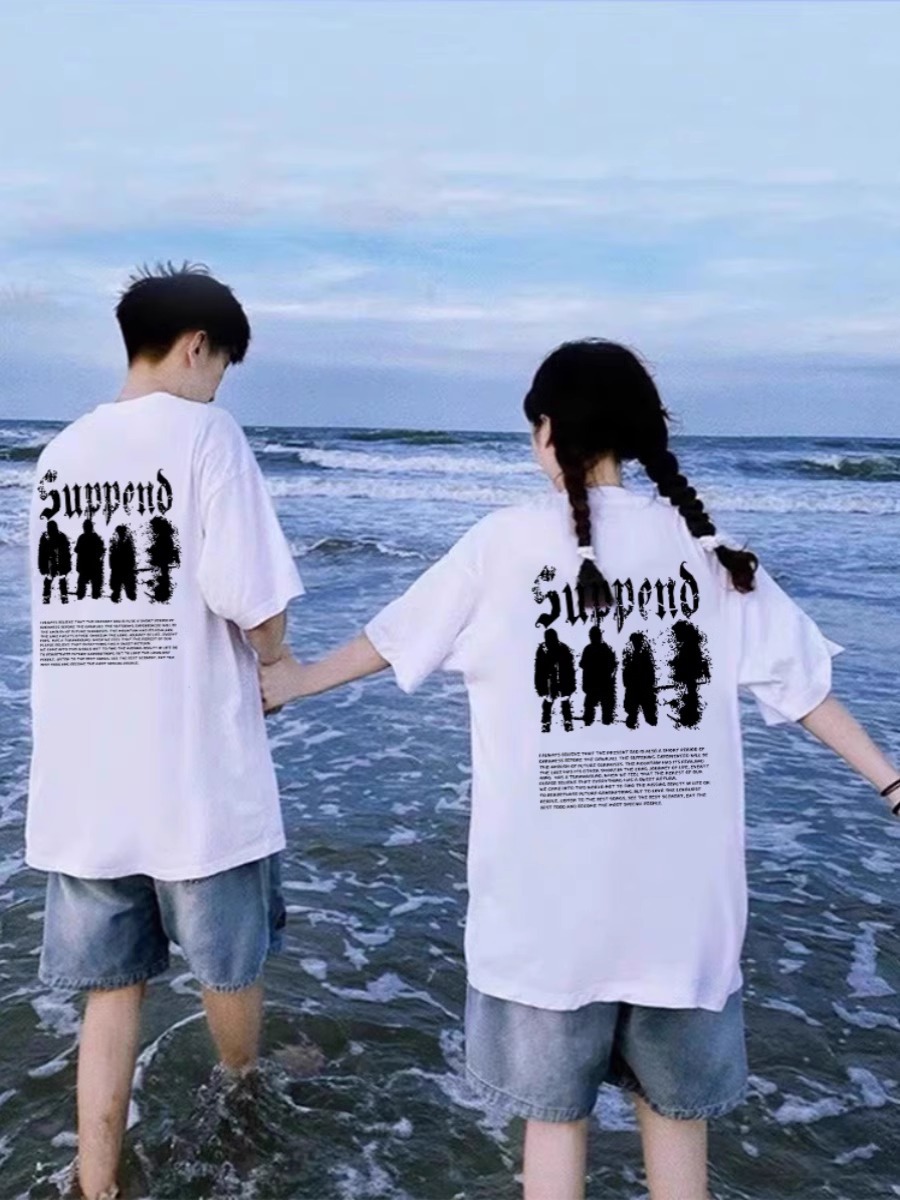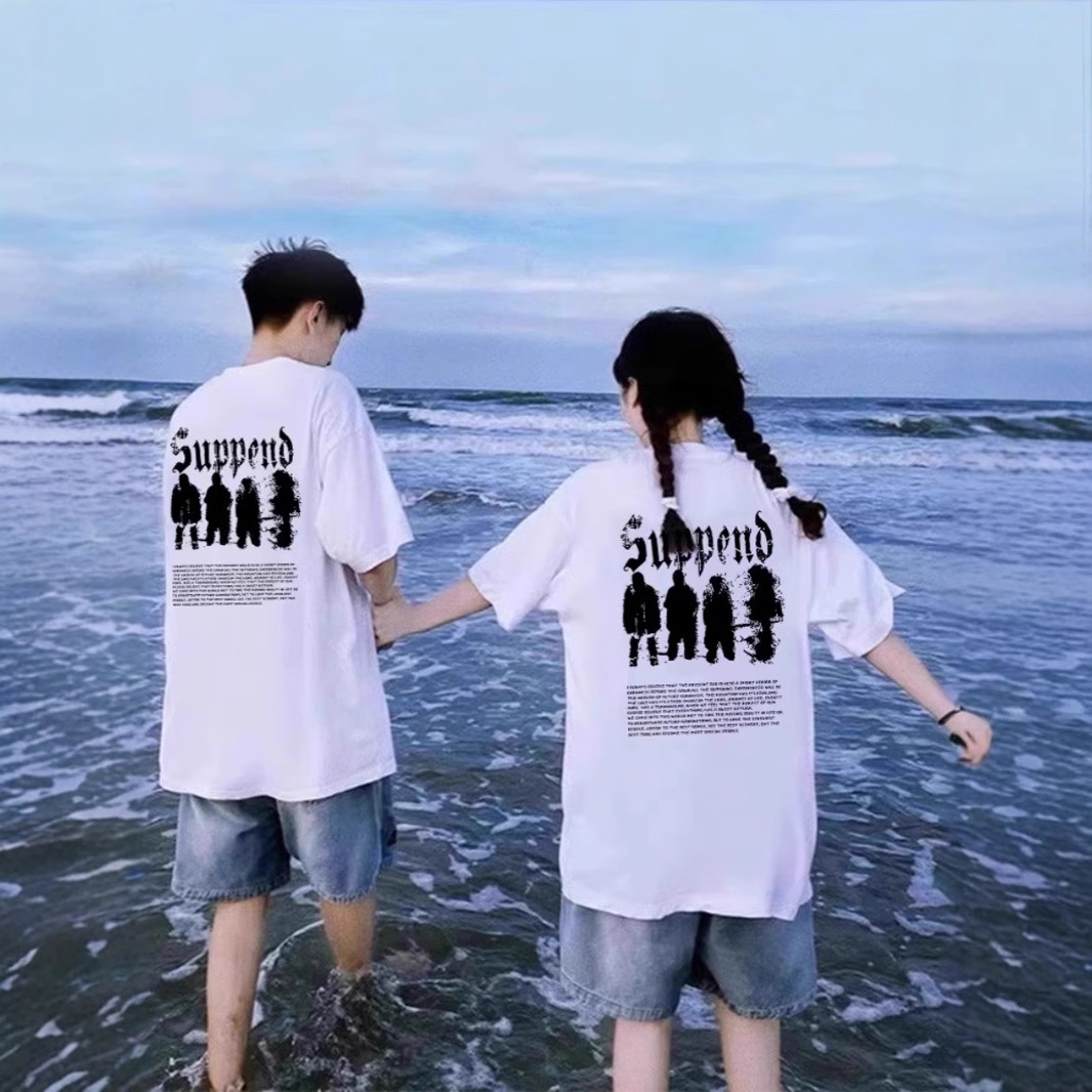 Новая уникальная и отличающаяся от других футболка с коротким рукавом, летняя одежда, специальная одежда для пар интернет-знаменитостей, элитная ниша 2025 года.