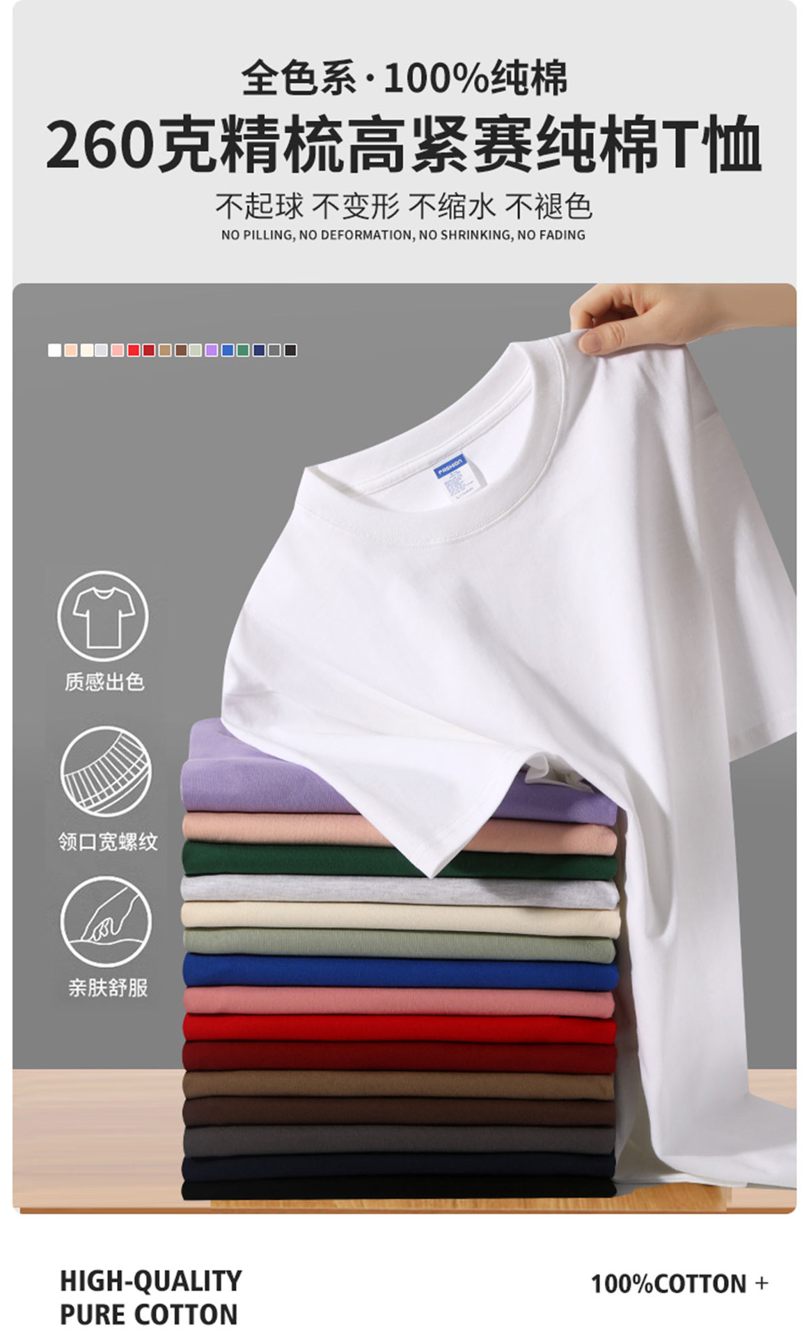 Футболка из 100% хлопка, плотность 260 г/м², с коротким рукавом, на заказ, для промоакций, рабочая одежда, с круглым вырезом, для корпоративных мероприятий, летняя, для школьной формы, с вышивкой