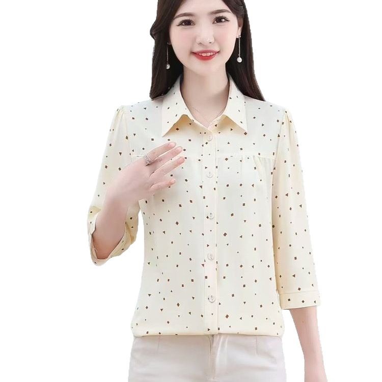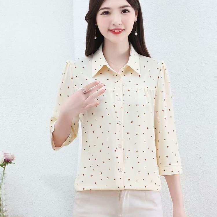 Женская одежда 2025, рубашка весна-осень, новый стиль, свободные топы для женщин среднего и пожилого возраста, модные рубашки с принтом для пожилых