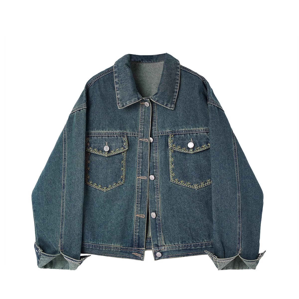 Винтажная джинсовая куртка с вышивкой для женщин, короткий стиль, весна и осень 2025, свободная повседневная универсальная куртка, топ-тренд.