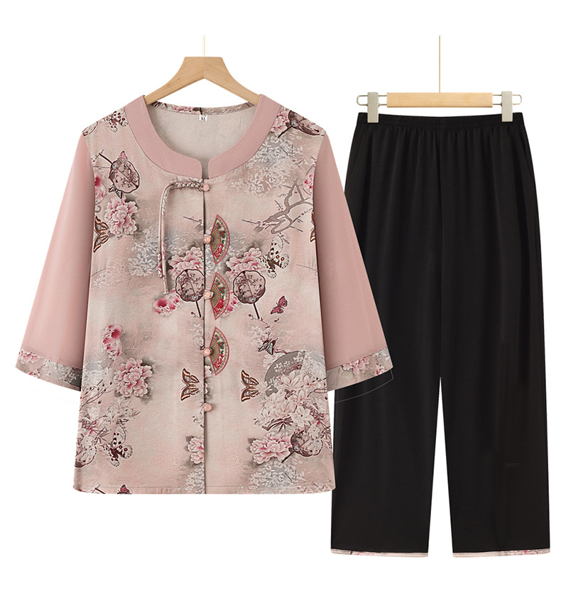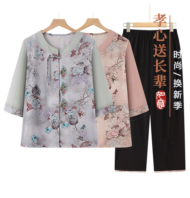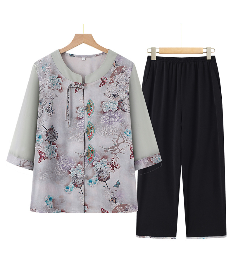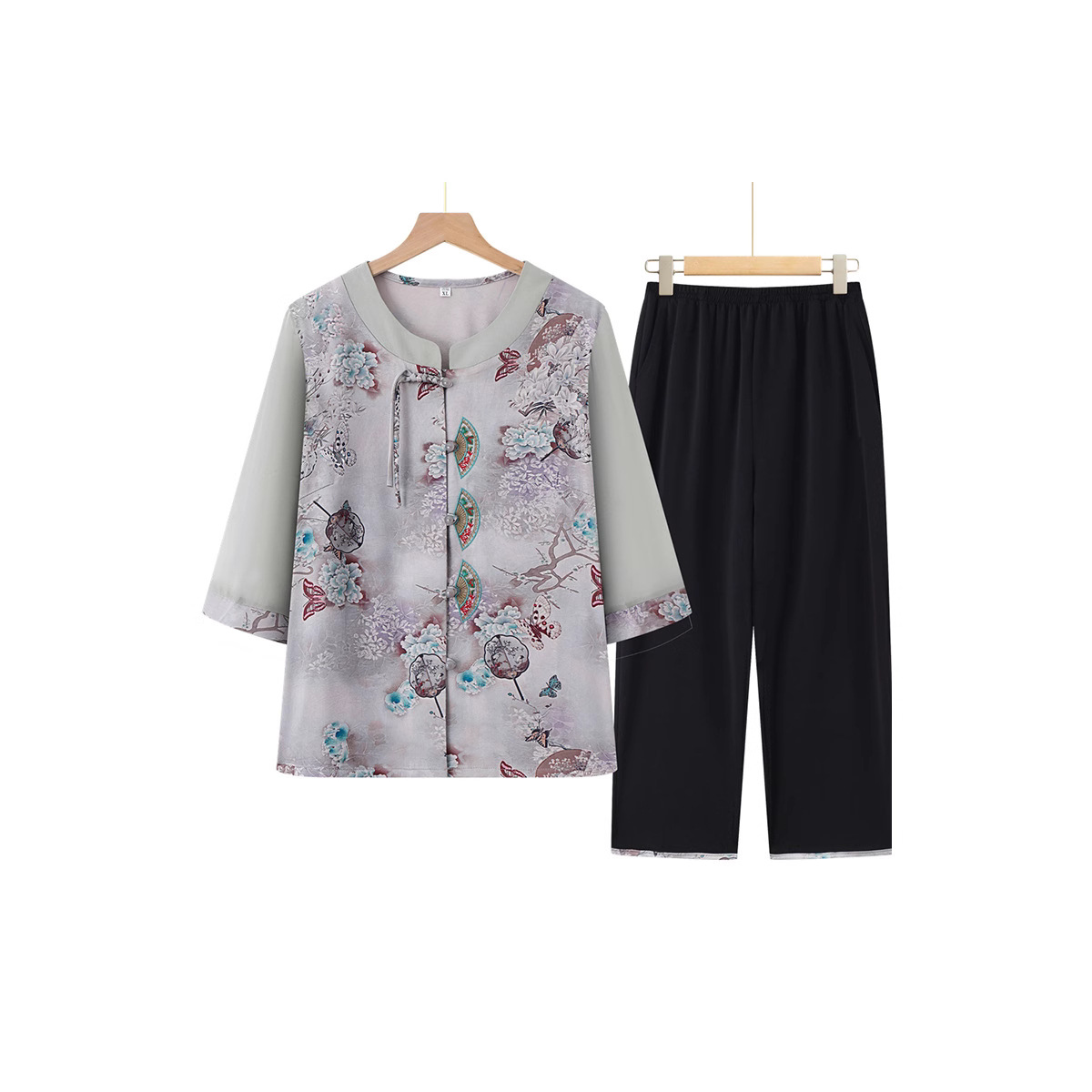 Летний костюм бабушки, женский костюм-двойка с короткими рукавами для женщин среднего и пожилого возраста, летний свободный кардиган для женщин 60 и 70 лет