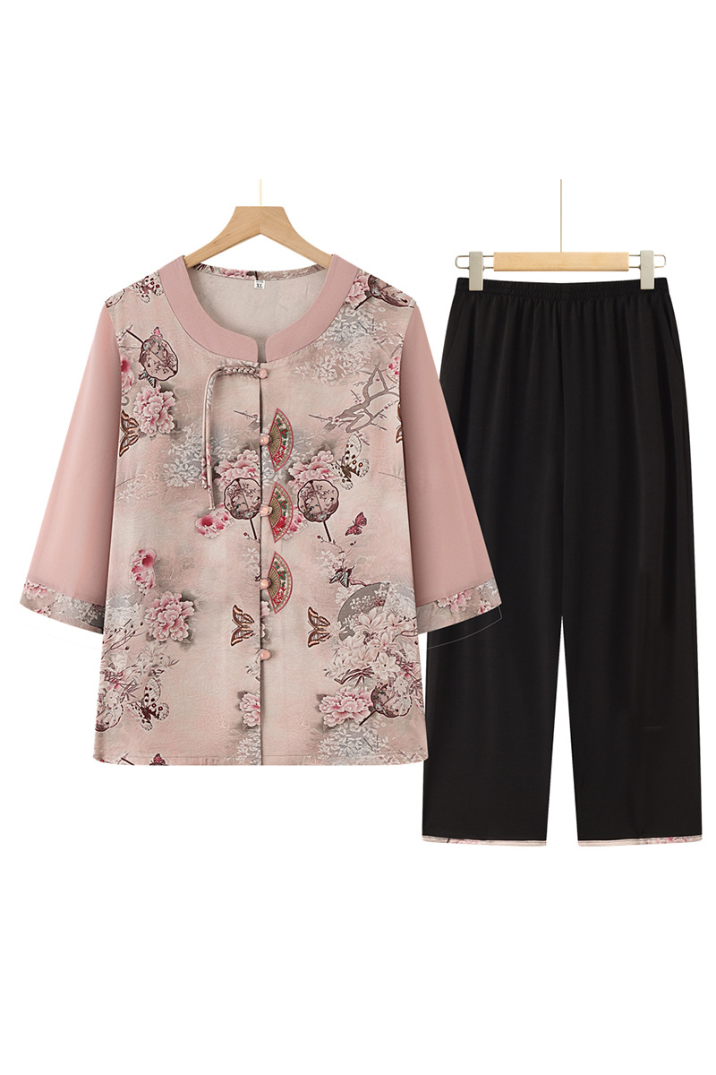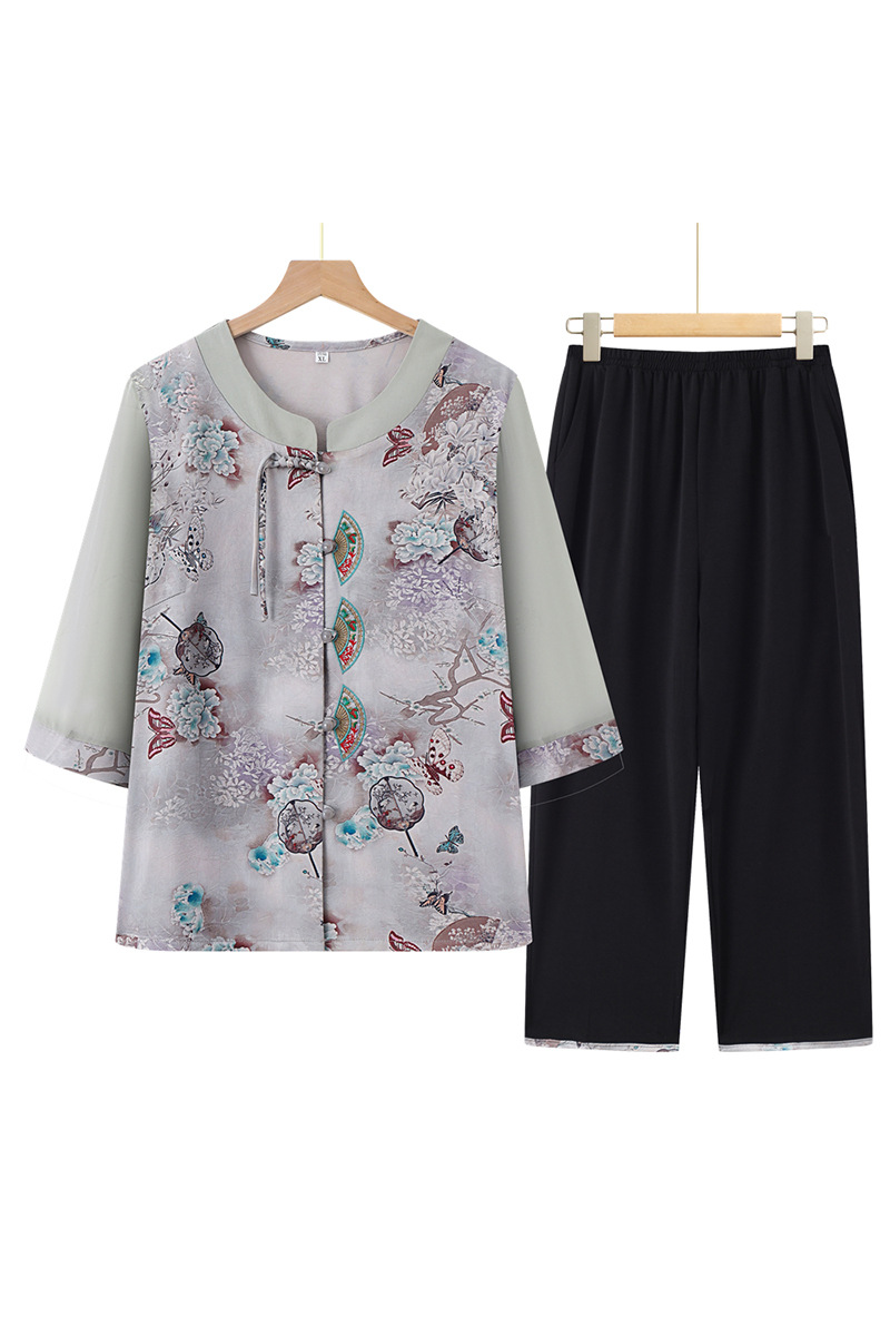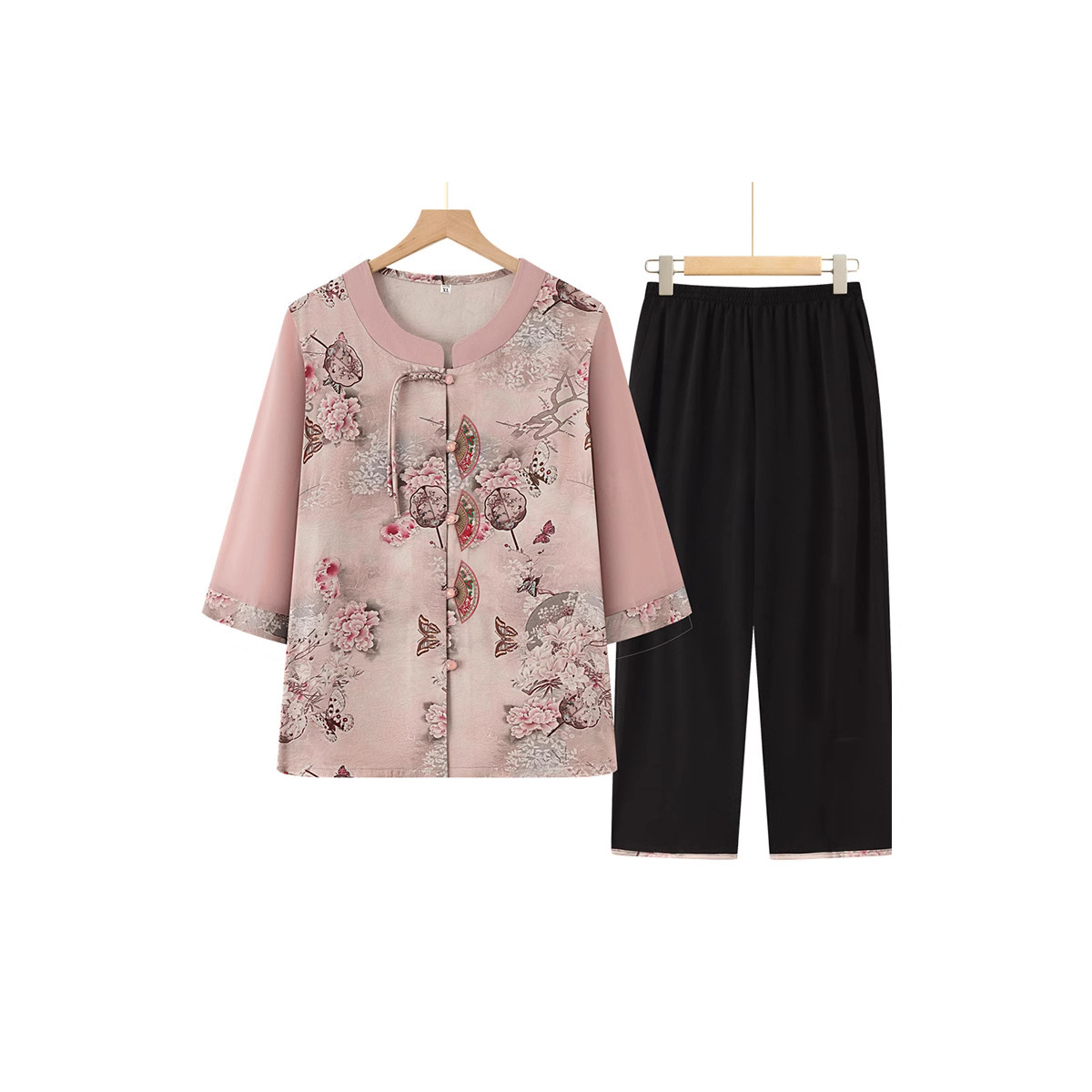 Летний костюм бабушки, женский костюм-двойка с короткими рукавами для женщин среднего и пожилого возраста, летний свободный кардиган для женщин 60 и 70 лет