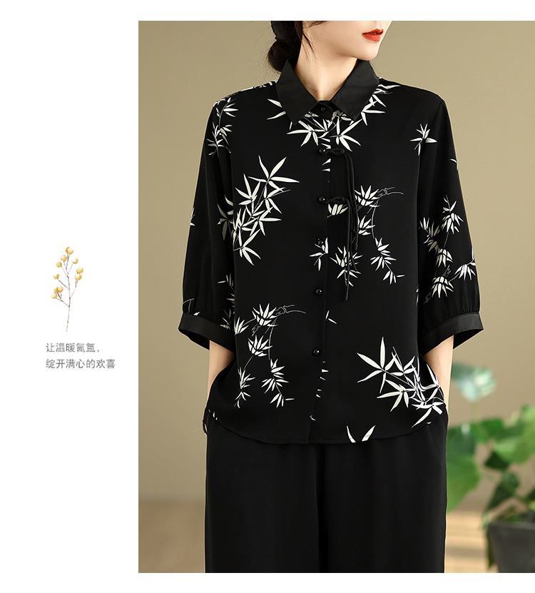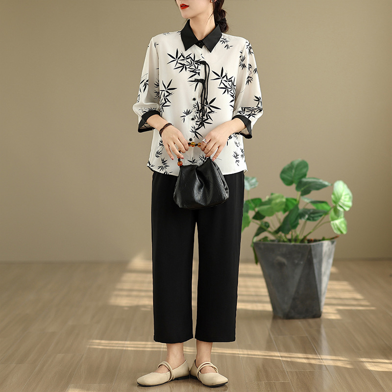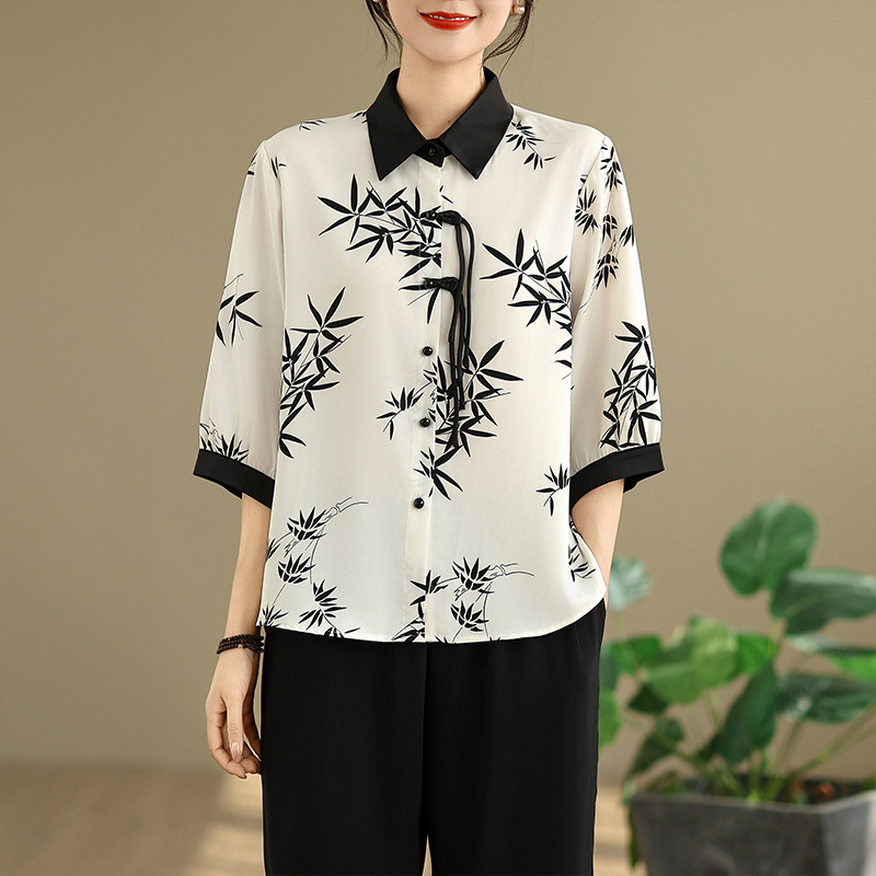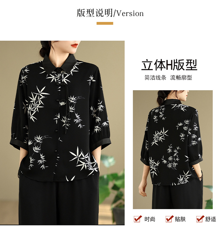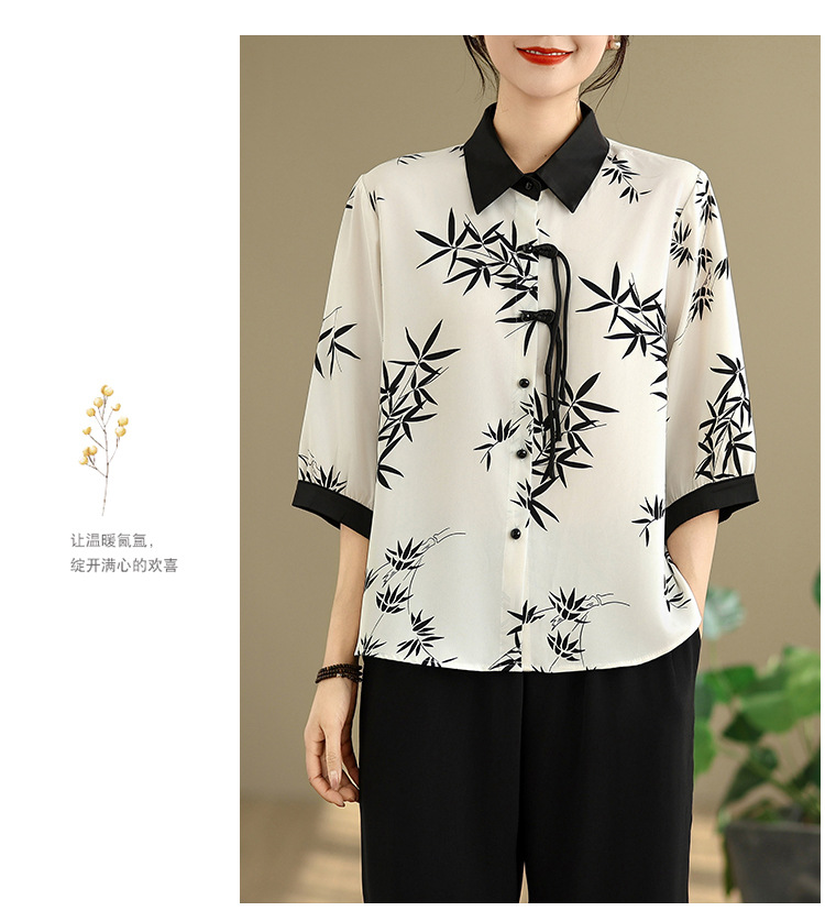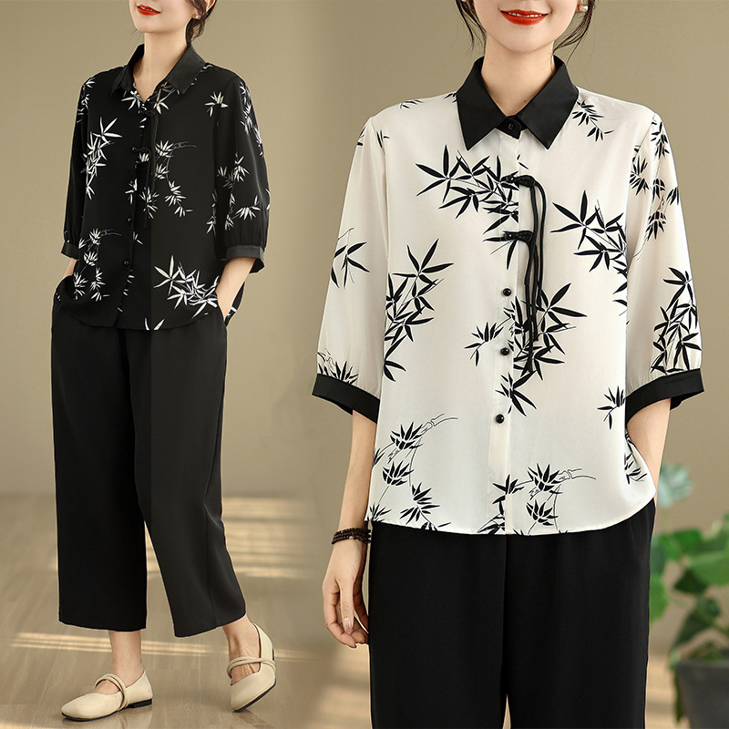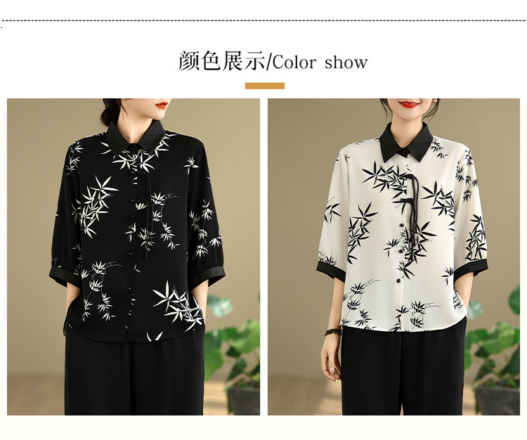 Настоящая фотография модной шифоновой рубашки с лацканами для женщин среднего и пожилого возраста, летняя свободная тонкая рубашка со средним рукавом, футболка, костюм