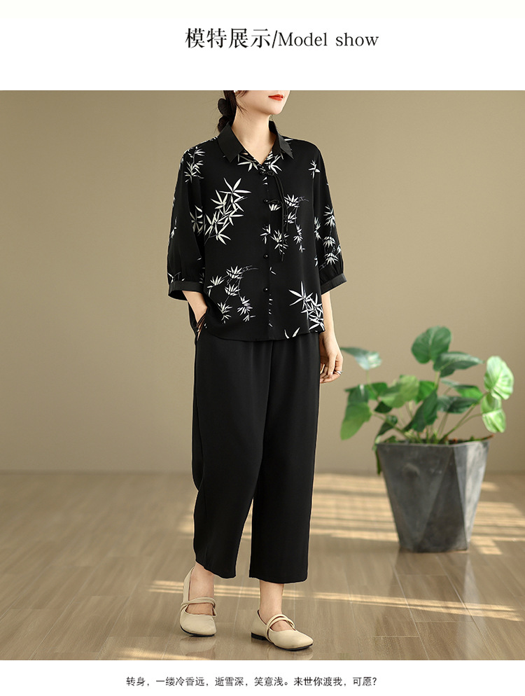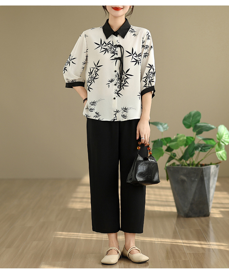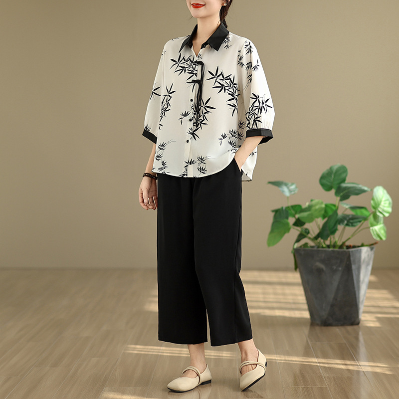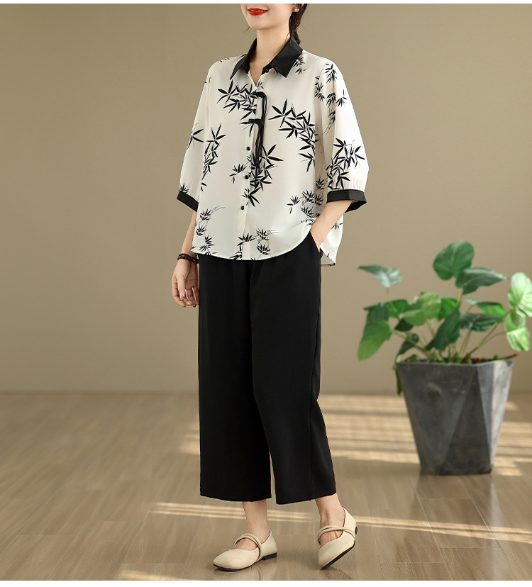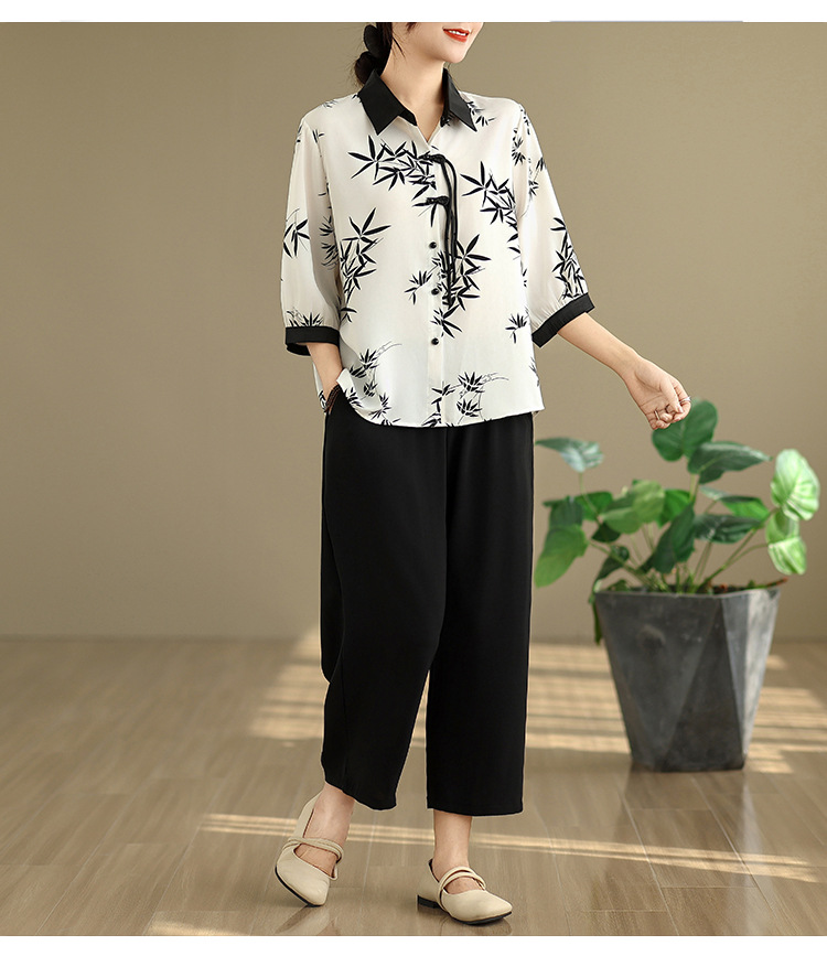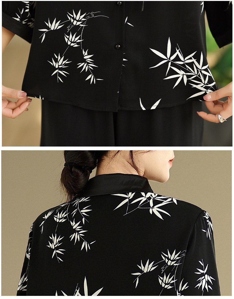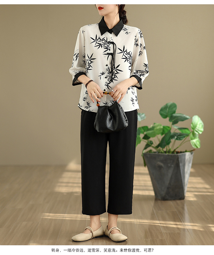 Настоящая фотография модной шифоновой рубашки с лацканами для женщин среднего и пожилого возраста, летняя свободная тонкая рубашка со средним рукавом, футболка, костюм