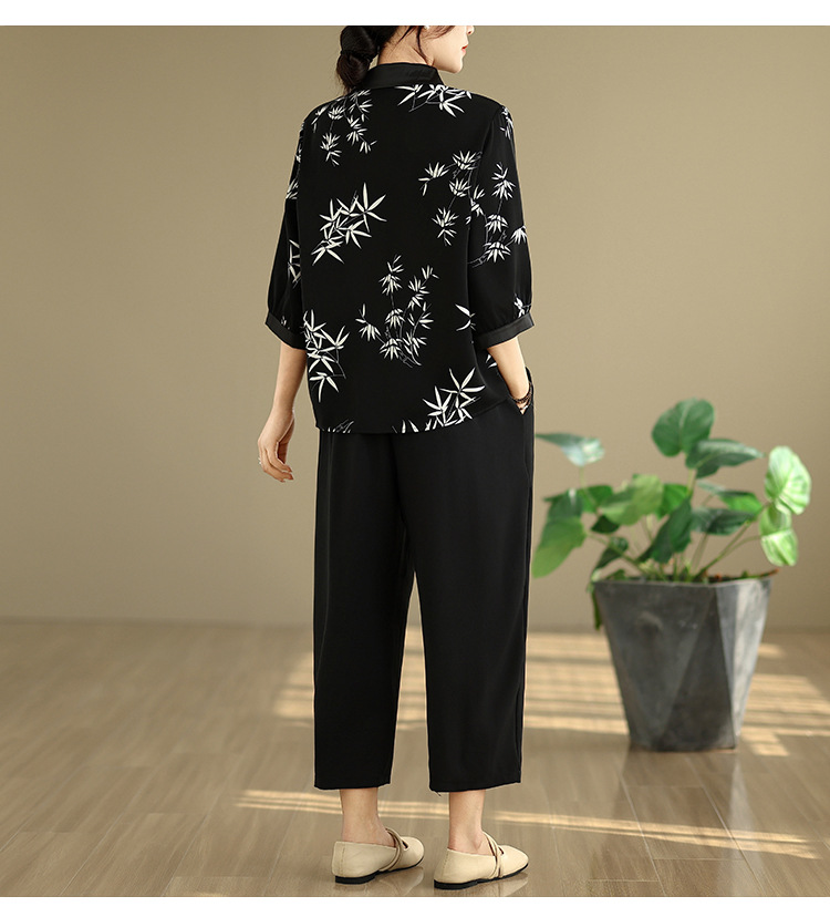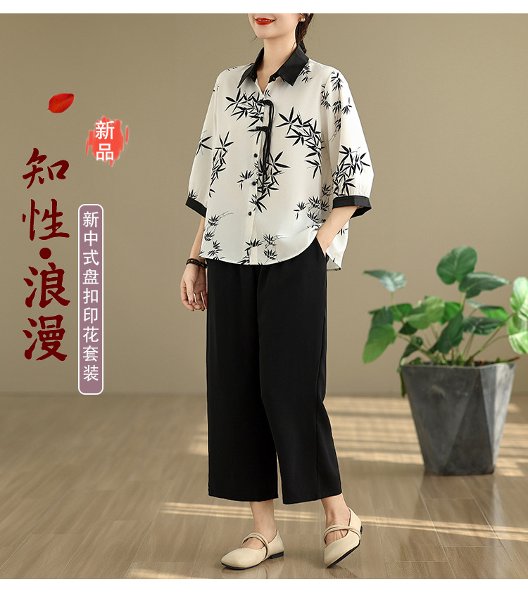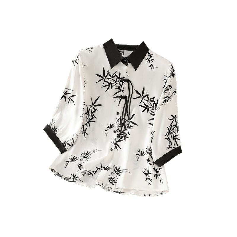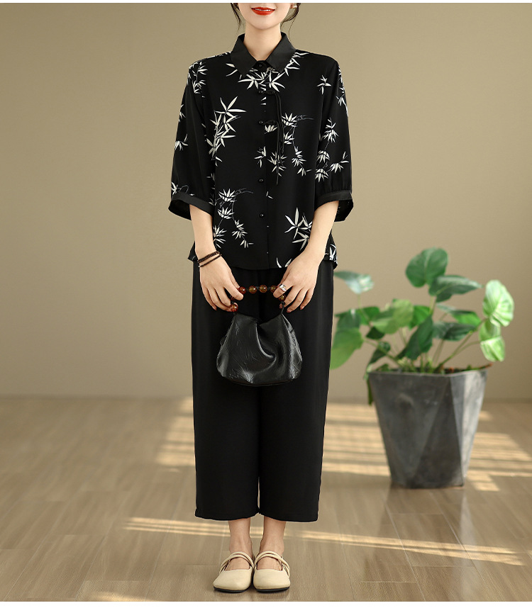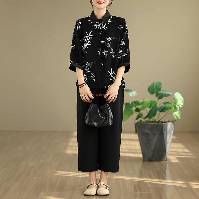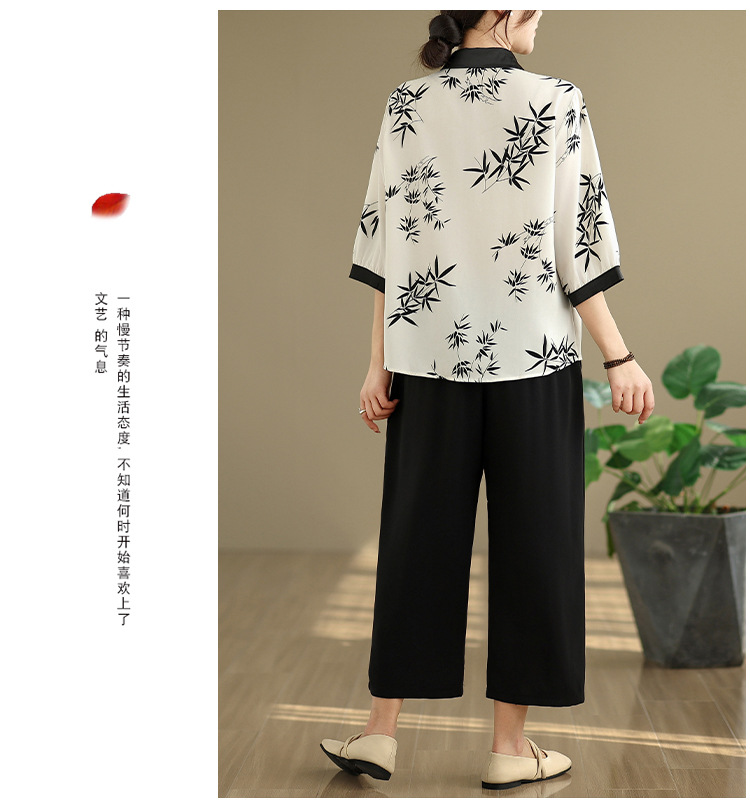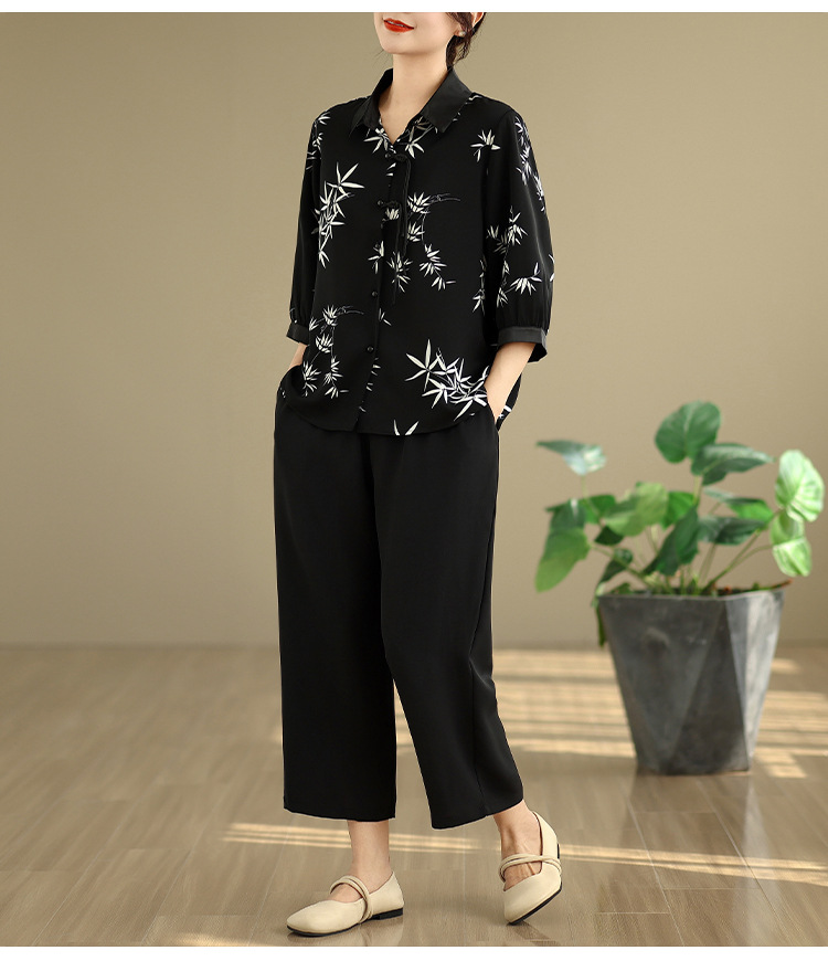 Настоящая фотография модной шифоновой рубашки с лацканами для женщин среднего и пожилого возраста, летняя свободная тонкая рубашка со средним рукавом, футболка, костюм