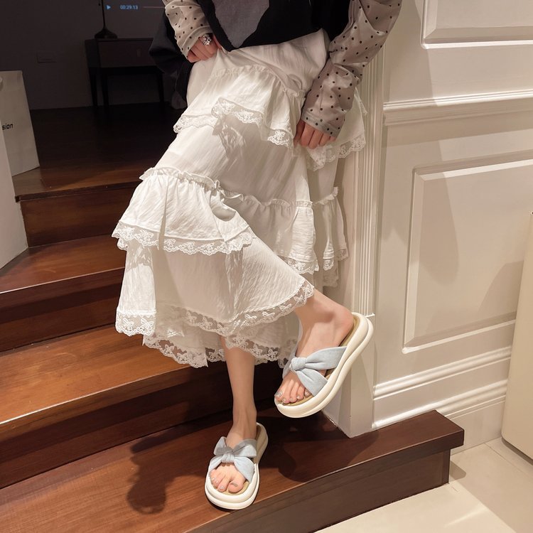Женские сандалии в стиле феи для улицы, лето 2025, новая мода, с юбкой, пляжные шлепанцы на толстой подошве