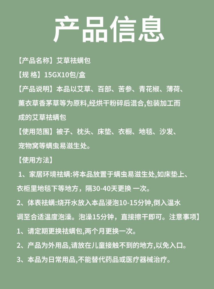 Мешок для удаления клещей из полыни Qingyutang 15 г * 10 пакетов