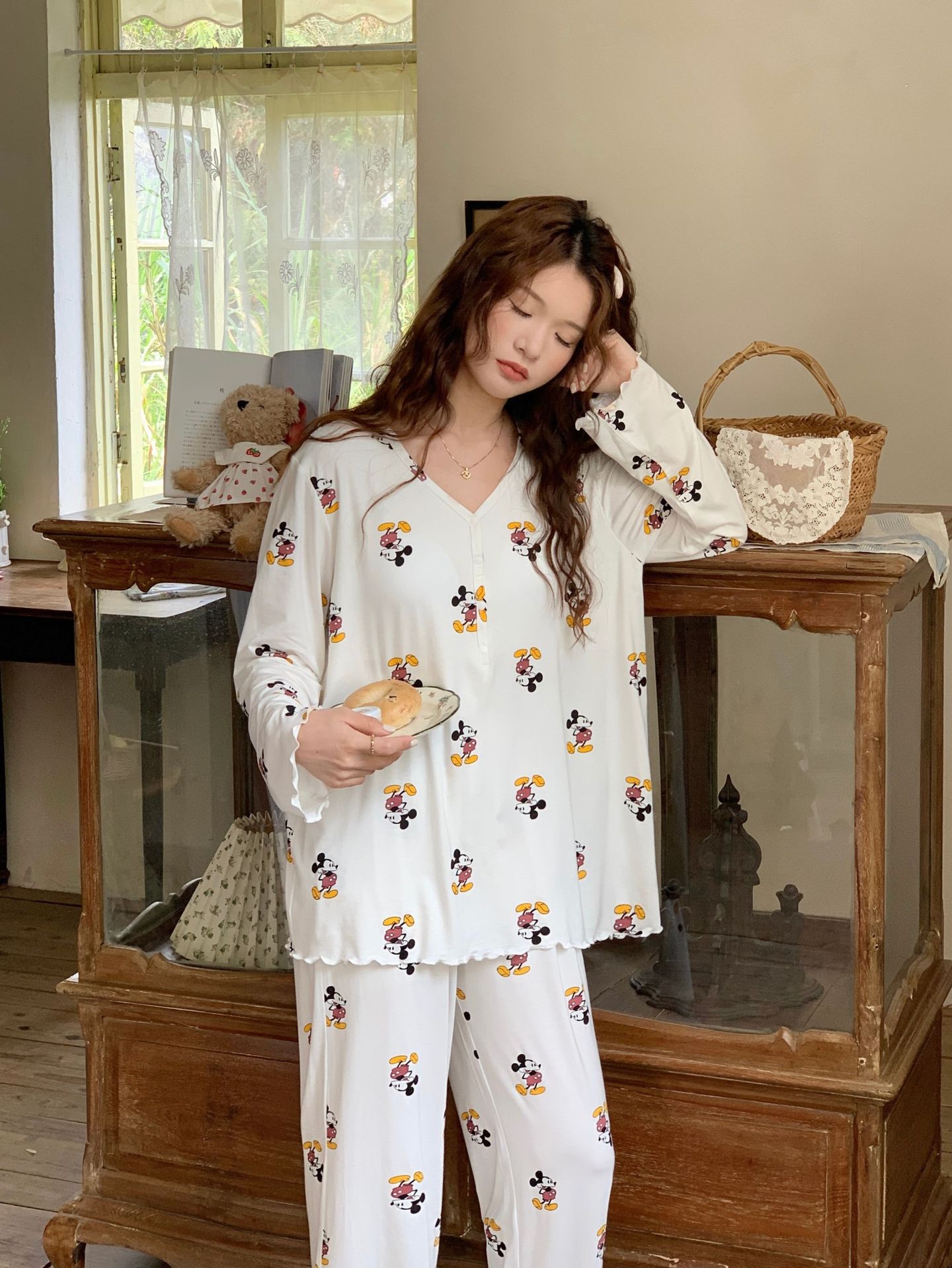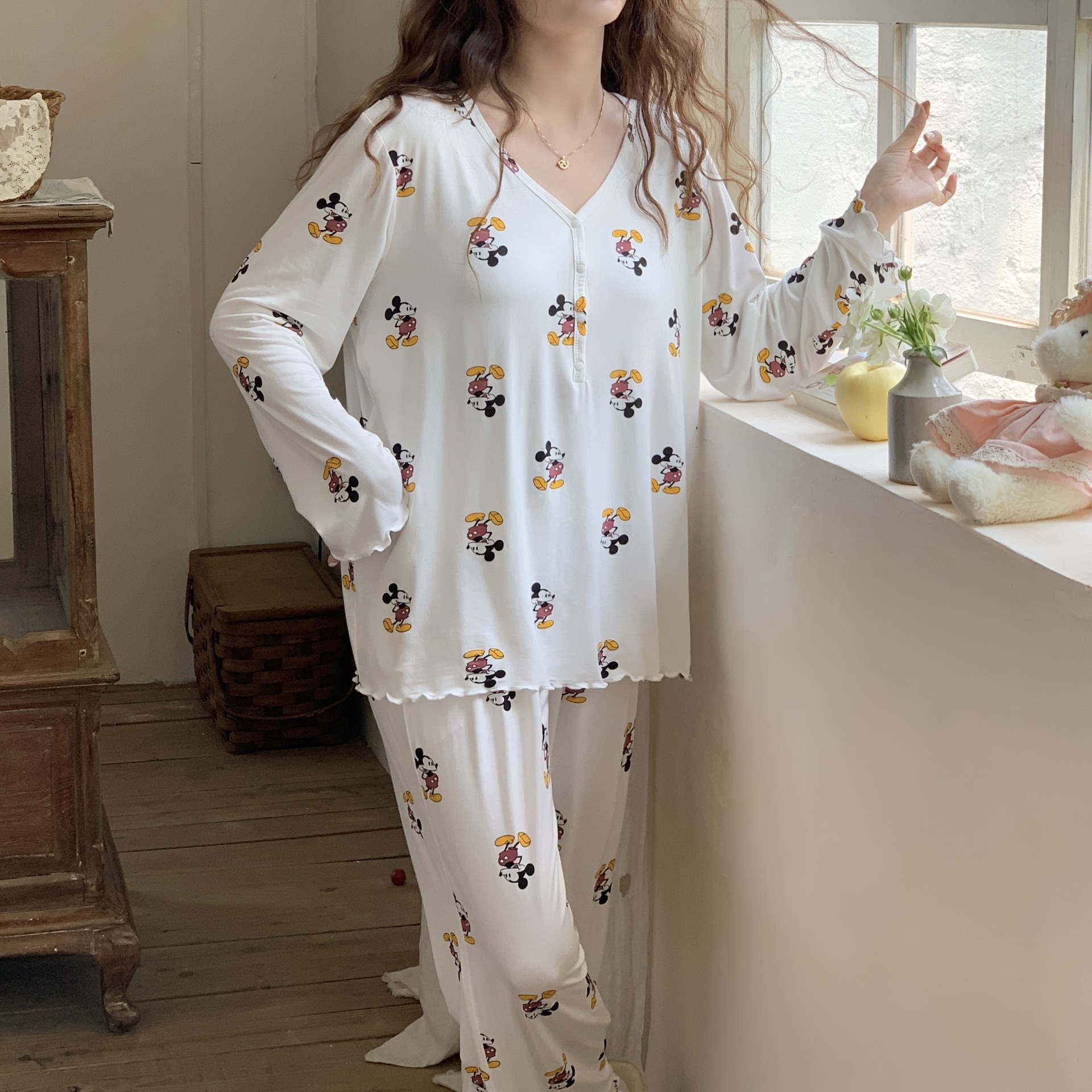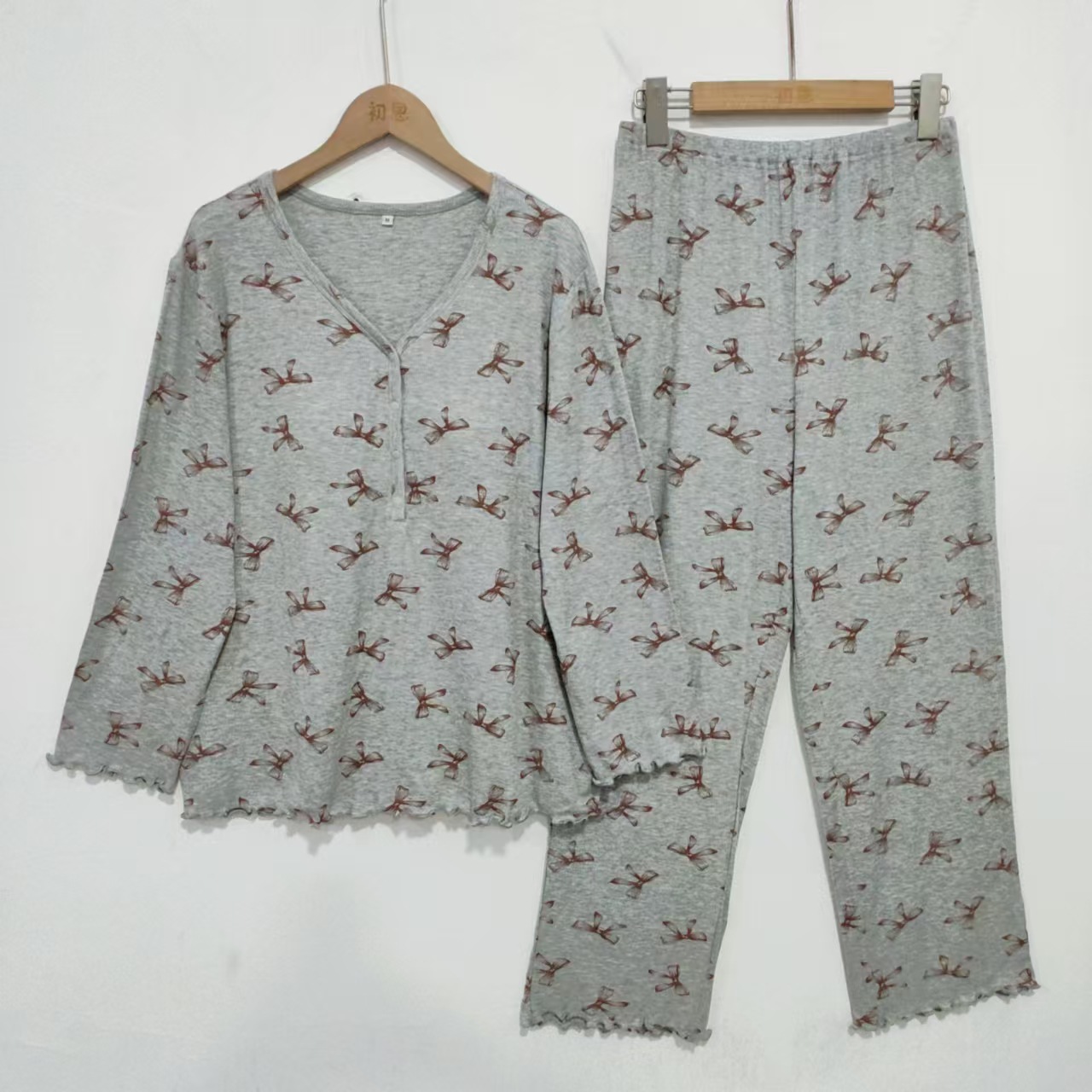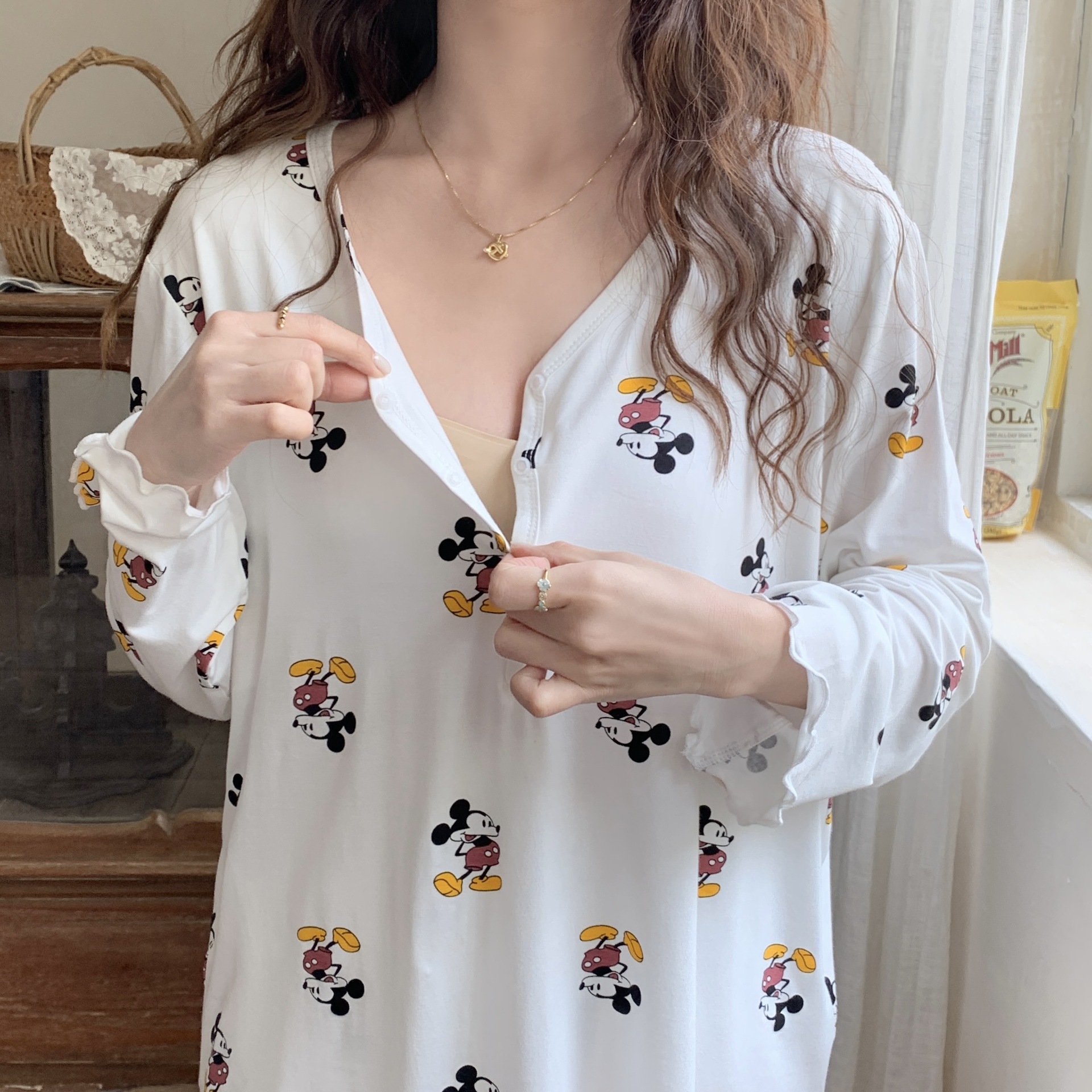 В наличии 6269] Модальные послеродовые пижамы, тонкий стиль для весны и лета, домашняя одежда для беременных и кормящих женщин с нагрудными подушечками.