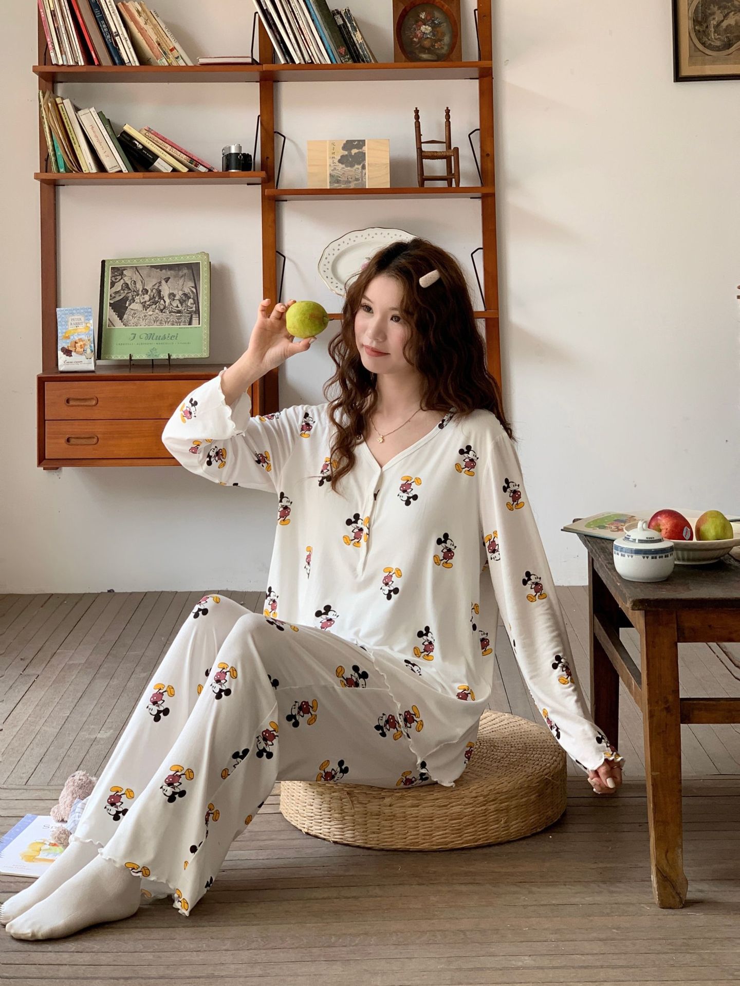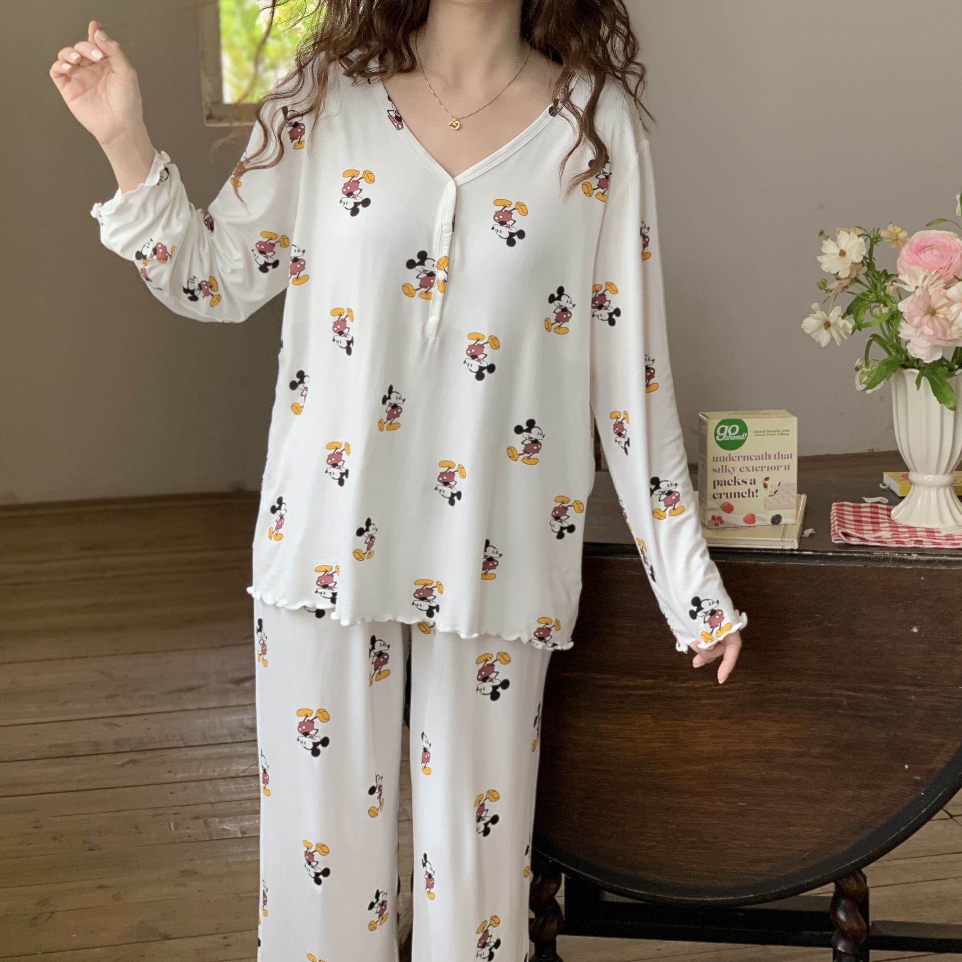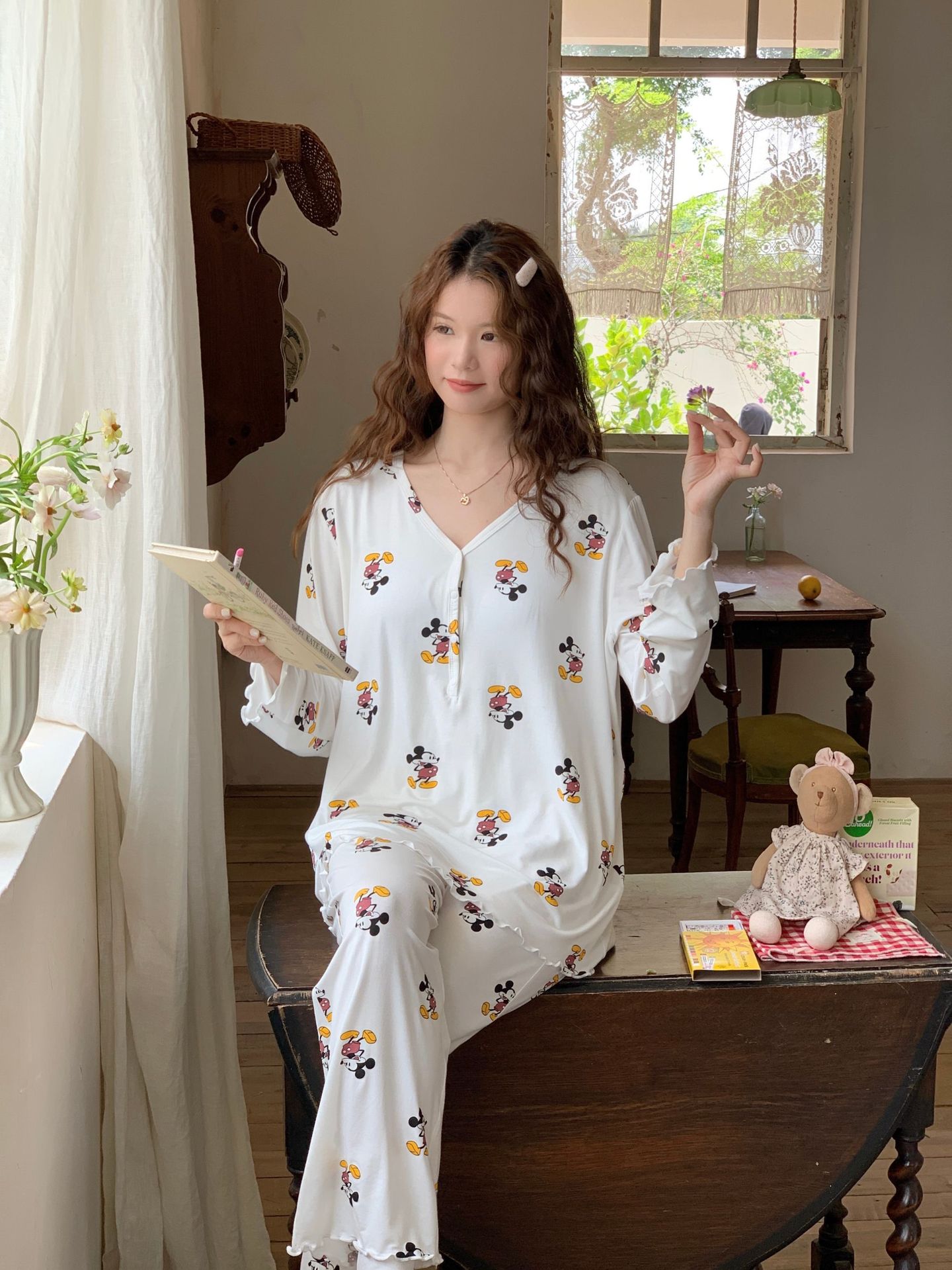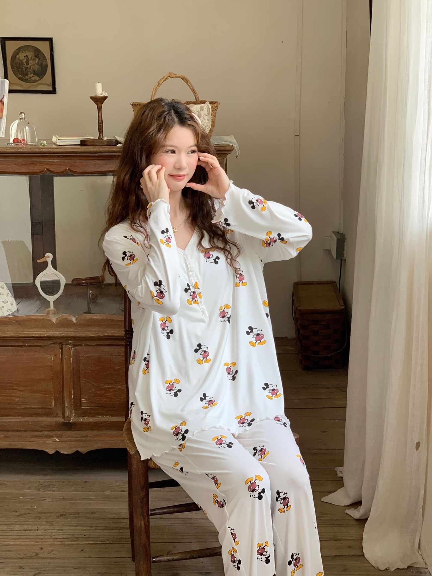 В наличии 6269] Модальные послеродовые пижамы, тонкий стиль для весны и лета, домашняя одежда для беременных и кормящих женщин с нагрудными подушечками.