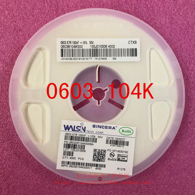 0603 чип-конденсатор 100NF 104K 0,1 мкФ 10% 50 В X7R цена на весь диск