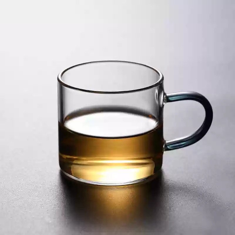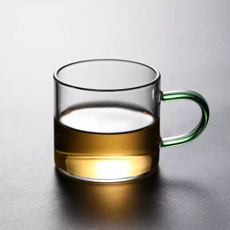 Маленькая чашка с ручкой из жаропрочного боросиликатного стекла, для одного человека, одного цвета, мини-чашка для чая, устойчивая к высоким температурам, чашка для чая кунг-фу, чашка с цветной ручкой