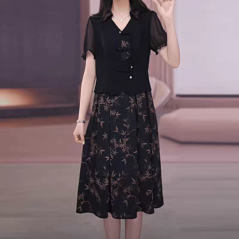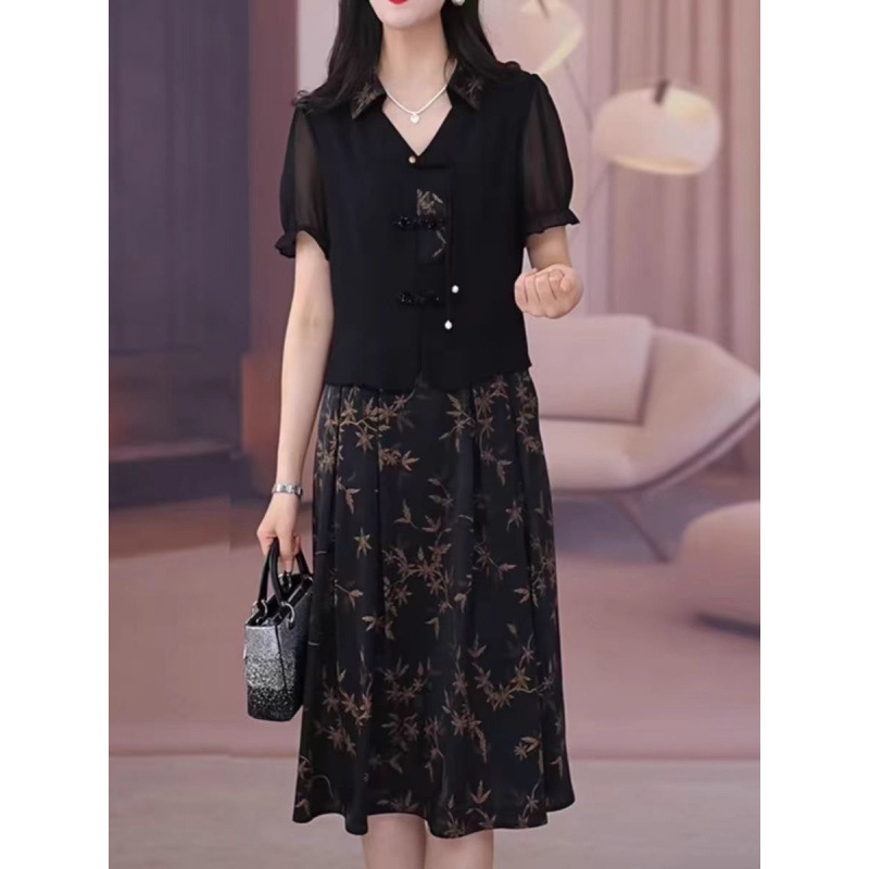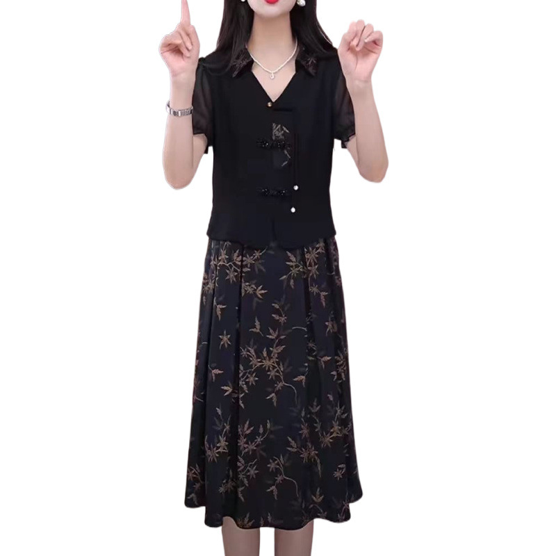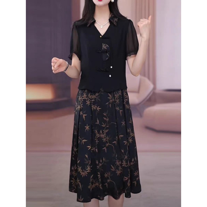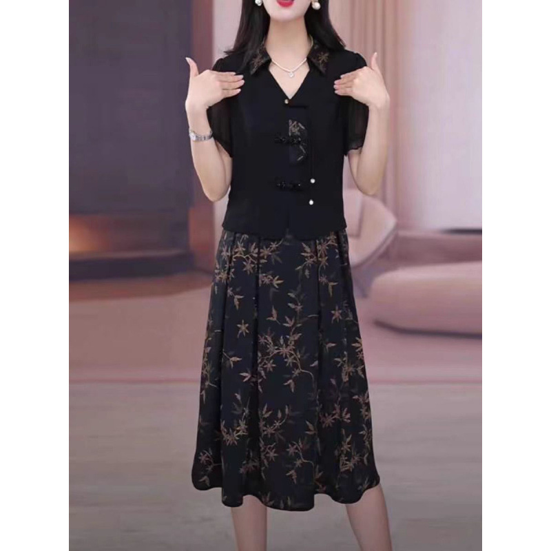 Летняя юбка с цветочным принтом для молодой мамы, женское новое достойное и элегантное платье больших размеров в китайском стиле, комплект из двух предметов