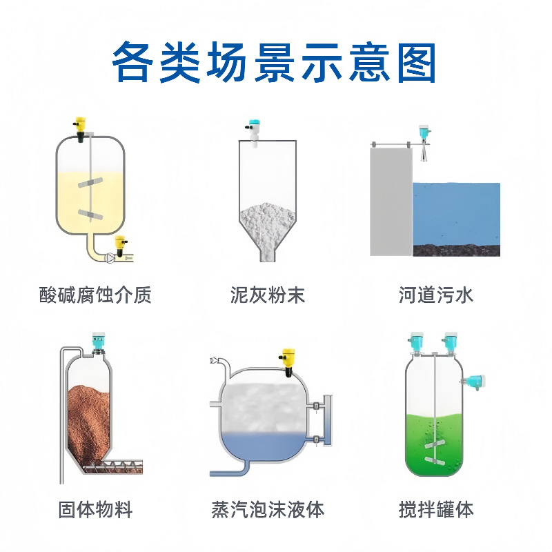 Базовый радарный уровнемер (0-10 м); Базовый радарный уровнемер (0-15 м); Радарный измеритель уровня жидкости из ПТФЭ (0-20 м); Радарный измеритель уровня жидкости с линзой (0-20 м); Радарный уровнемер с разделенной линзой (0–20 м); Взрывозащищенный звуковой радарный уровнемер (0-20 м); Взрывозащищенный линзовый радарный измеритель уровня жидкости (0-20 м); Консультация по нестандартной настройке радара измерителя уровня жидкости