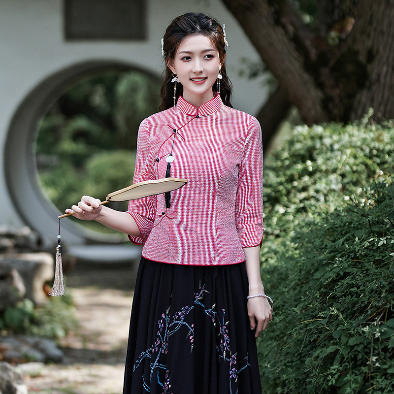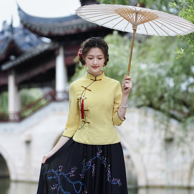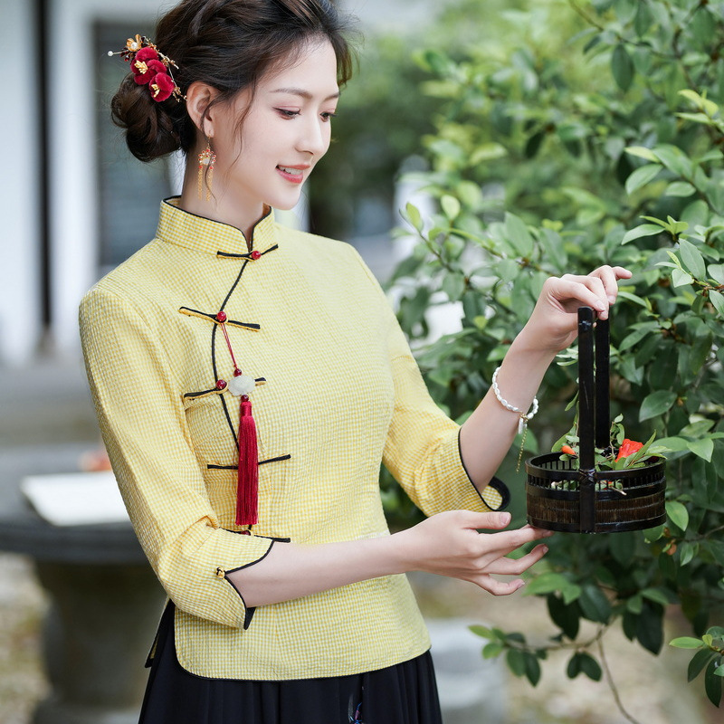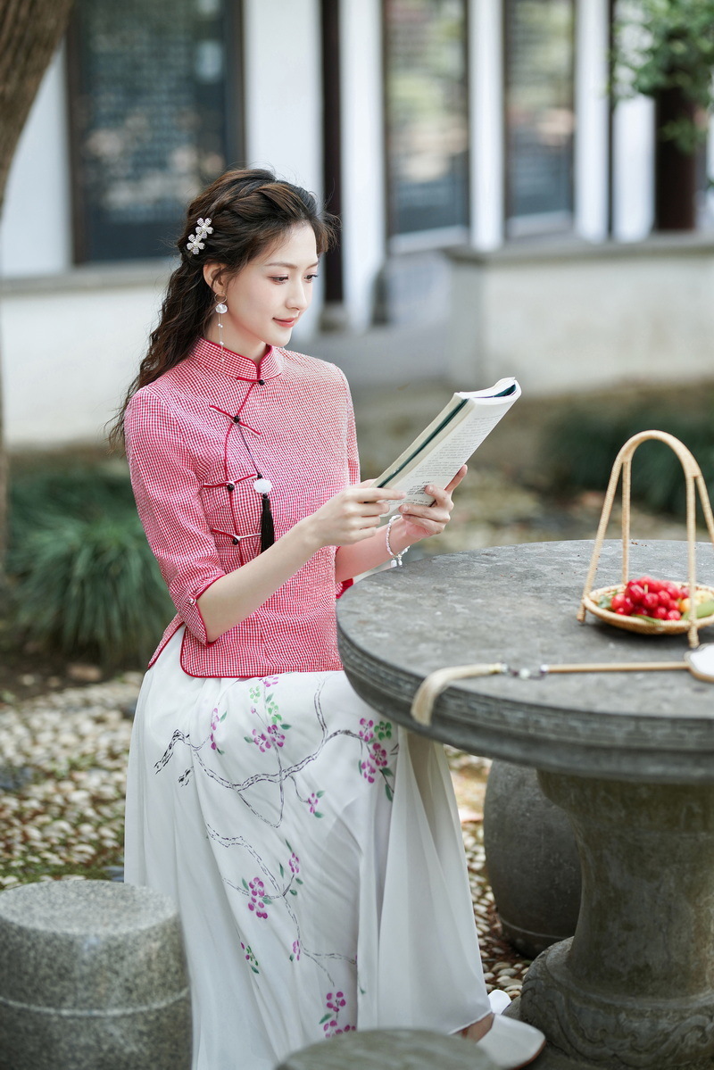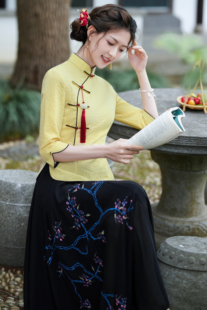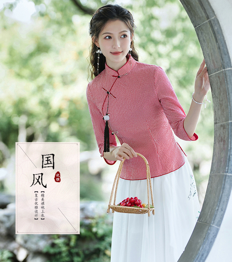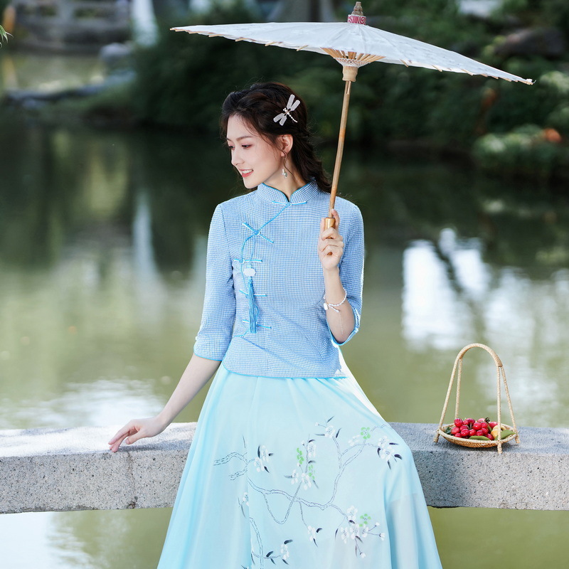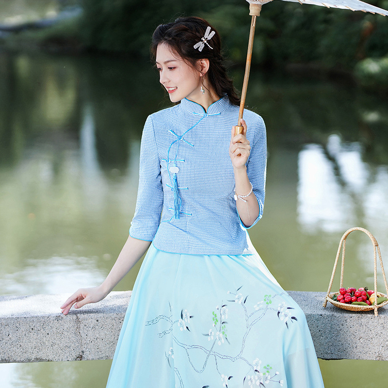 Облегающий костюм в стиле Республики Китай с ручной росписью в стиле ретро, летний новый костюм Тан, улучшенный топ-чонсам на пуговицах в китайском стиле с воротником-стойкой