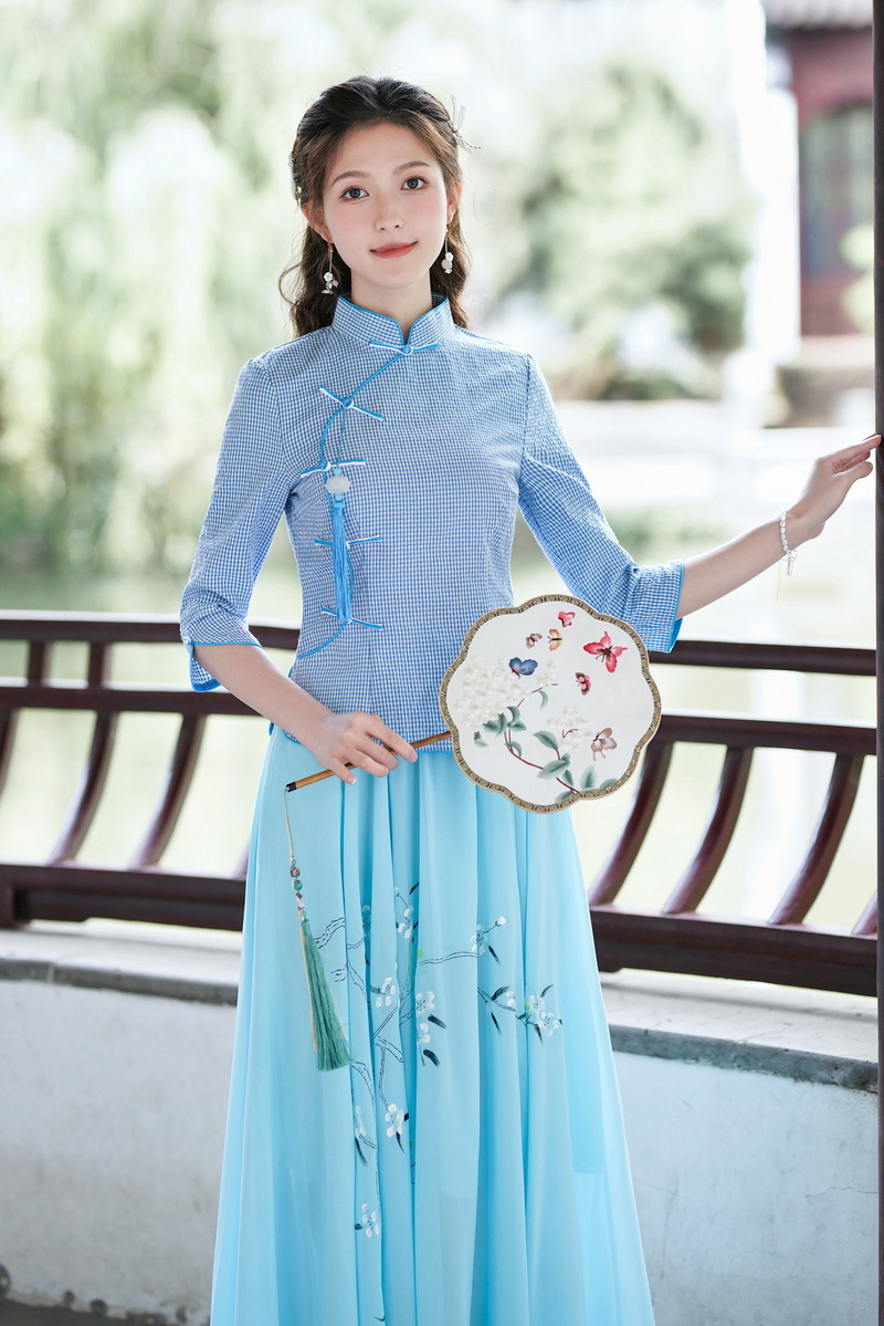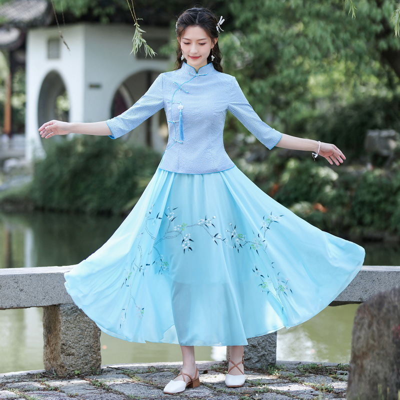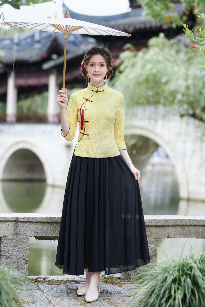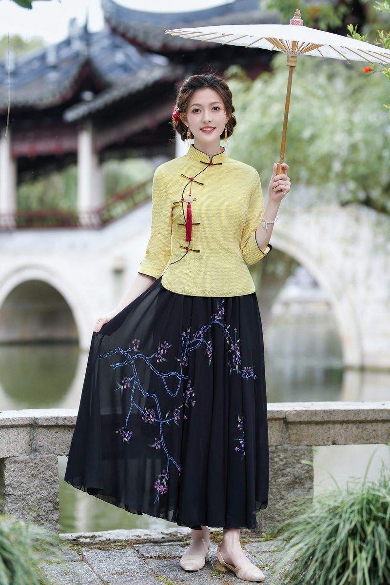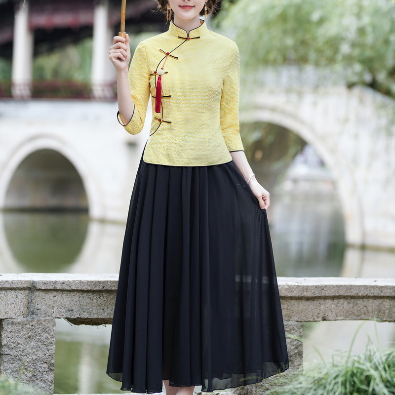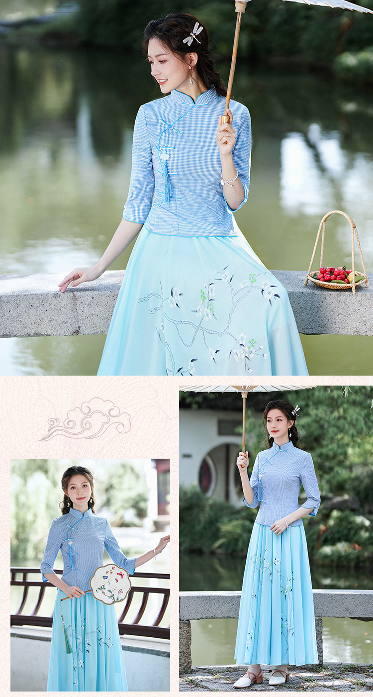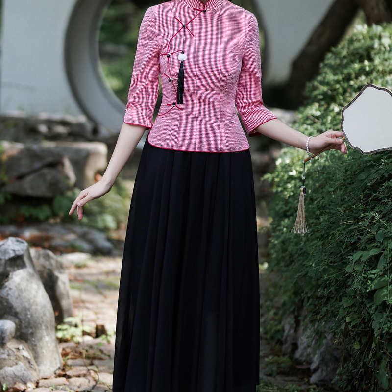 Облегающий костюм в стиле Республики Китай с ручной росписью в стиле ретро, летний новый костюм Тан, улучшенный топ-чонсам на пуговицах в китайском стиле с воротником-стойкой