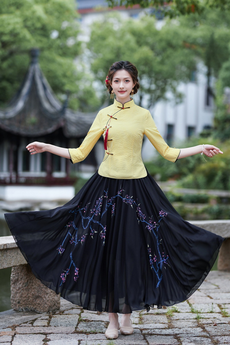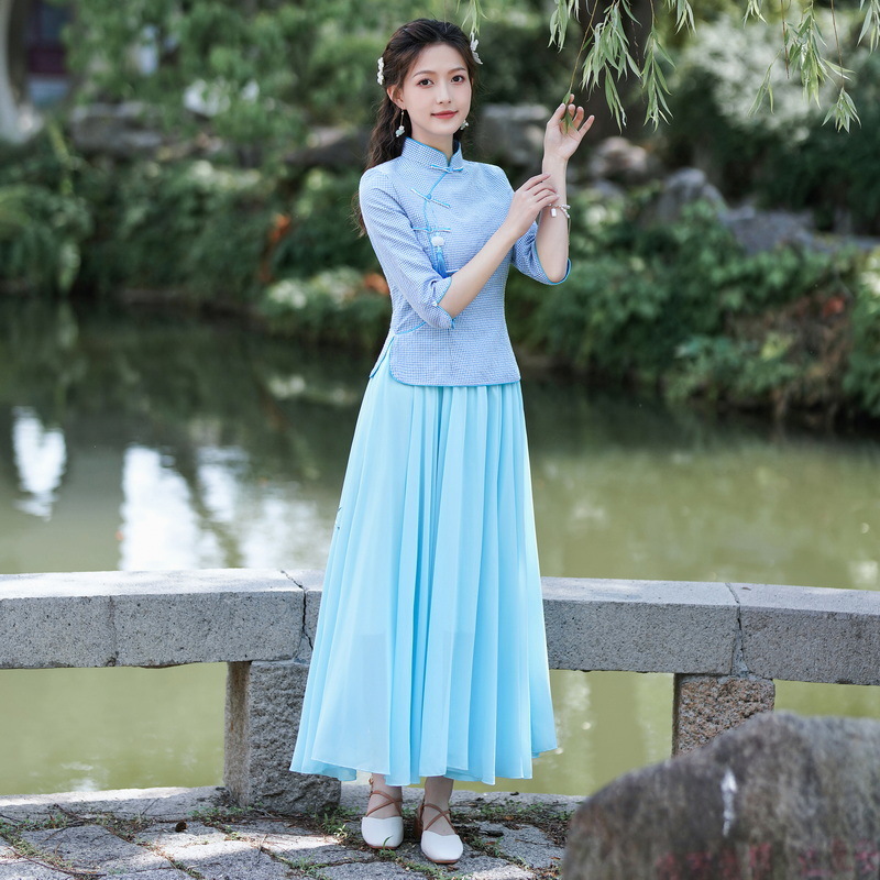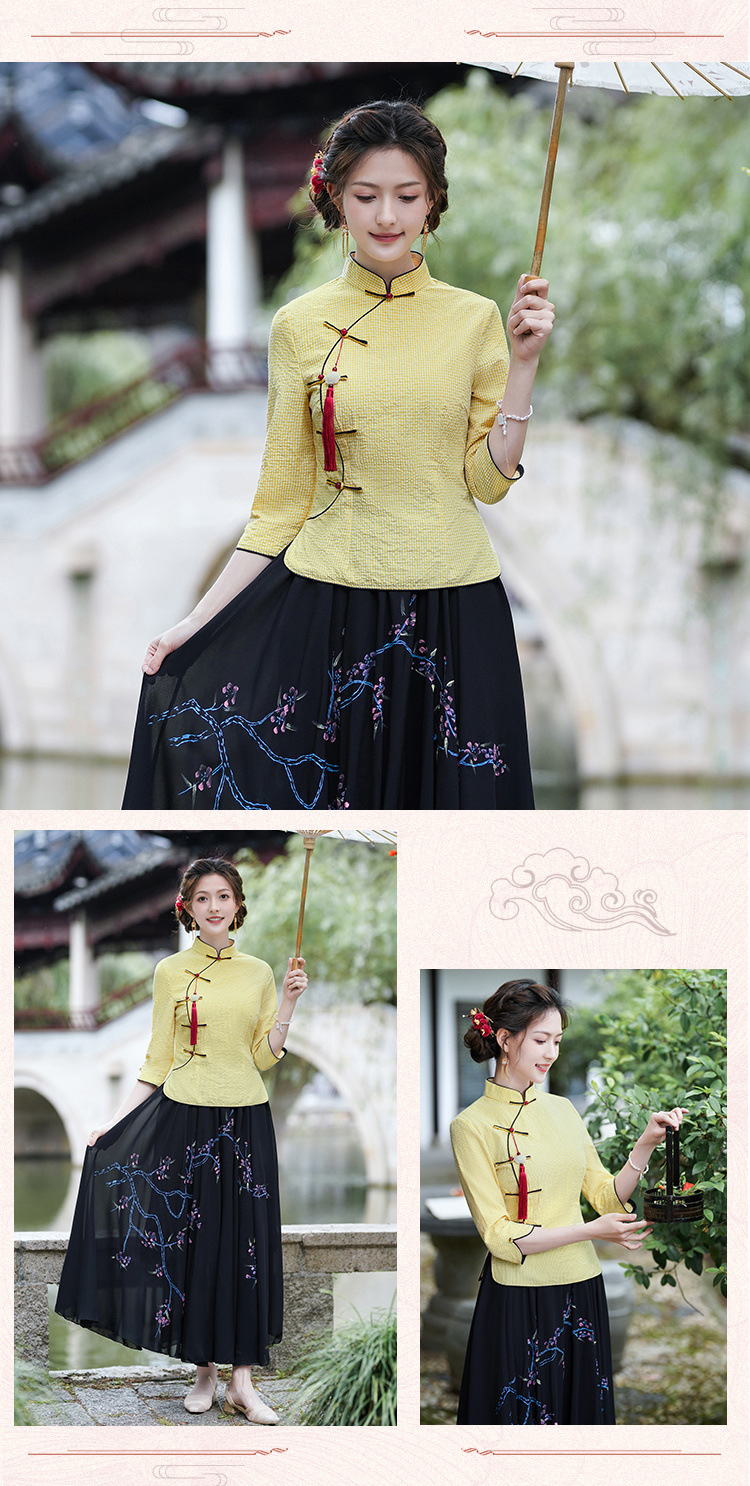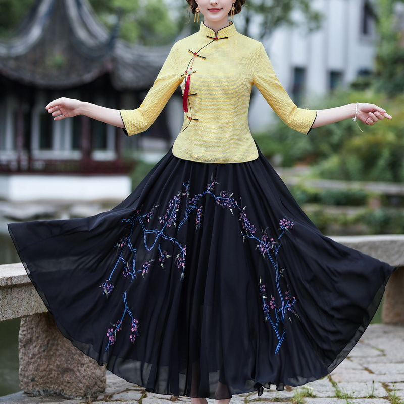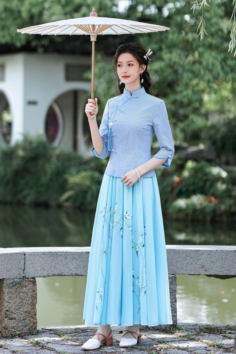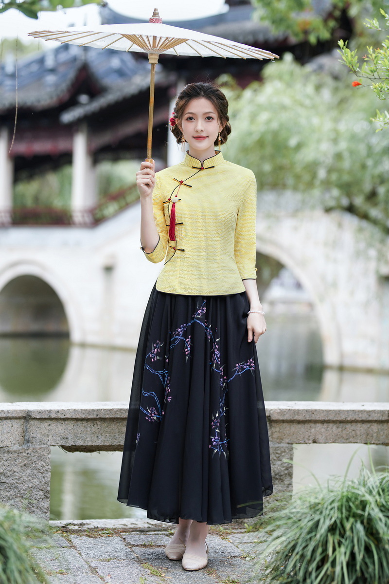 Облегающий костюм в стиле Республики Китай с ручной росписью в стиле ретро, летний новый костюм Тан, улучшенный топ-чонсам на пуговицах в китайском стиле с воротником-стойкой