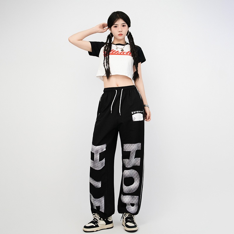 Уличные танцы, модный брендовый модный укороченный комплект футболок, брюки для хип-хопа, джазовых танцев, спортивный хлопковый танцевальный наряд в стиле джаз