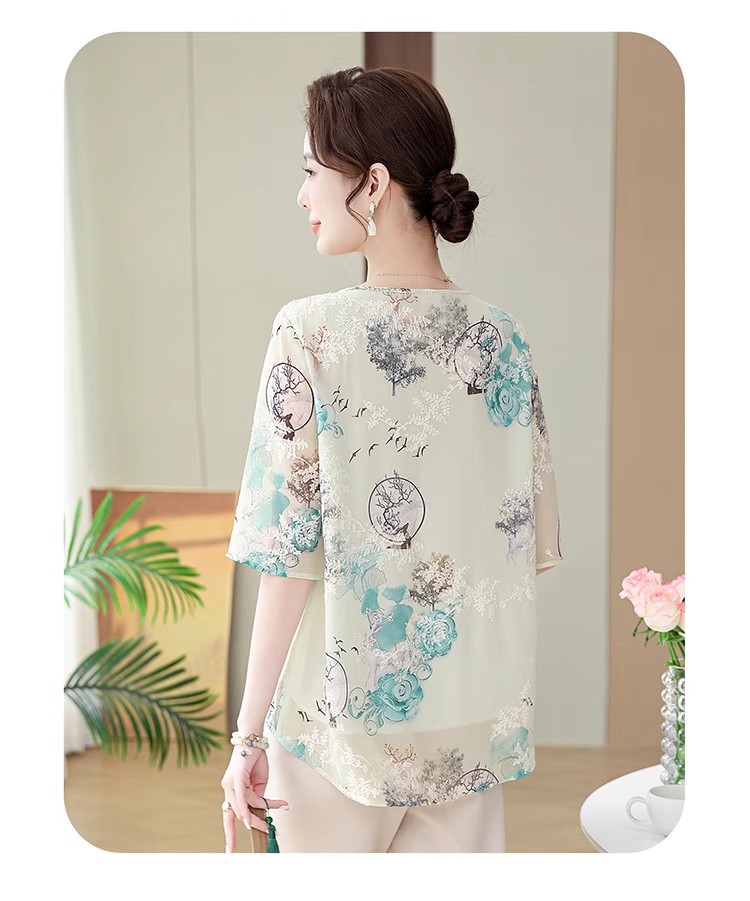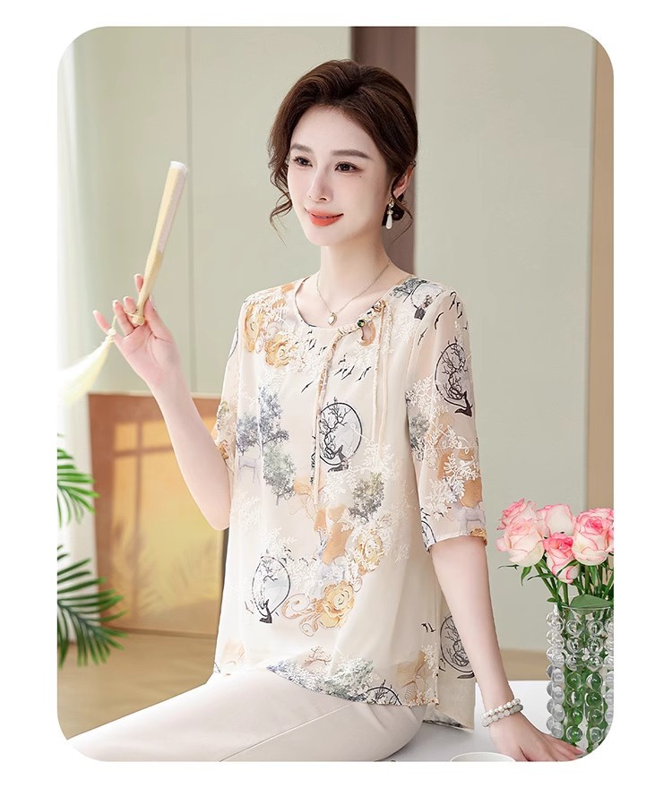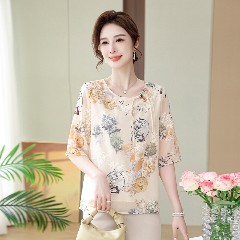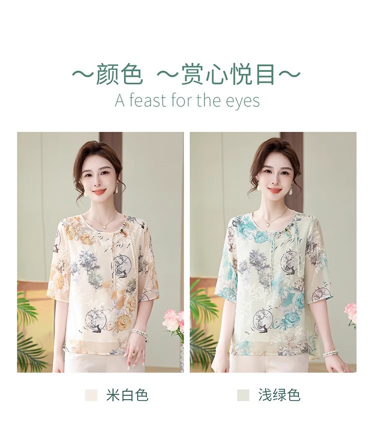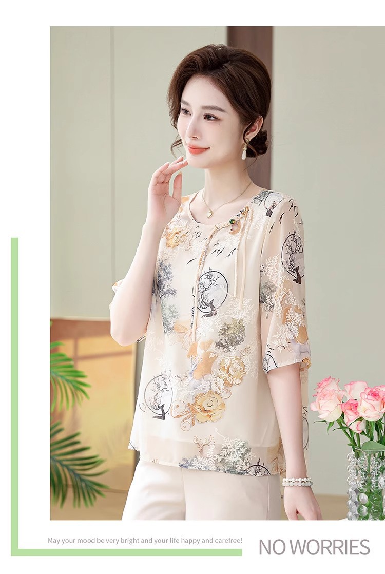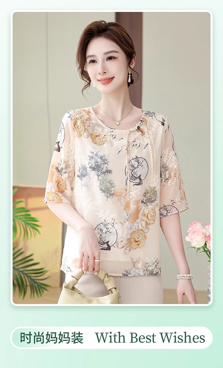 Новый весенний наряд для мам: шифоновая блузка со средними рукавами, модная футболка для женщин среднего и пожилого возраста, топ с вышивкой на весну и лето.