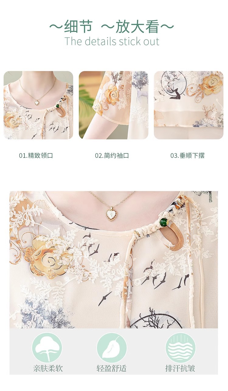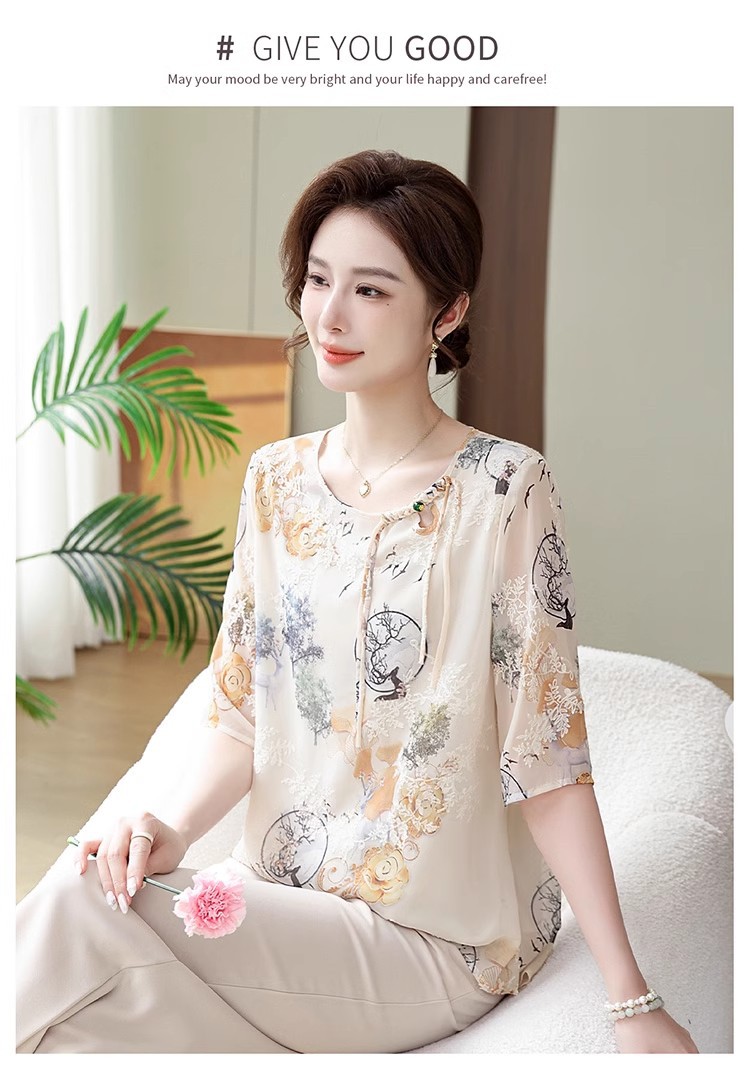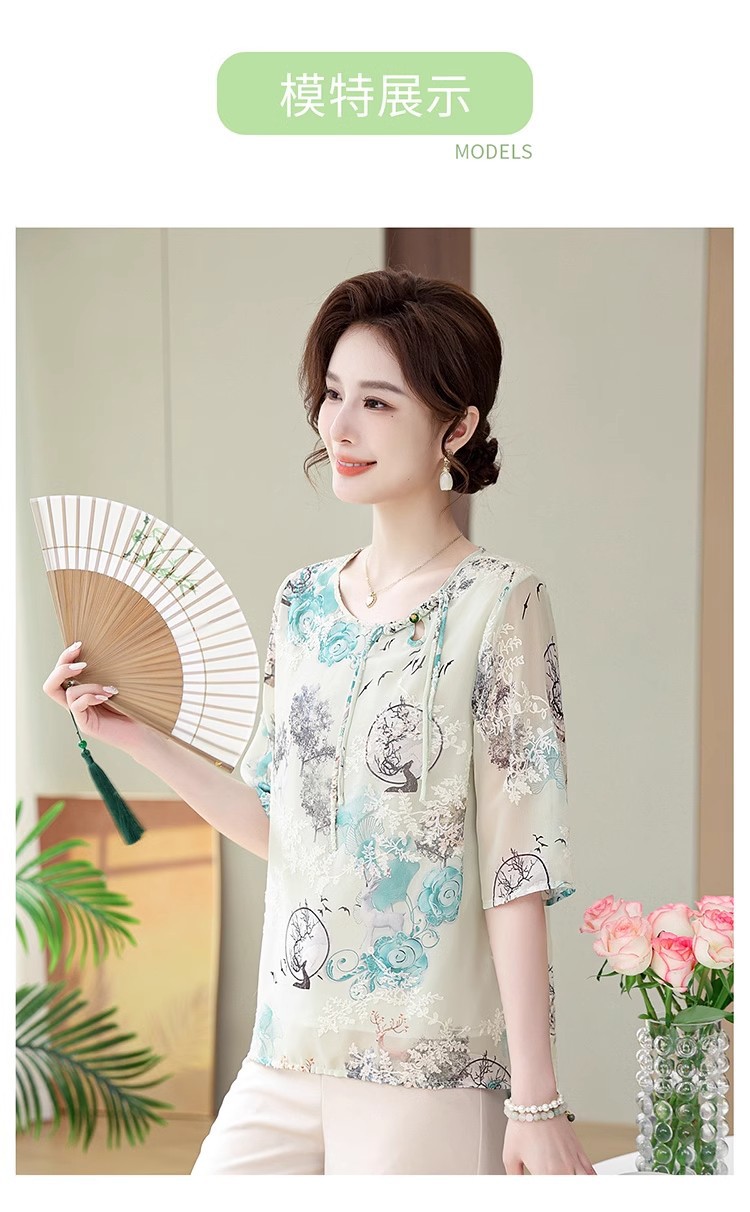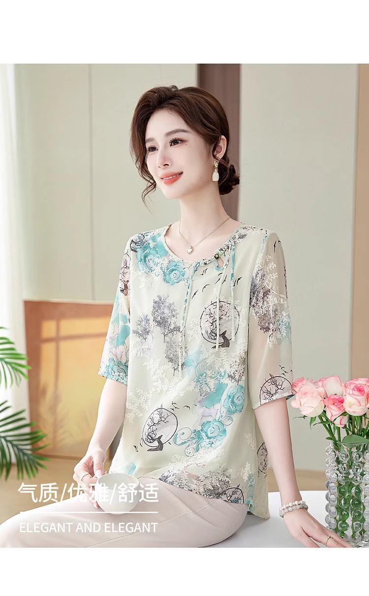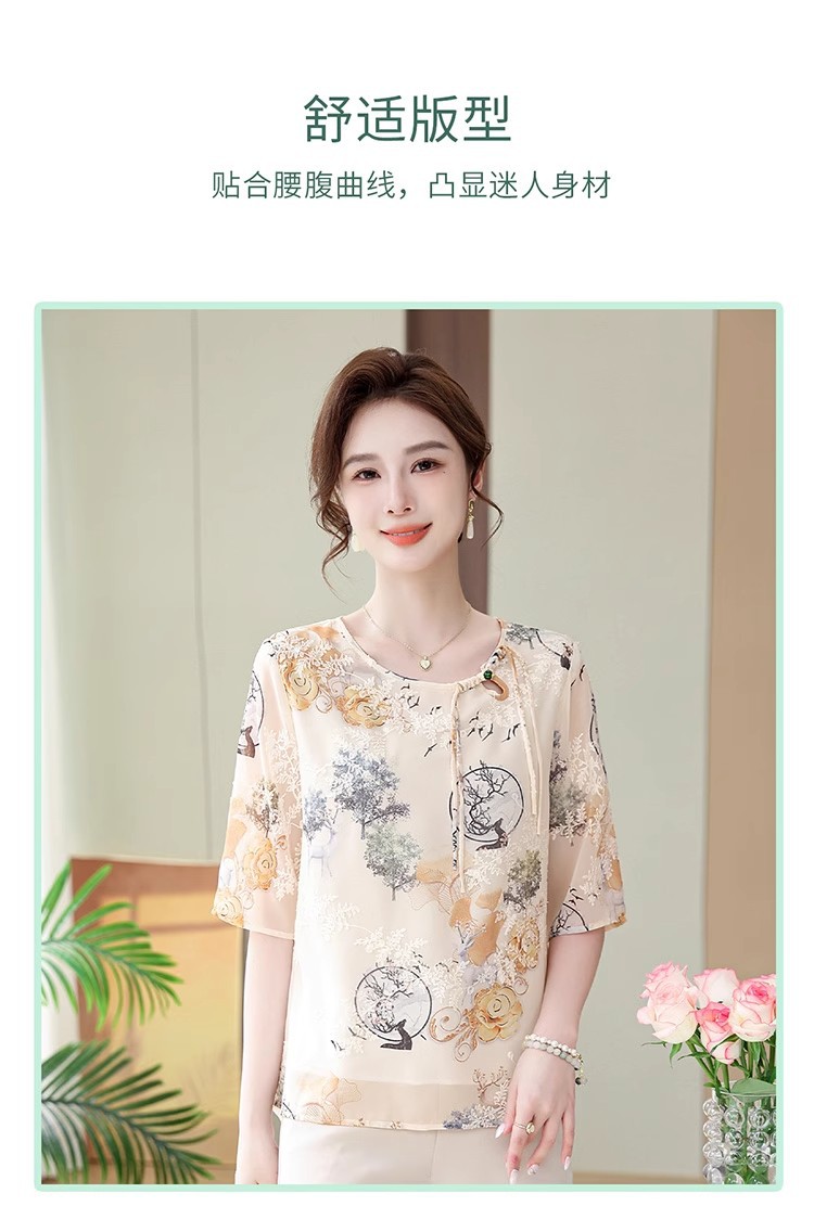 Новый весенний наряд для мам: шифоновая блузка со средними рукавами, модная футболка для женщин среднего и пожилого возраста, топ с вышивкой на весну и лето.