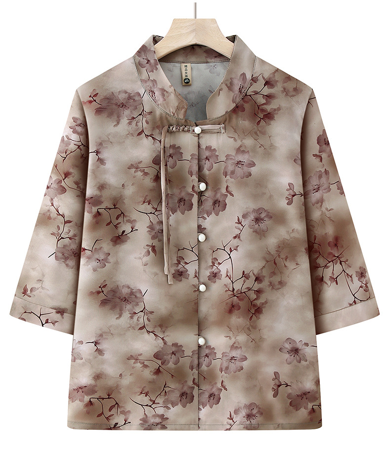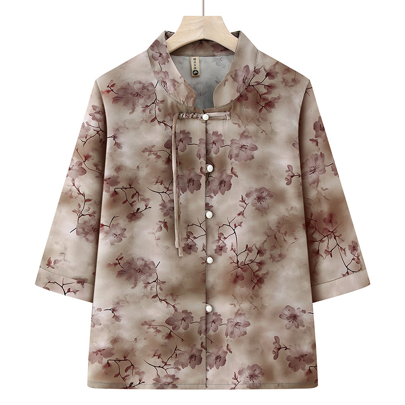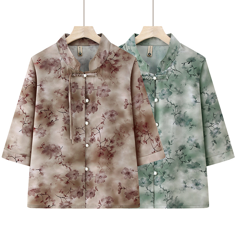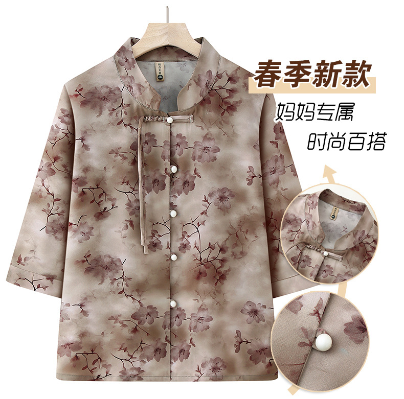 Женская одежда 2025, рубашка весна-осень, новый стиль, свободные топы для женщин среднего и пожилого возраста, модные рубашки с принтом для пожилых