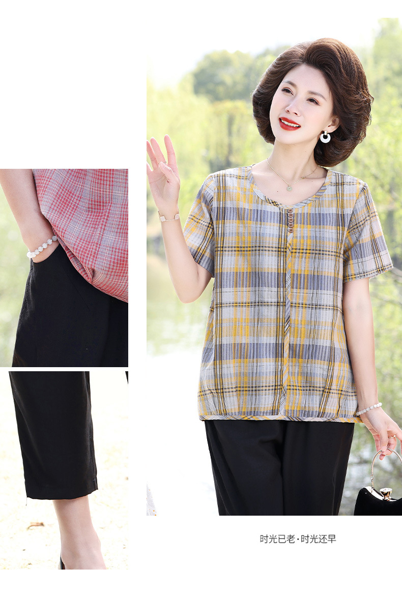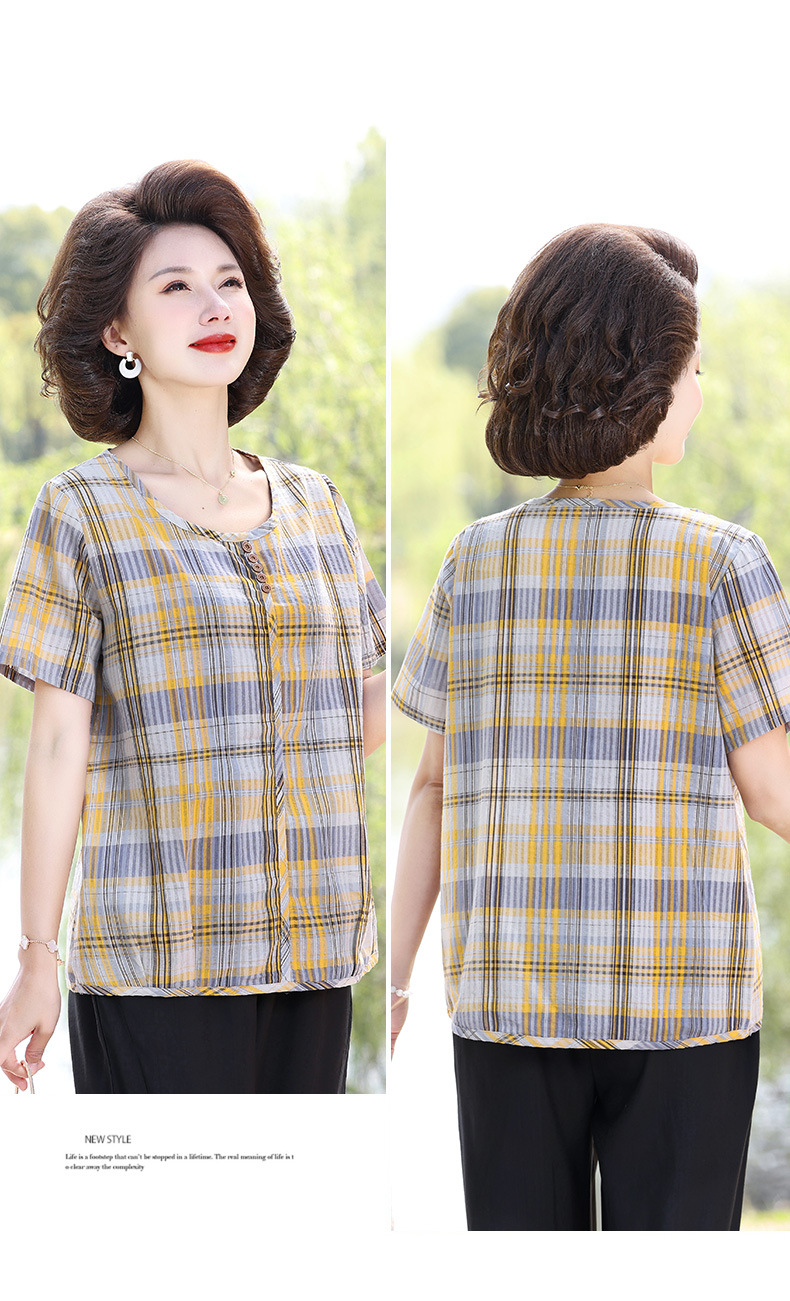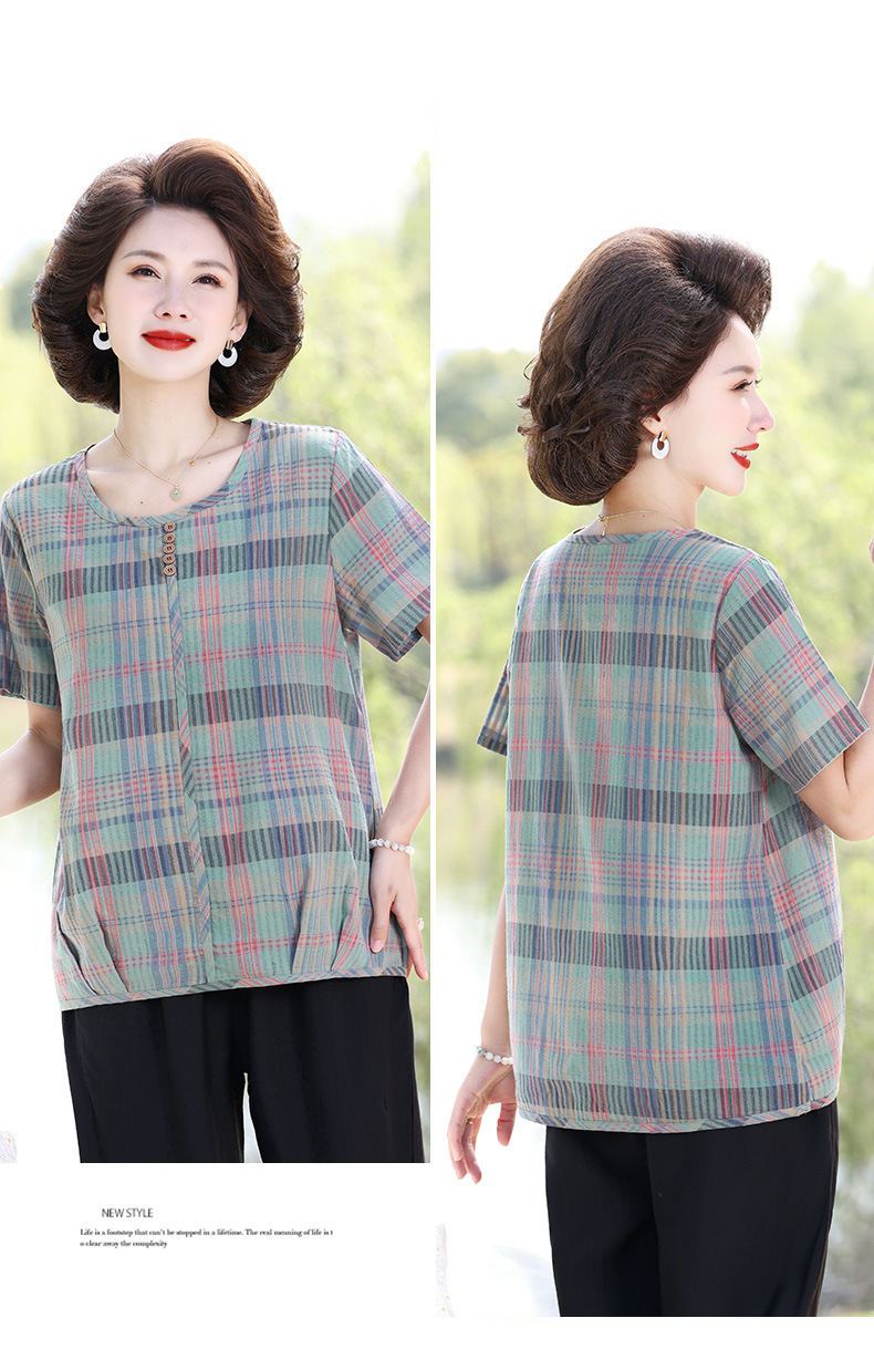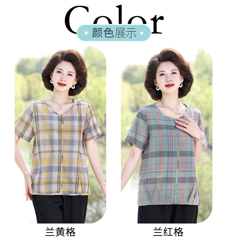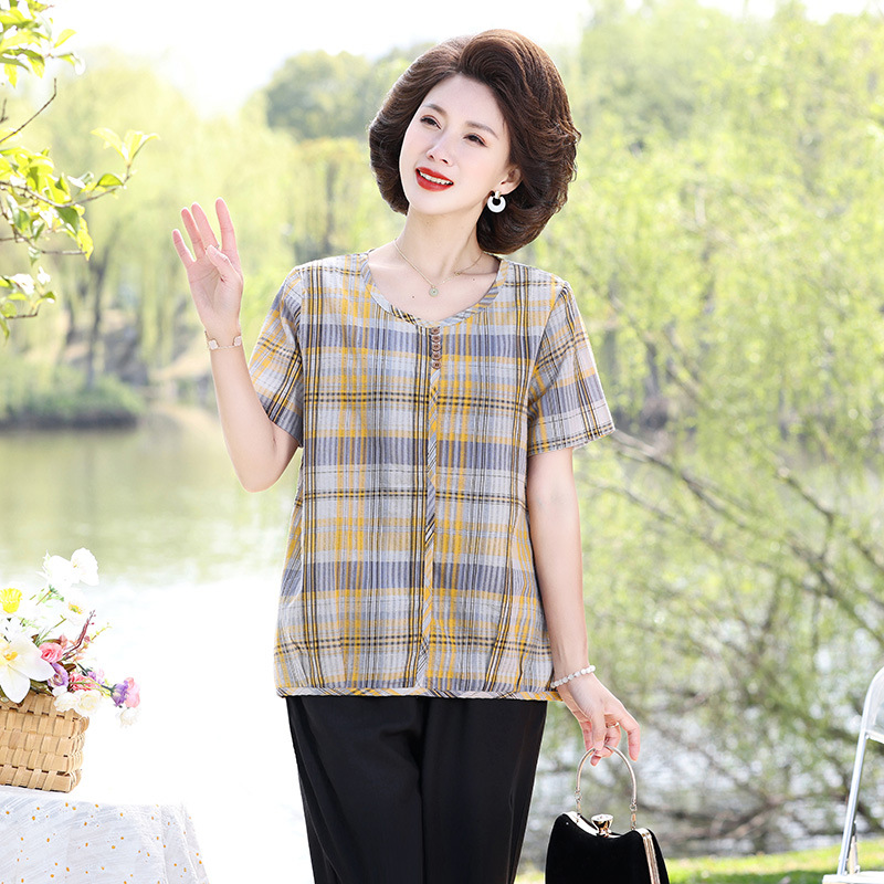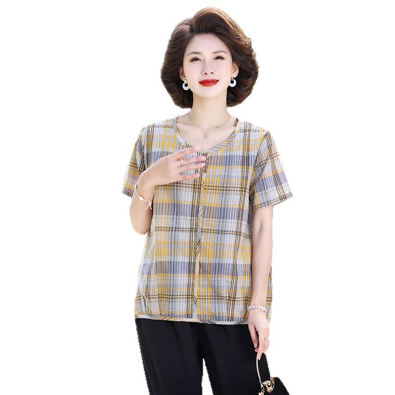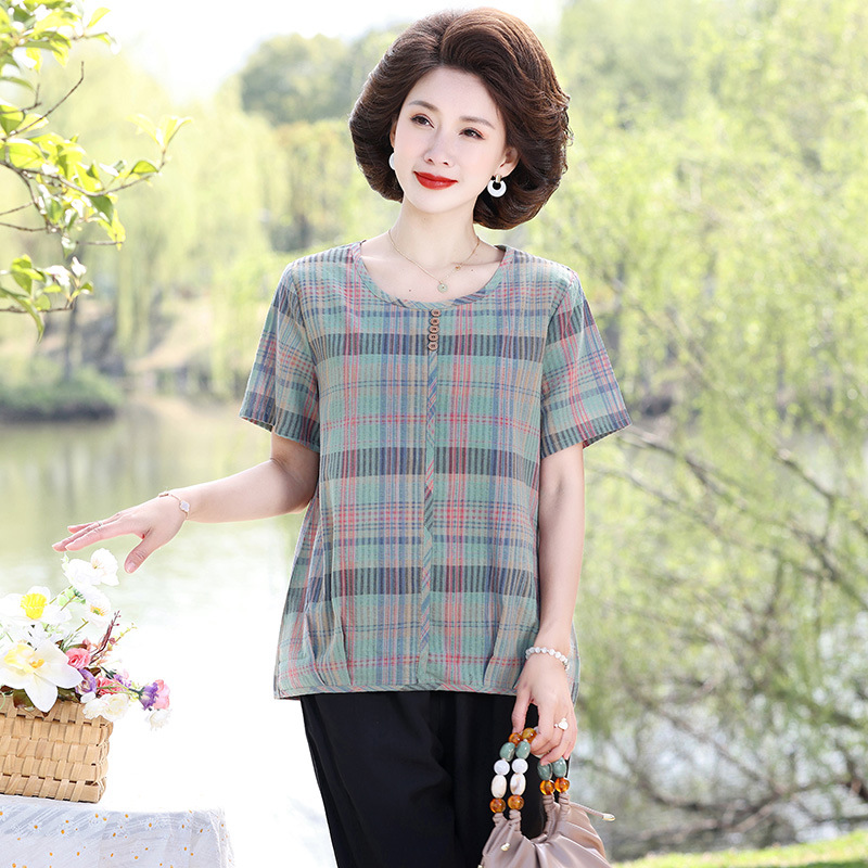 Летняя клетчатая рубашка для мамы, женские хлопковые топы с короткими рукавами среднего и пожилого возраста, летняя клетчатая рубашка для мамы
