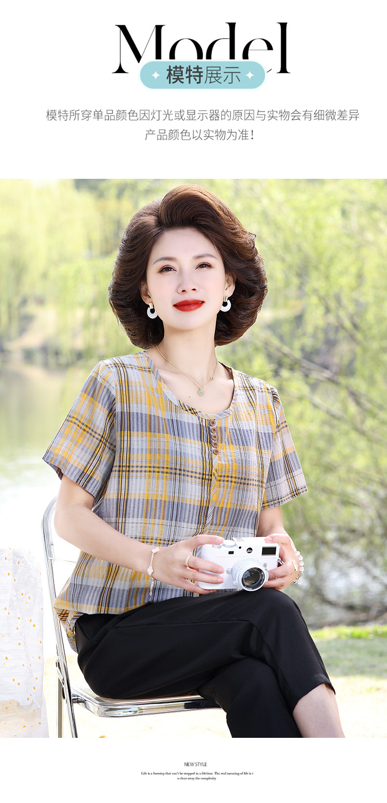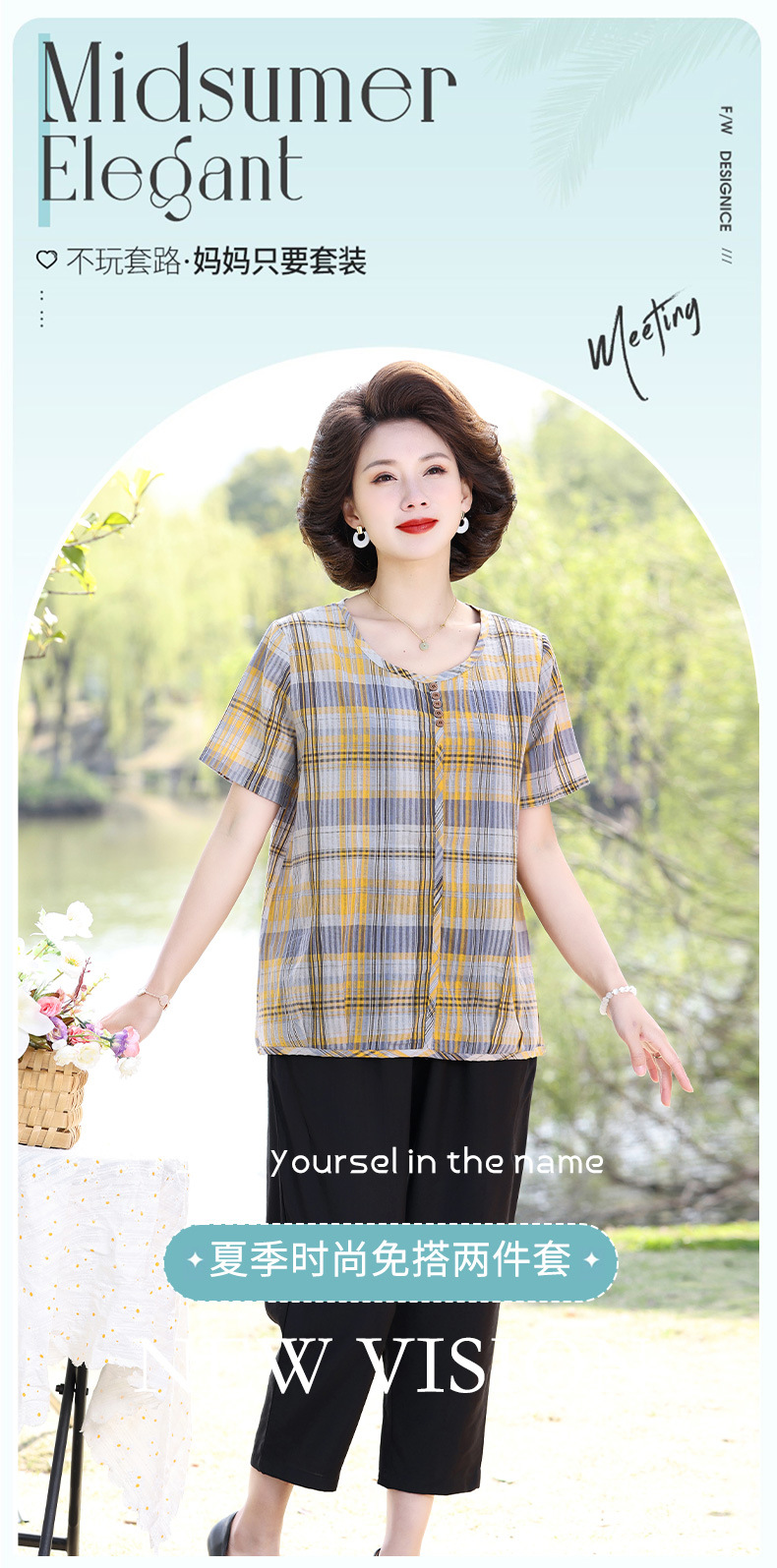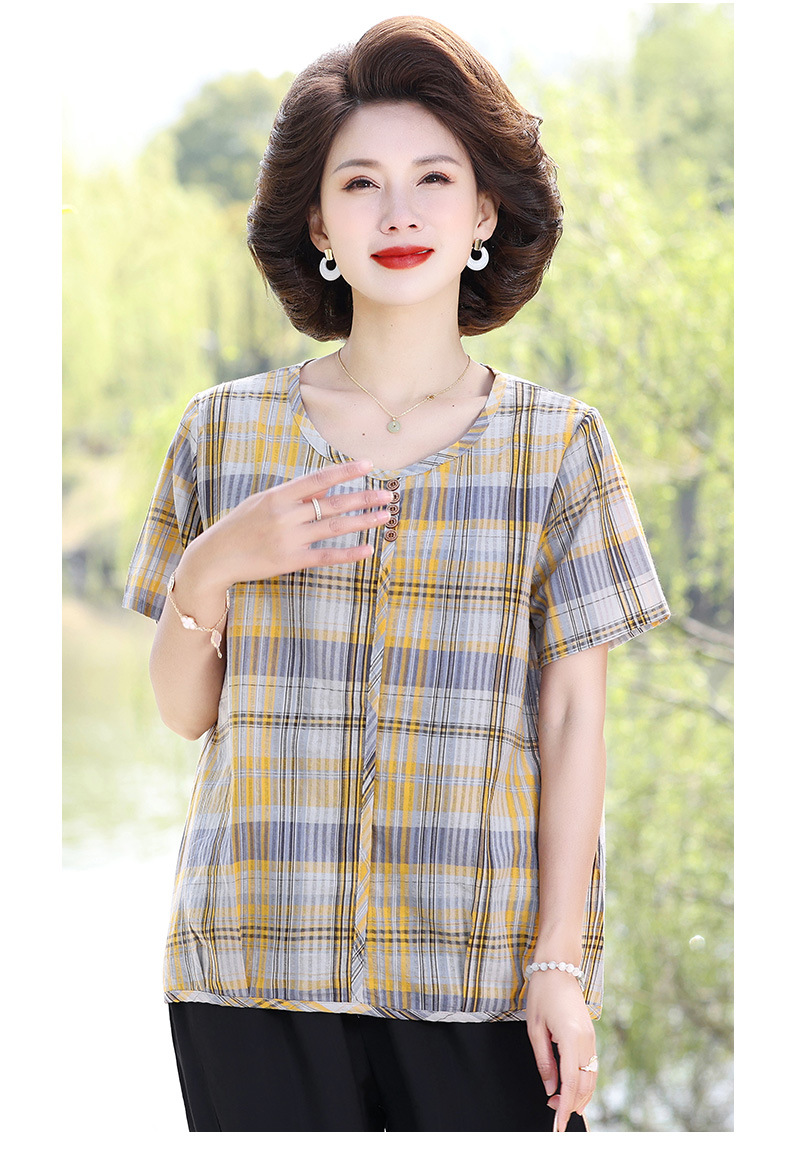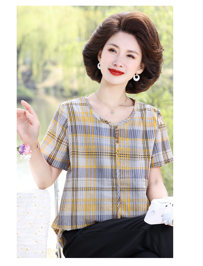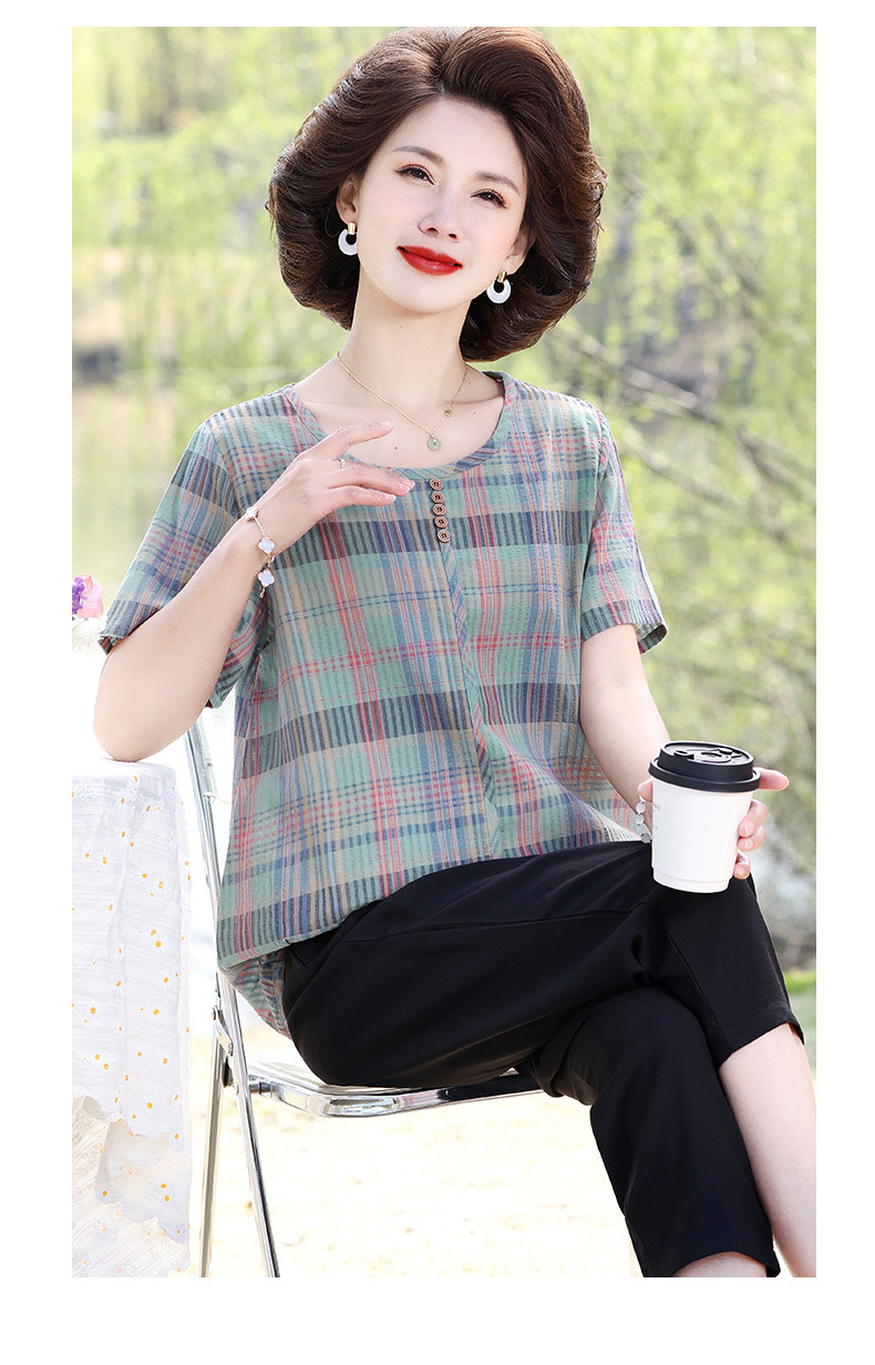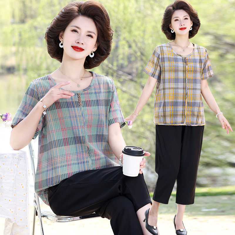 Летняя клетчатая рубашка для мамы, женские хлопковые топы с короткими рукавами среднего и пожилого возраста, летняя клетчатая рубашка для мамы