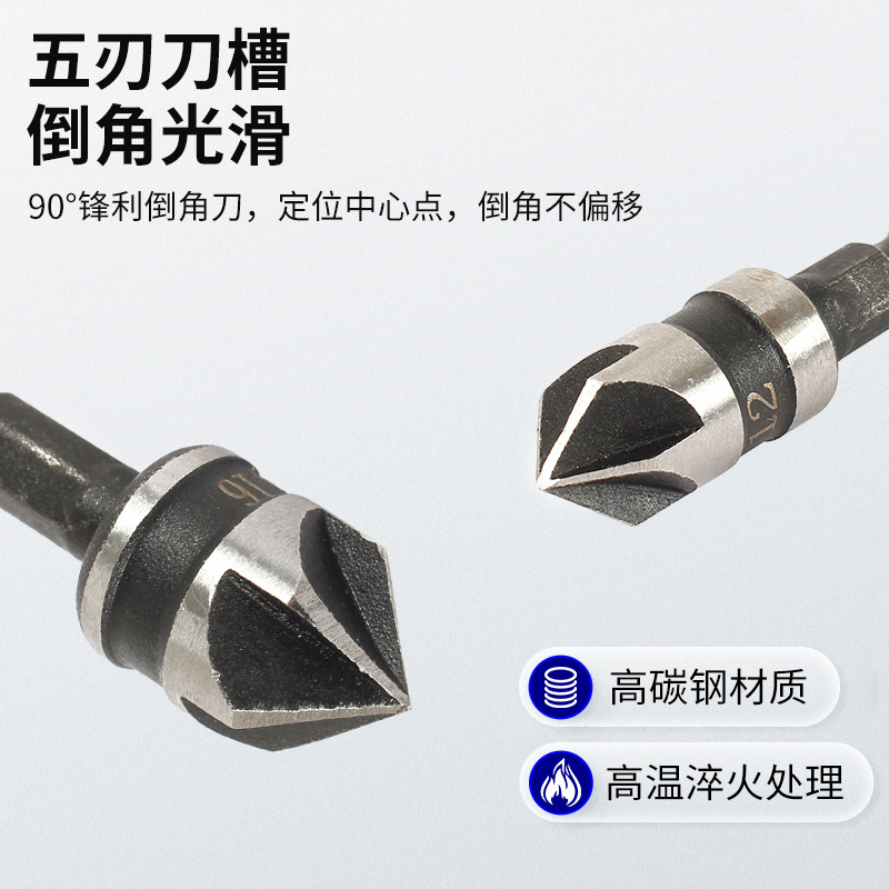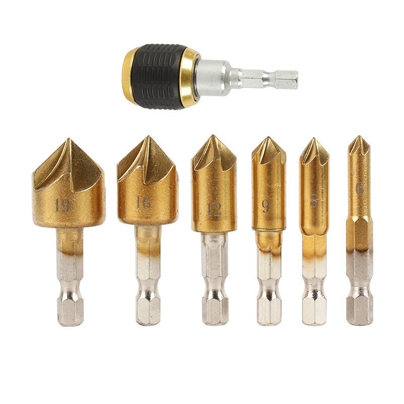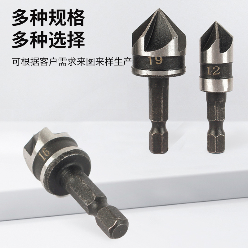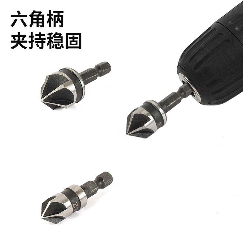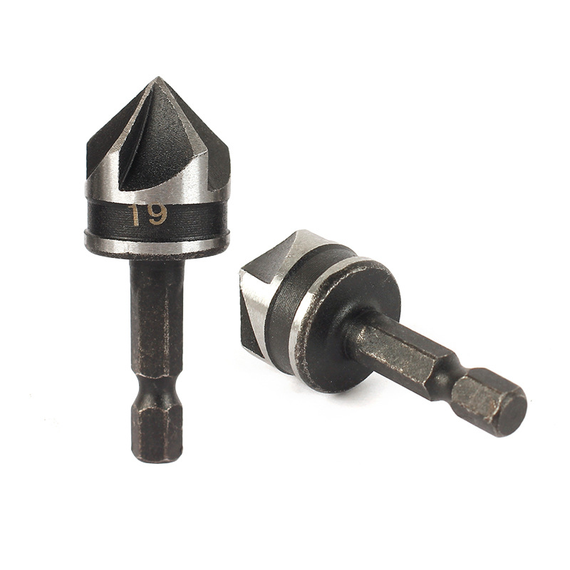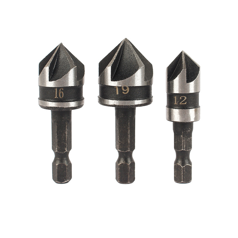 Набор для снятия фаски из трех частей под углом 90 градусов с пятью лезвиями и шестигранным хвостовиком 90 ° Фреза для снятия фаски, сверло-зенкер, инструмент для сверления отверстий в дереве, пятилезвийное сверло