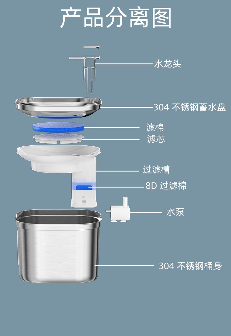 Автоматическая поилка для животных 2,2 л, для кошек и собак