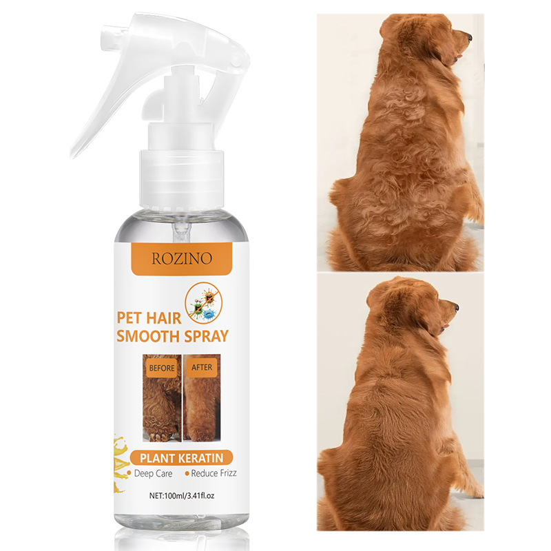 Кросс-бордерный спрей для глубокого ухода за шерстью собак, предотвращающий спутывание и завивку, с эффектом выпрямления.