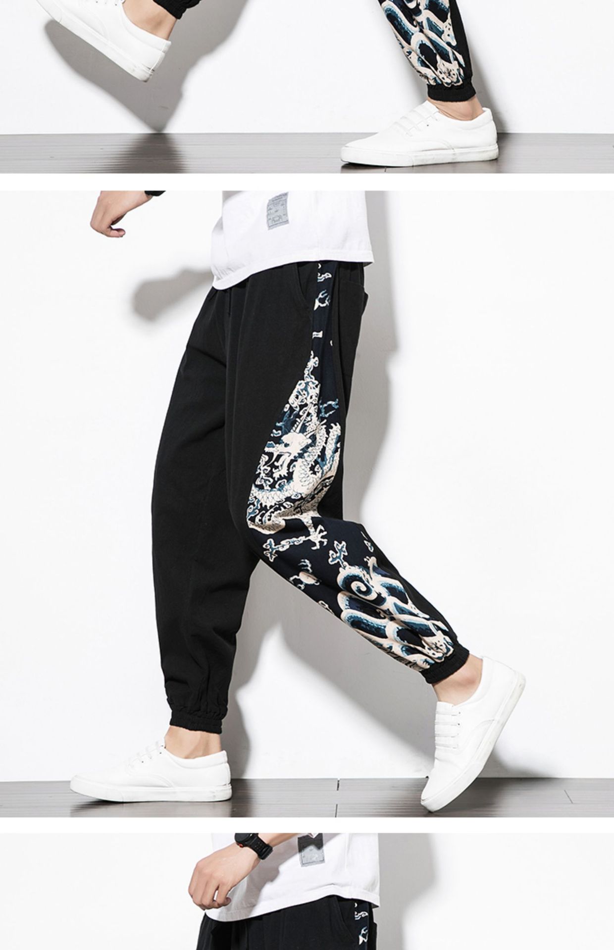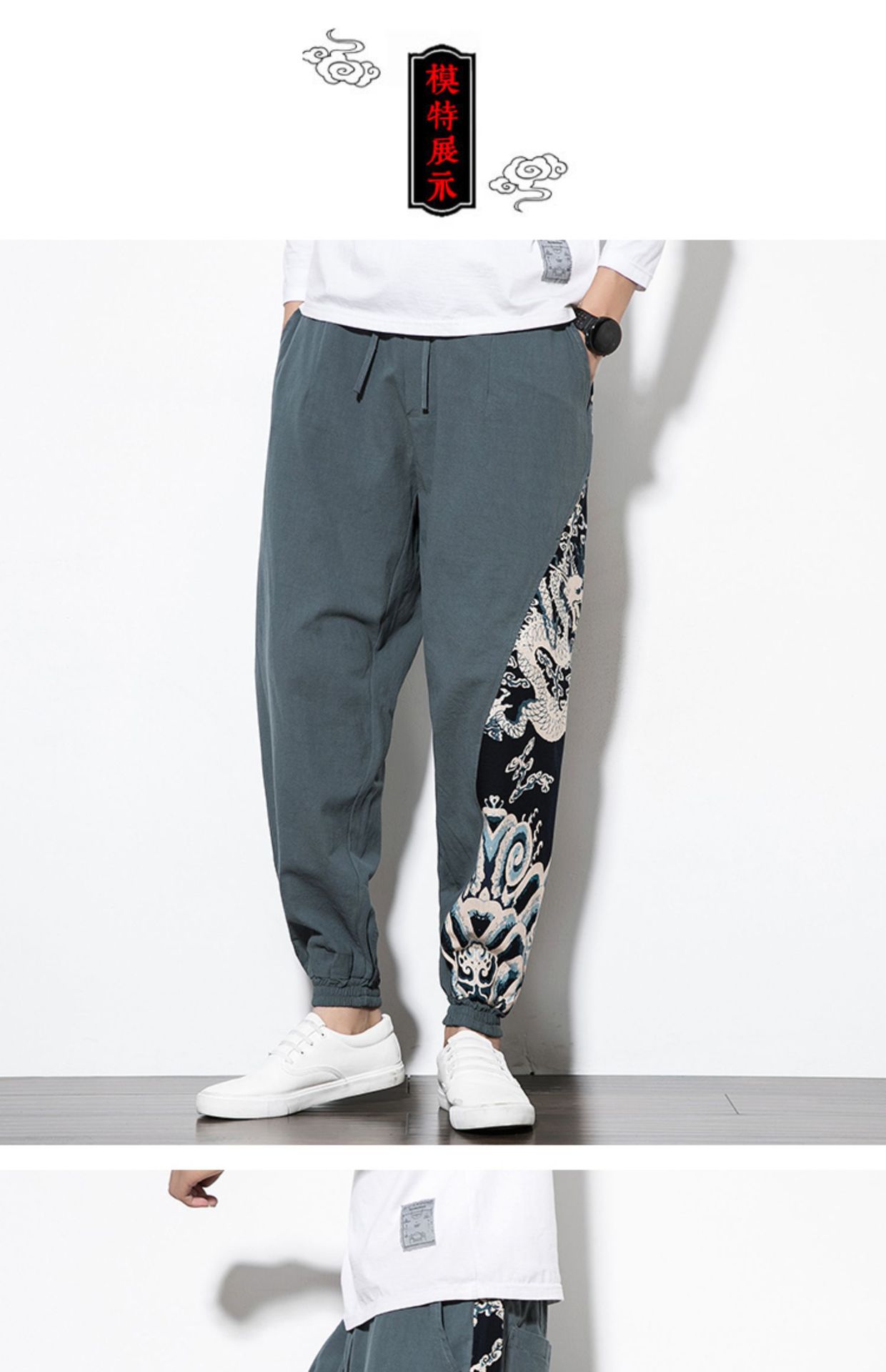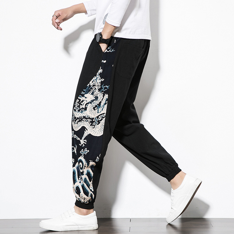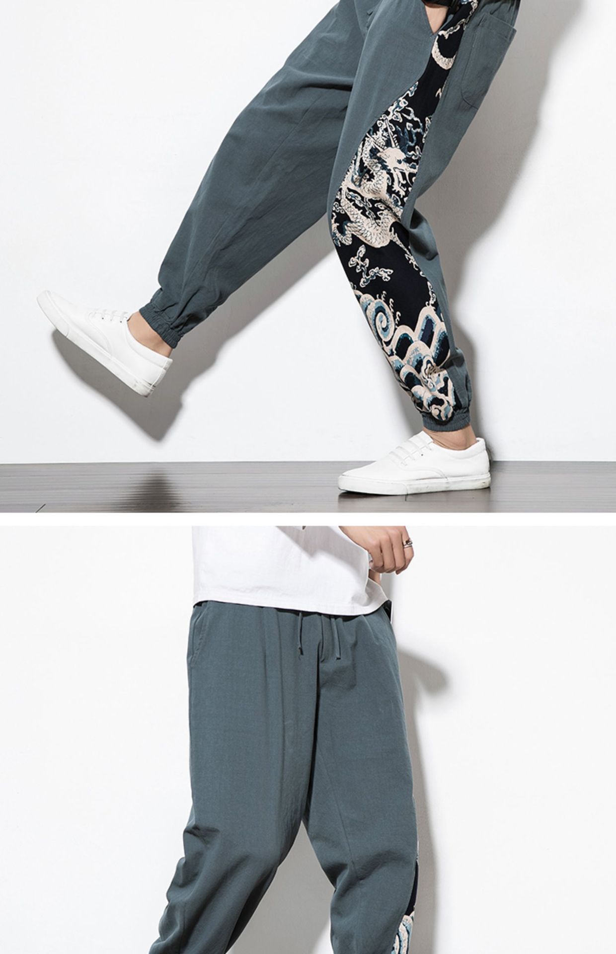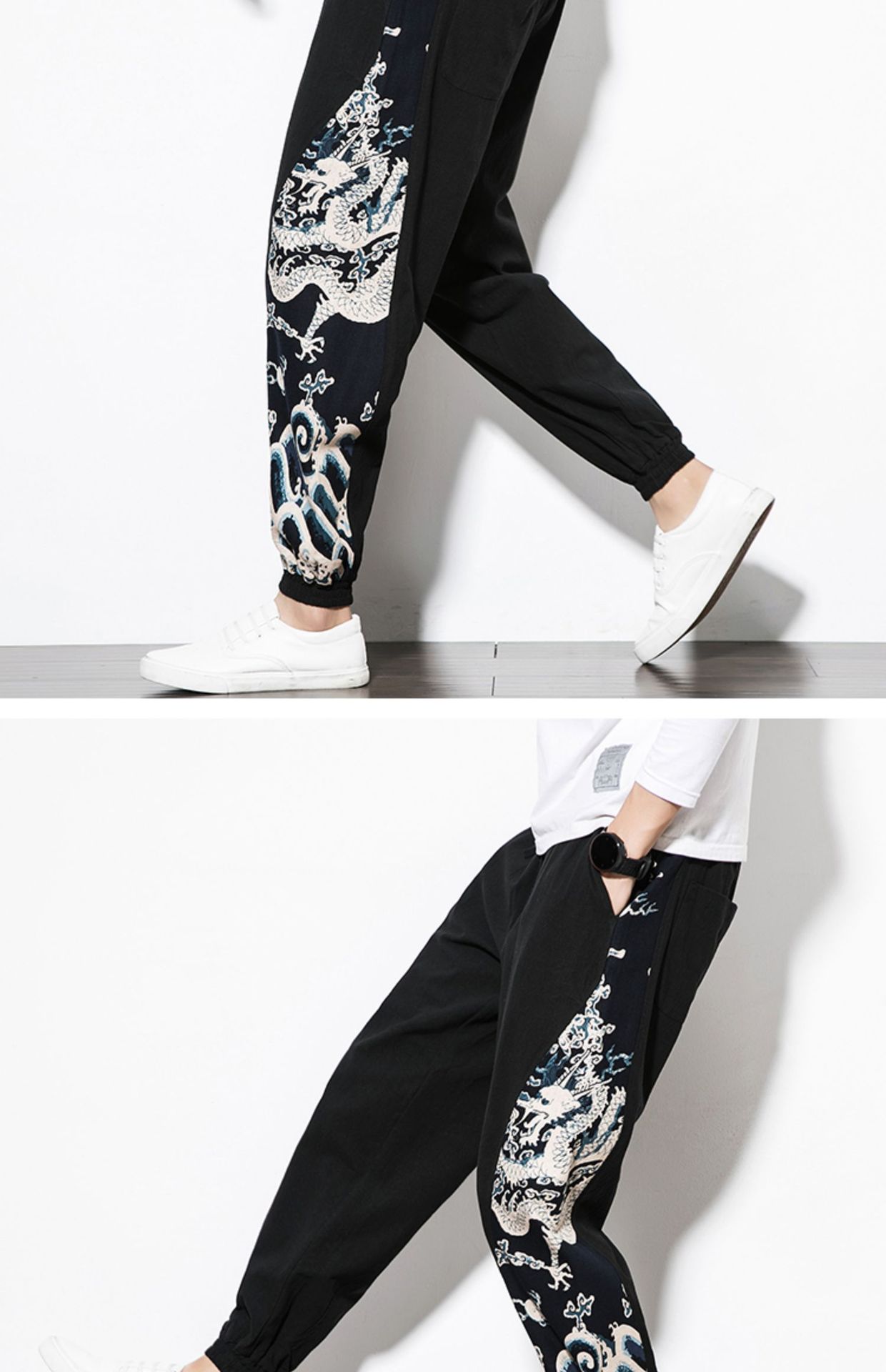 Новинка 2025 года, весенне-осенние хлопковые льняные брюки в китайском стиле с драконом, мужские шаровары, цельный дропшиппинг